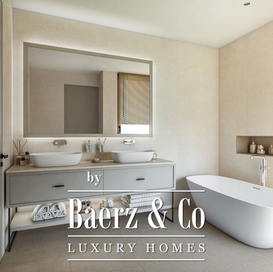 Les intérieurs se distinguent par des carreaux en grès cérame effet pierre et terrazzo, une cuisine sur mesure équipée d'appareils Miele ou équivalents, avec possibilité d'améliorations telles que des placards en placage bois et un parquet haut de gamme. La maison met en valeur la lumière méditerranéenne et le mode de vie intérieur-extérieur, renforcés par l'accès à la piscine du quartier, un parking réservé et des balcons ceinturant la villa. Elle sera entièrement meublée à la livraison et prête à emménager en décembre 2027.