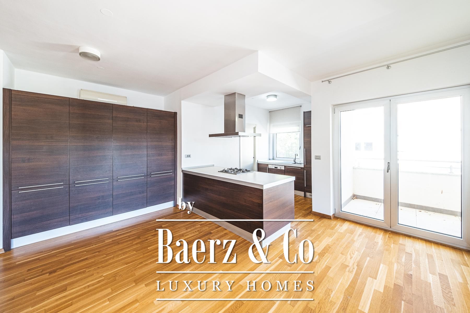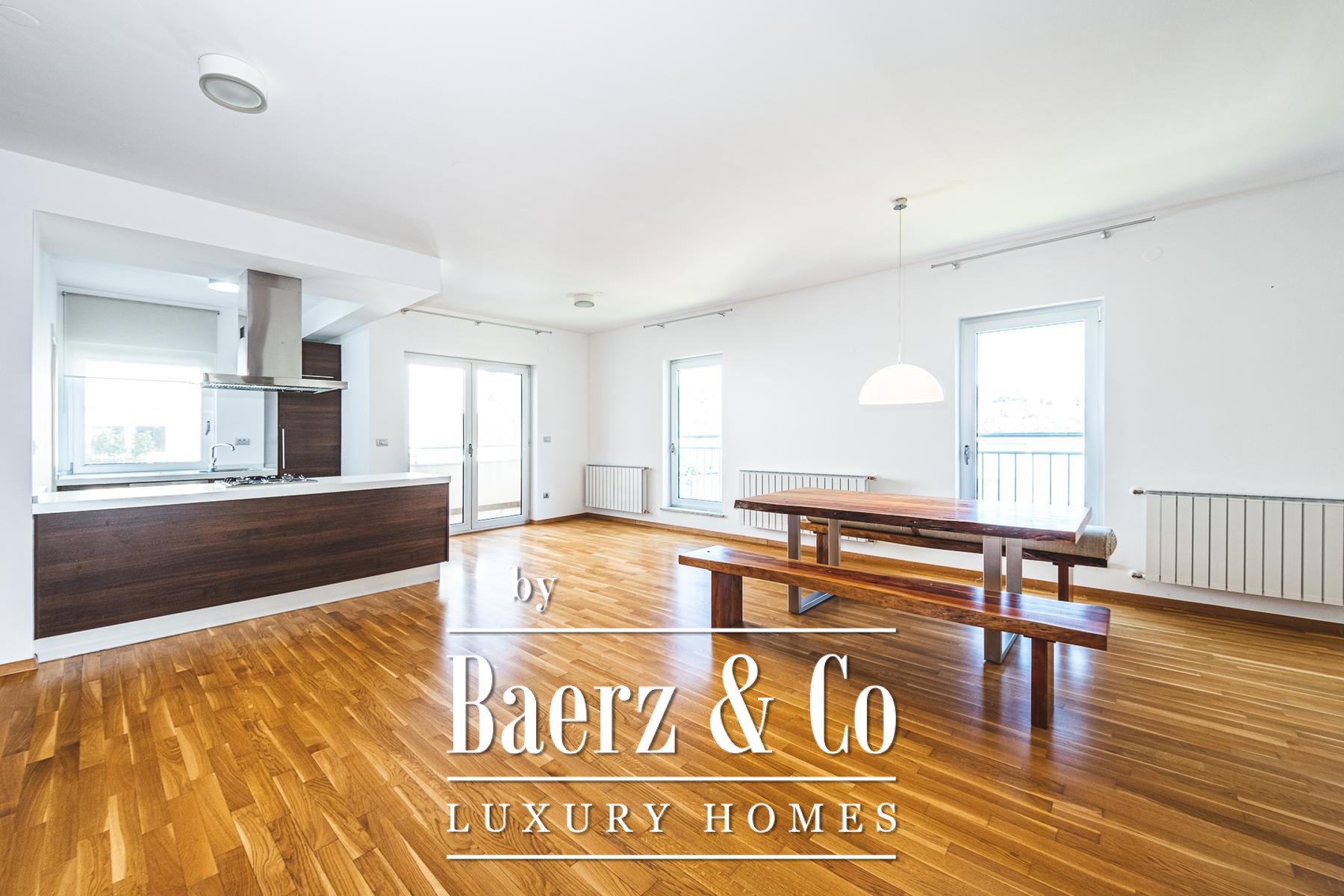 L’appartamento Črnomerec offre 213 m² di spazi abitativi curati nel tranquillo quartiere di Jelenovac. Questa residenza con tre camere da letto e tre bagni si trova al piano terra di un edificio di recente costruzione, offrendo un’atmosfera di comfort contemporaneo e facilità di vita. L’ingresso principale conduce a una zona giorno open space, inondata di luce naturale che si estende verso la terrazza e crea una connessione fluida tra interno ed esterno. La cucina e la sala da pranzo, collegate a un balcone privato, rappresentano la cornice ideale sia per mattine tranquille che per momenti conviviali.