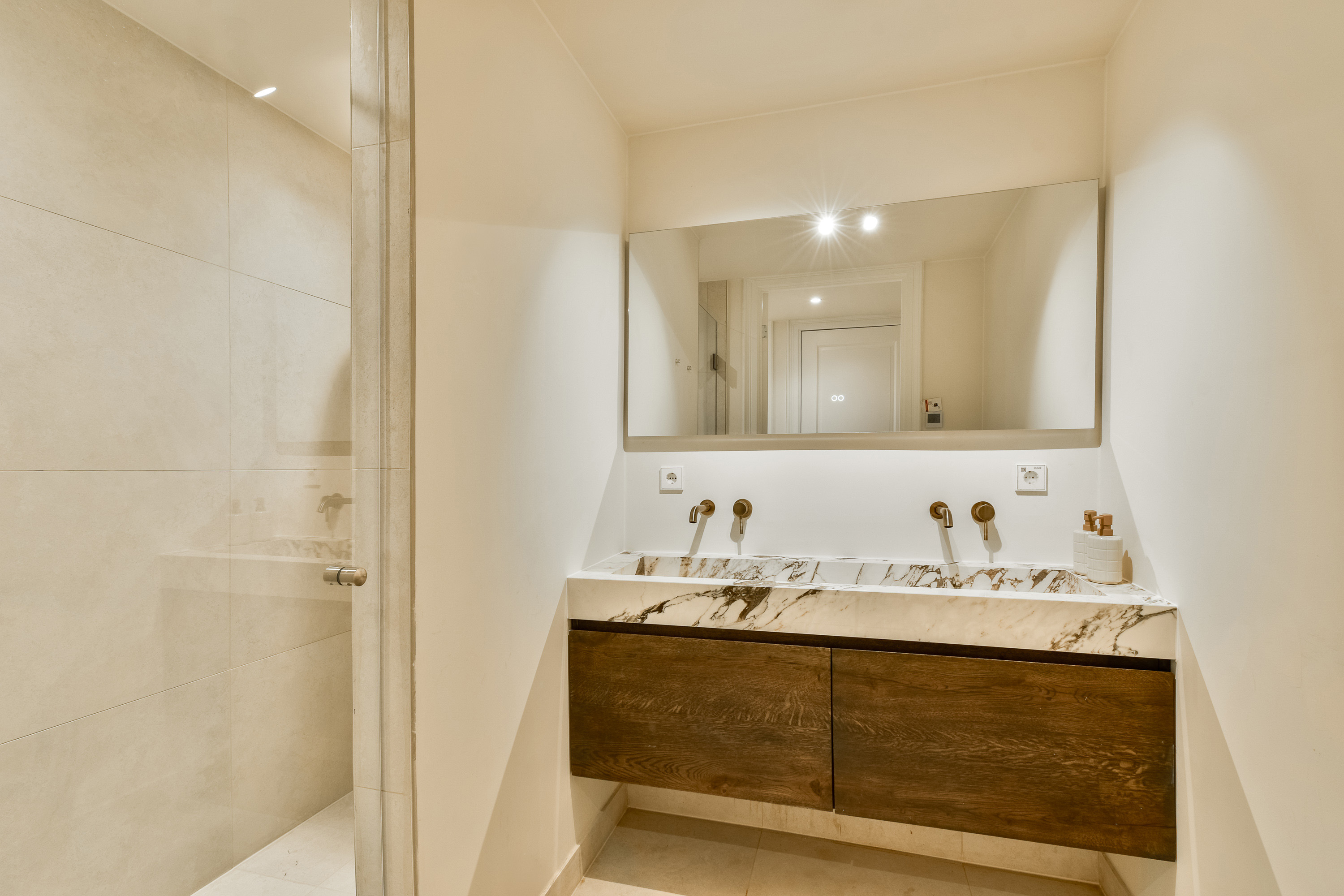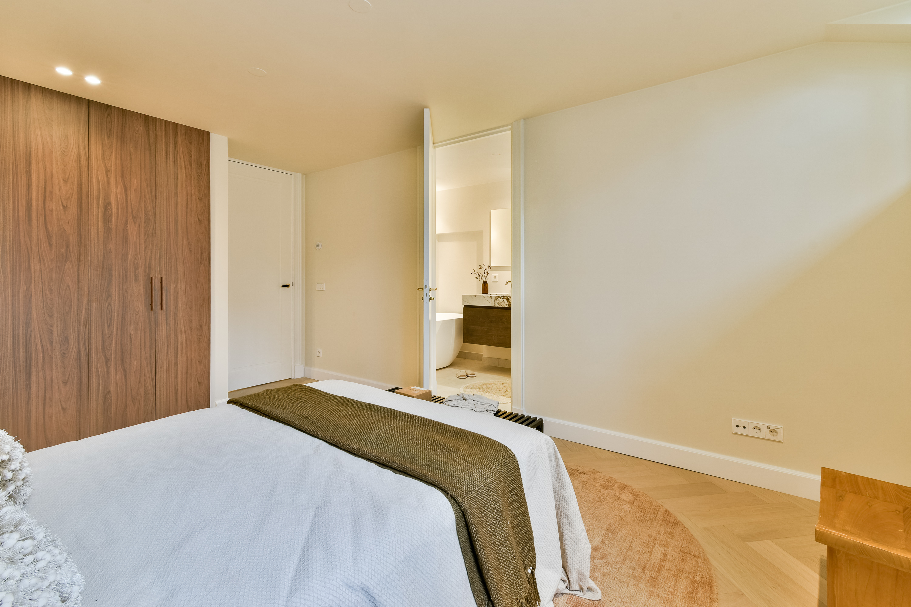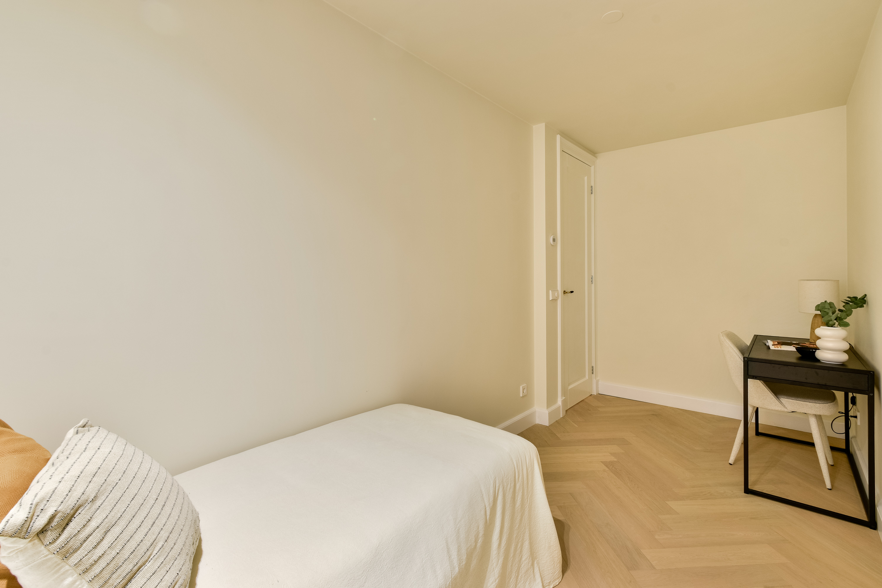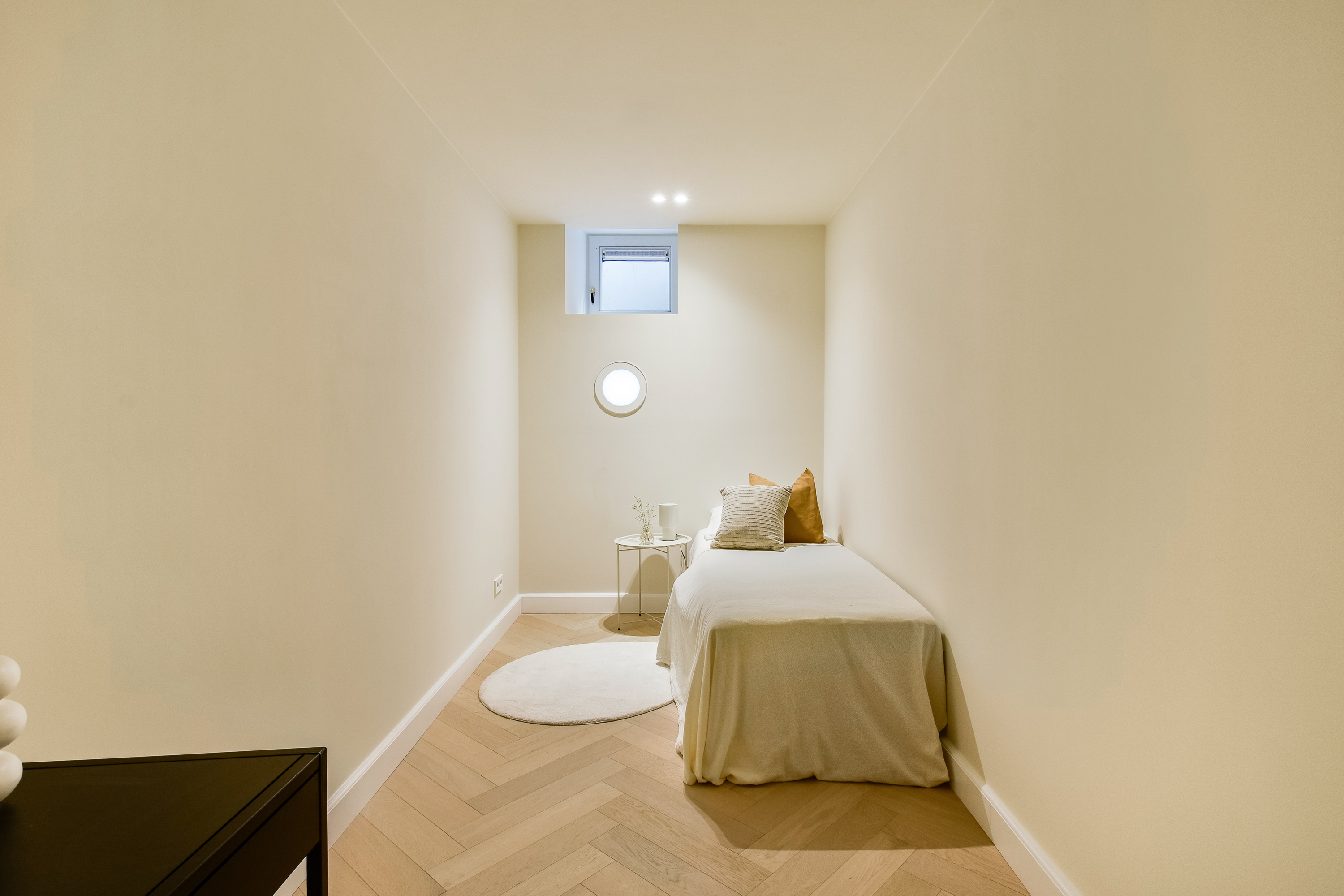 Al livello inferiore, l’appartamento dispone di tre camere da letto ben distribuite e due bagni sofisticati, entrambi caratterizzati da finiture contemporanee, docce walk-in e doppi lavabi. La camera padronale riceve abbondante luce naturale e dispone di armadio a muro. Al piano superiore si trova un ulteriore bagno con vasca e una camera aggiuntiva all’ultimo livello, offrendo soluzioni abitative personalizzabili per la famiglia o gli ospiti. La ristrutturazione totale ha incluso finiture di pregio, riscaldamento a pavimento, ventilazione meccanica e piena proprietà. Distinta dalla sua posizione centrale ad Amsterdam, la residenza offre accesso a rinomati ristoranti e luoghi di intrattenimento nei dintorni, con collegamenti di trasporto eccellenti e una tranquillità privata nel cuore pulsante della città.