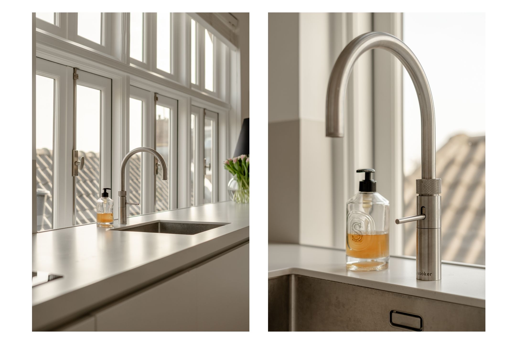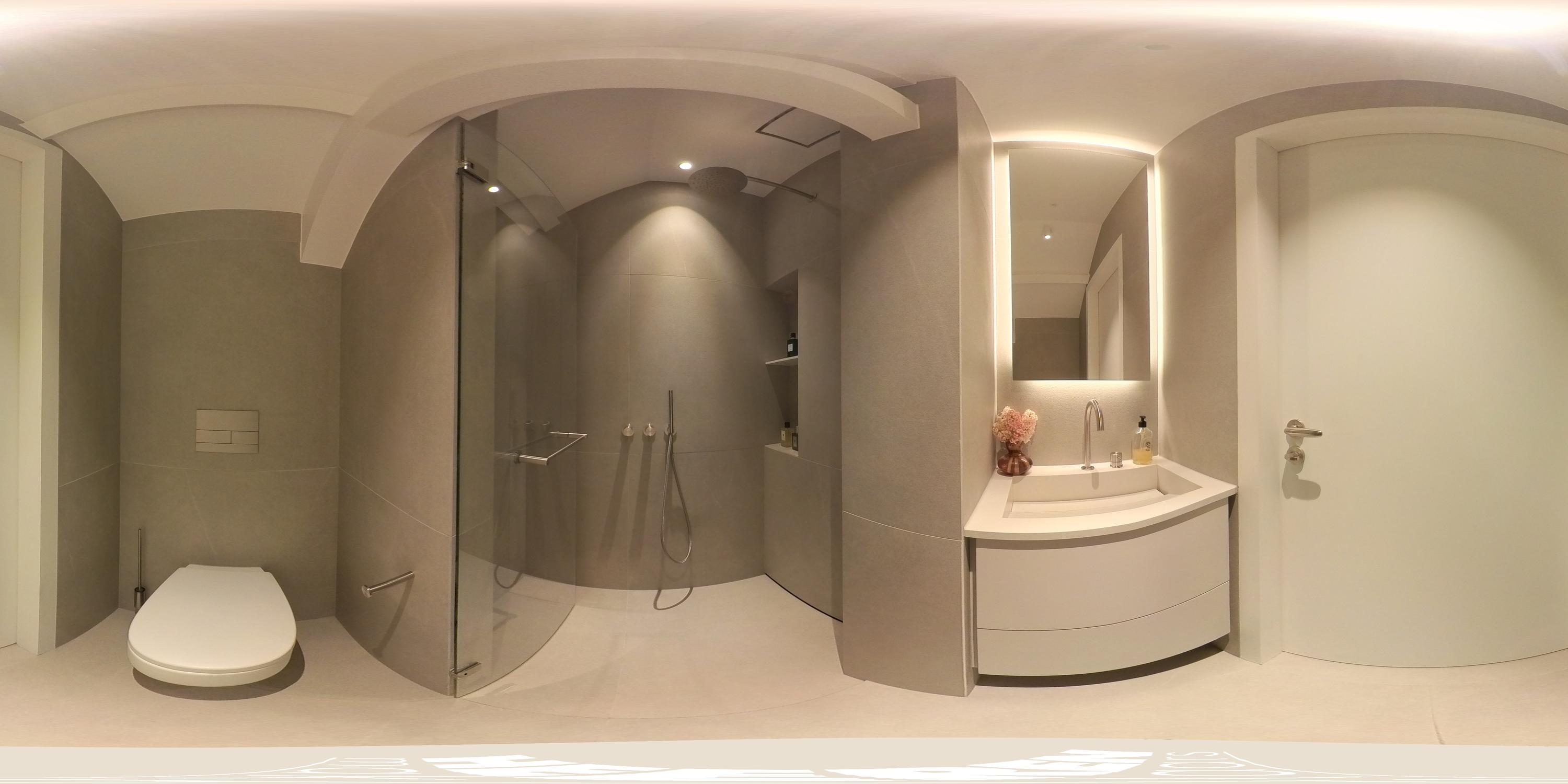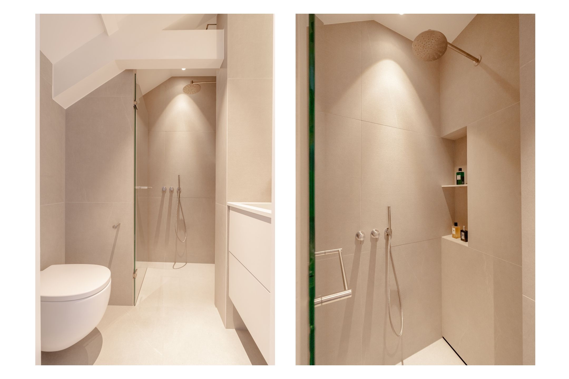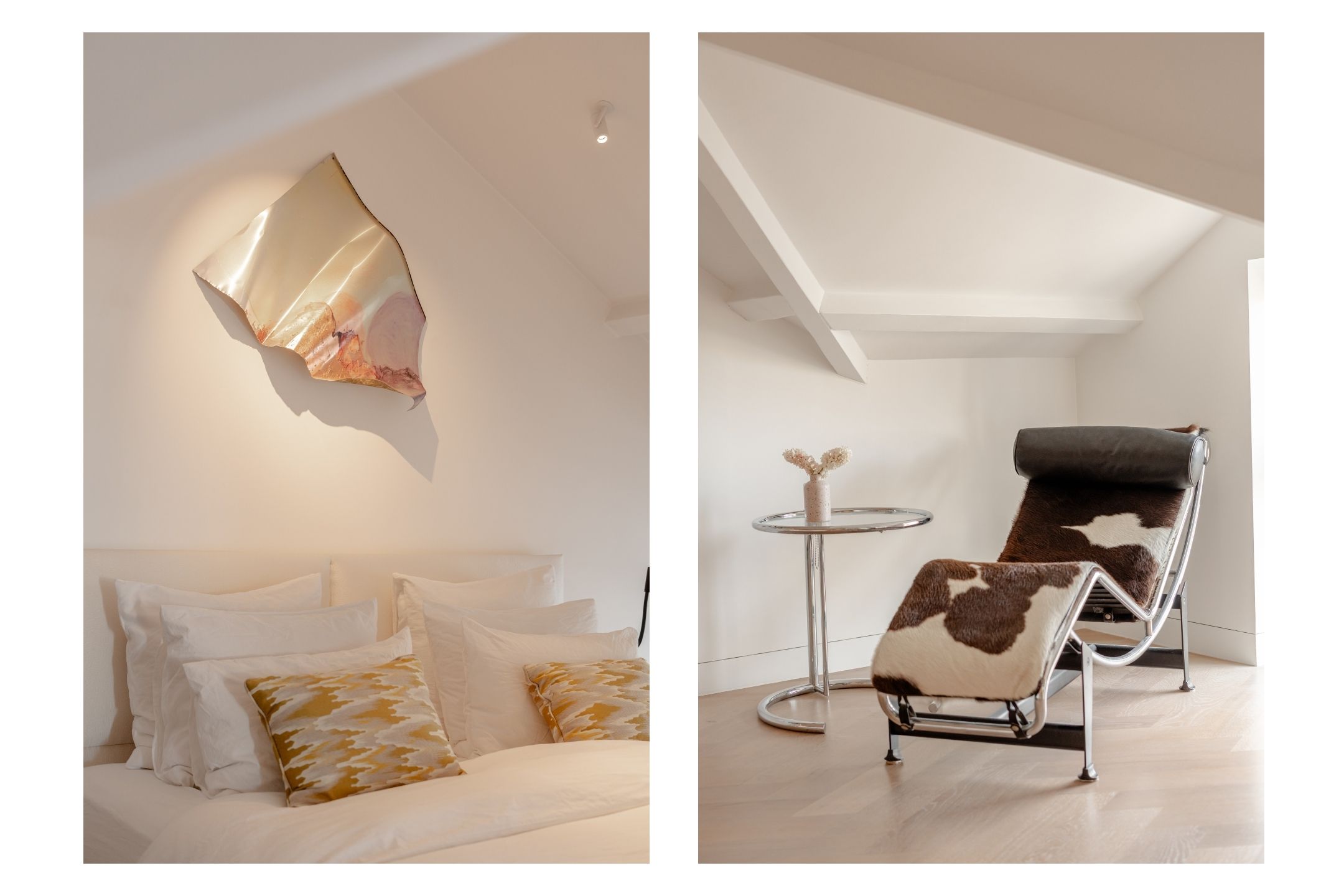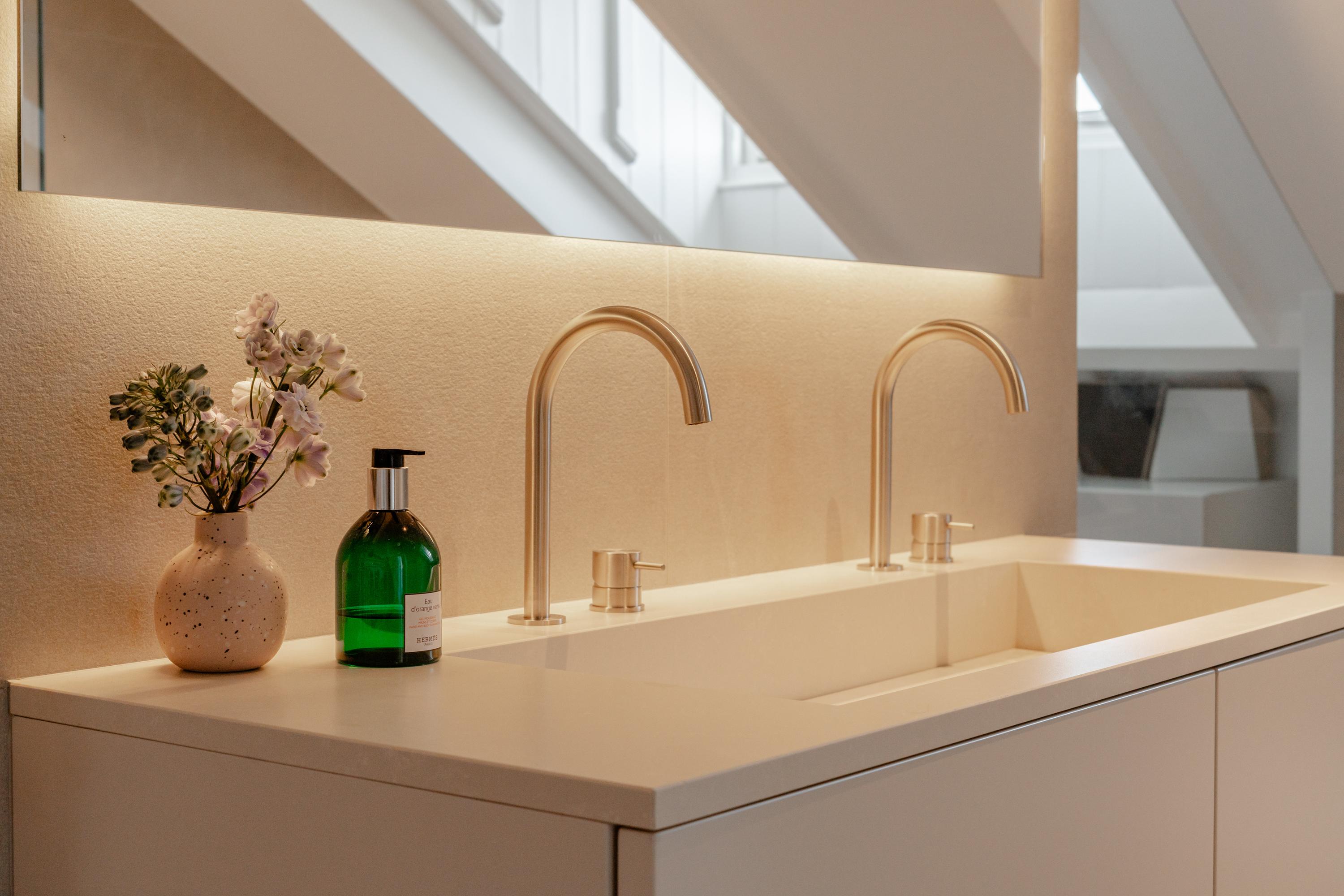 La cucina a vista, cuore pulsante della zona giorno, è arredata con mobili personalizzati a tutta altezza, elettrodomestici Siemens di fascia alta, piano a induzione, rubinetto Quooker, cantina climatizzata per vini e area bar. Gli ambienti si collegano con fluidità al soggiorno, dove vetrate istoriate e un camino a gas aggiungono carattere. Sia la suite padronale che la seconda camera sono attentamente progettate con spazi contenitivi integrati e aria condizionata, offrendo due bagni di altissimo livello dotati di vasca indipendente e docce walk-in.