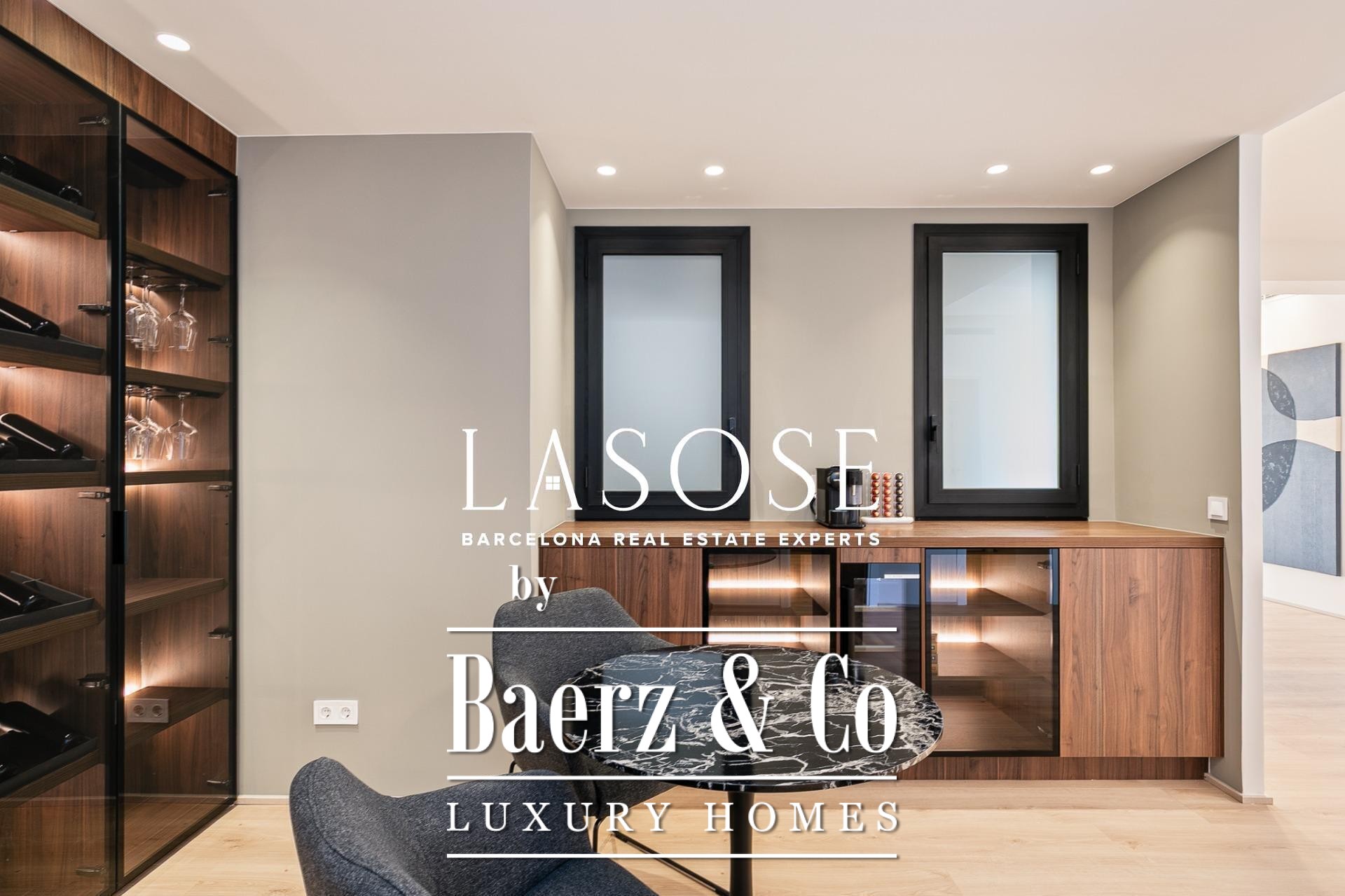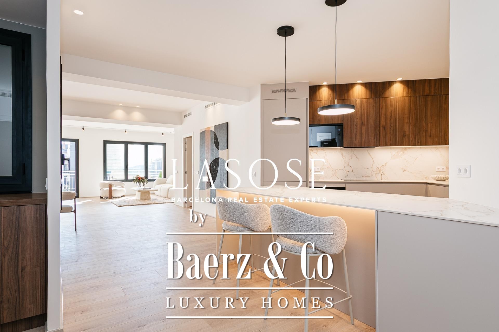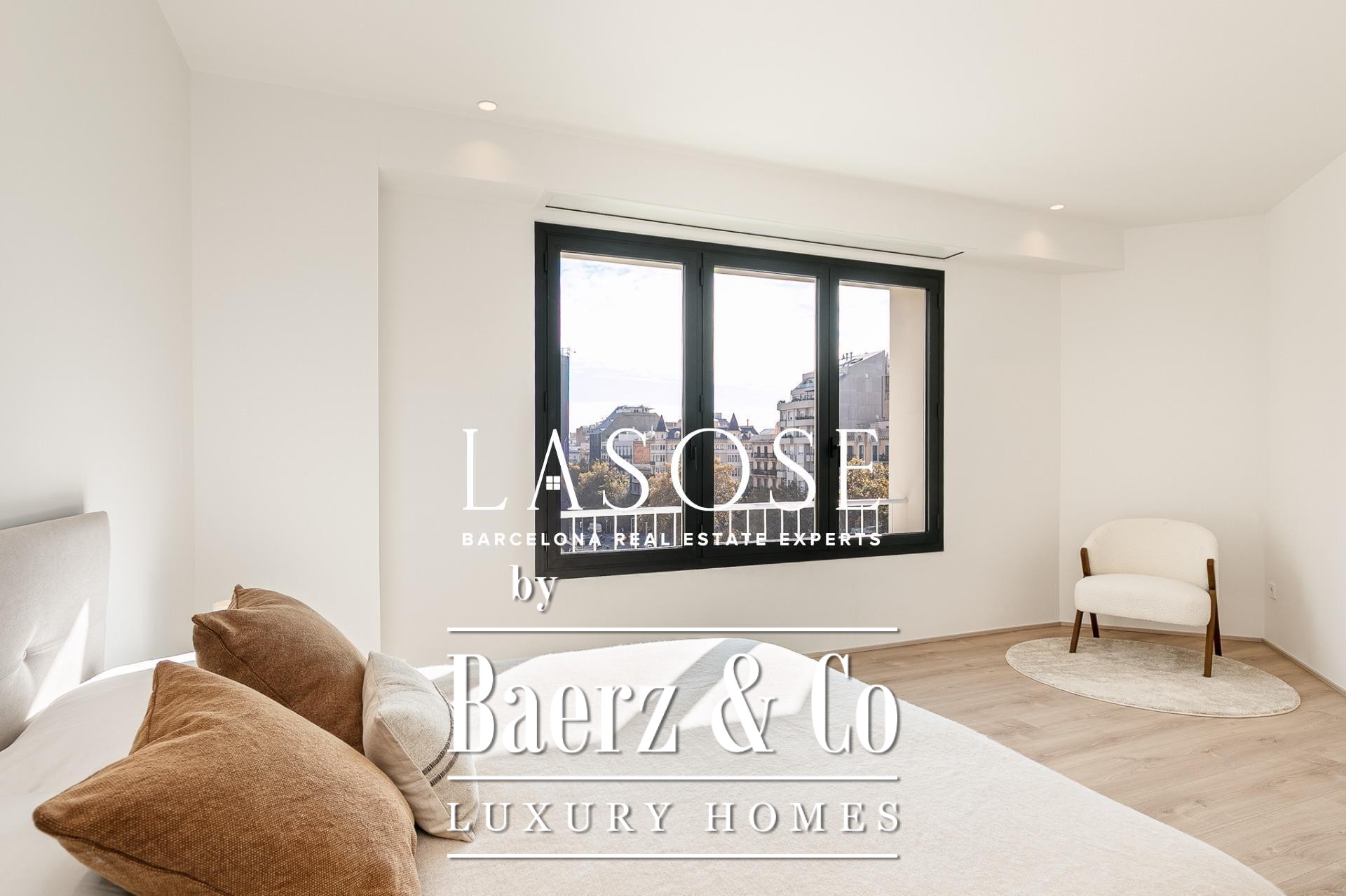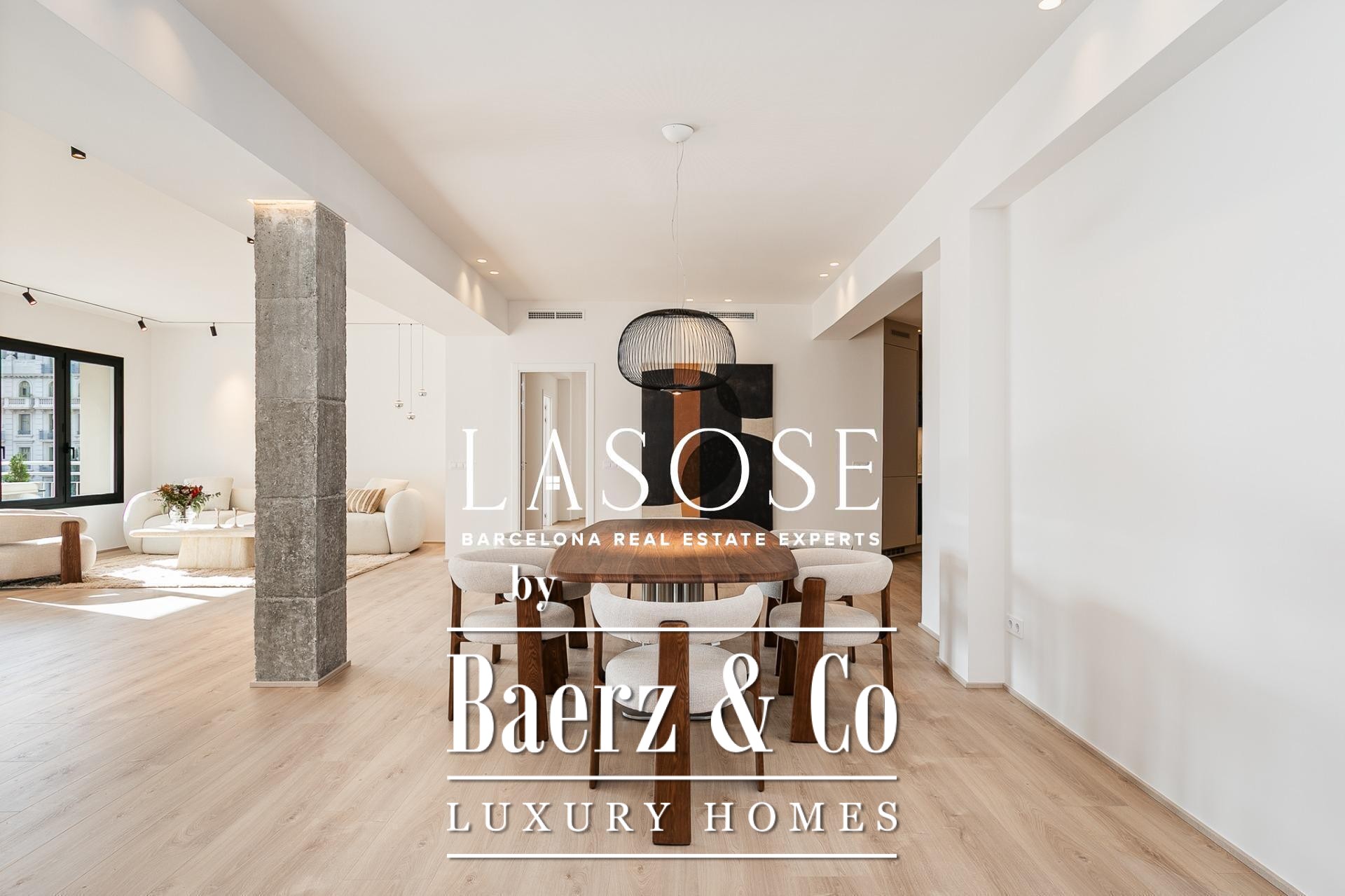 LASOSE presents a truly exceptional residence in Dreta de l’Eixample, one of Barcelona’s most exclusive and iconic neighbourhoods. Positioned on the impressive corner where Passeig de Sant Joan meets Avinguda Diagonal, this property enjoys a vibrant and sophisticated setting surrounded by designer boutiques, fine-dining restaurants, contemporary art galleries and grand tree-lined boulevards. Just steps from Passeig de Gràcia and the Sagrada Família, living here means experiencing the cultural and architectural heart of Barcelona while enjoying an unparalleled quality of life.. This magnificent corner residence of approximately 300 m2 has been completely refurbished using high-end materials, resulting in a bright, elegant and contemporary home. Its southeast orientation and expansive windows allow natural light to flood every space throughout the day. The generous 90 m2 living-dining area opens onto an impressive corner terrace with panoramic views over the Eixample and the emblematic Plaça Mossèn Jacint Verdaguer, creating an idyllic setting to relax and enjoy the city’s rhythm from the serenity of your own home.. The kitchen, designed by Santos and equipped with top-of-the-line Bosch appliances, stands out for its sophisticated and highly functional style. The central island, featuring an electric wine cellar and coffee area, becomes an ideal social hub. An adjacent pantry room provides practical and discreet storage without compromising the home’s refined aesthetic.. The night area comprises four double bedrooms. The master suite includes a private terrace, a walk-in wardrobe and an en-suite bathroom with a freestanding bathtub. A second en-suite bedroom offers additional privacy for guests, while the remaining two bedrooms maintain the exceptional luminosity characteristic of the property. The bathrooms, finished in Porcelanosa stone with Noken brushed-copper fixtures, offer exquisite design and premium comfort.. The residence includes a service area with laundry room, machinery room and a 9 m2 storage room within the building. In terms of technology, it features an integral home-automation system with voice control, Mitsubishi zoned air conditioning, an aerothermal heating system and double-glazed carpentries for optimal insulation.. Located in a listed finca regia with a double-height entrance hall, concierge service, main elevator and service lift, this residence offers exceptional privacy with only two homes per floor. A unique opportunity for those seeking a property that blends exclusivity, design, space and an unbeatable location in the heart of Barcelona.. .