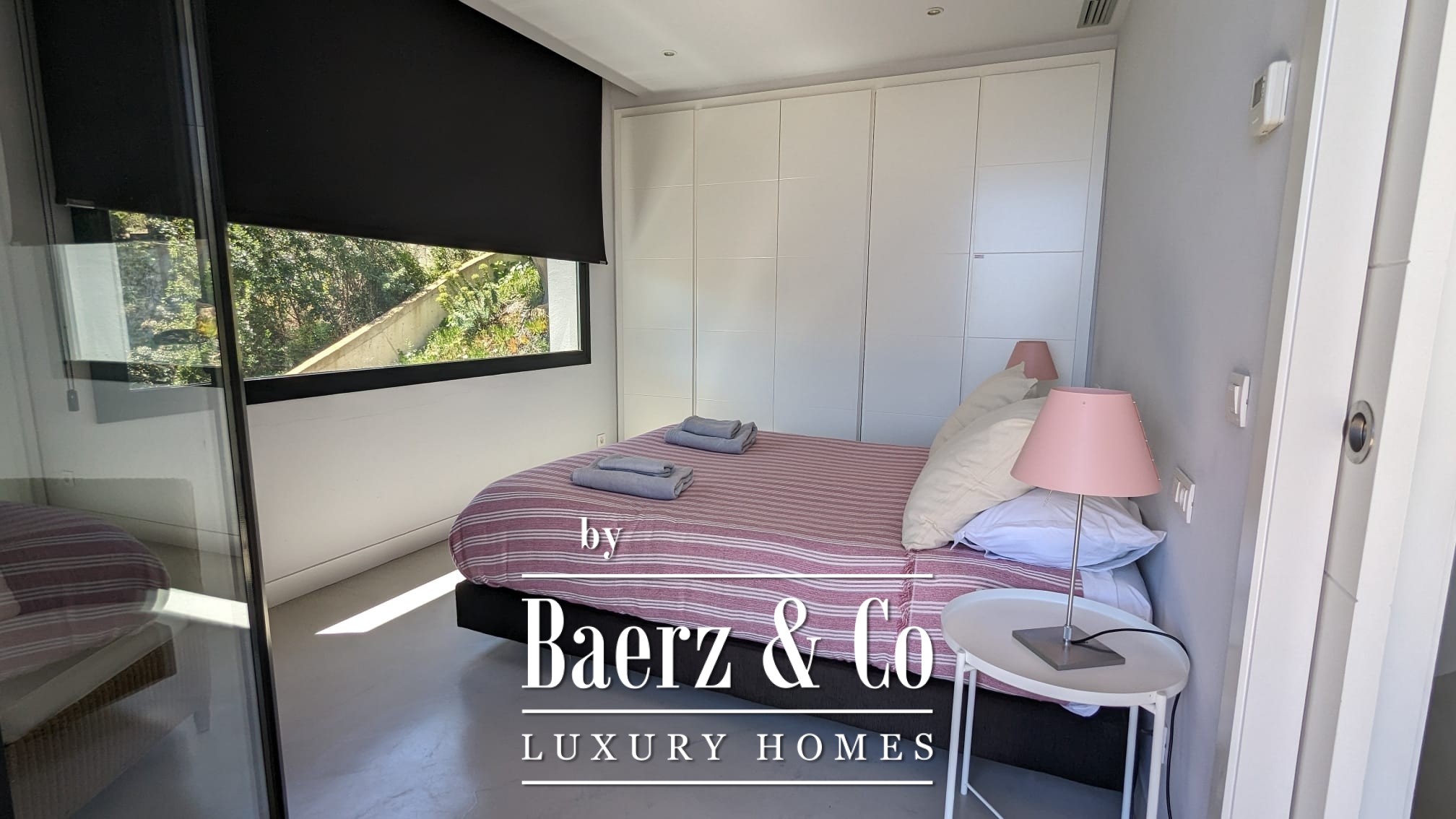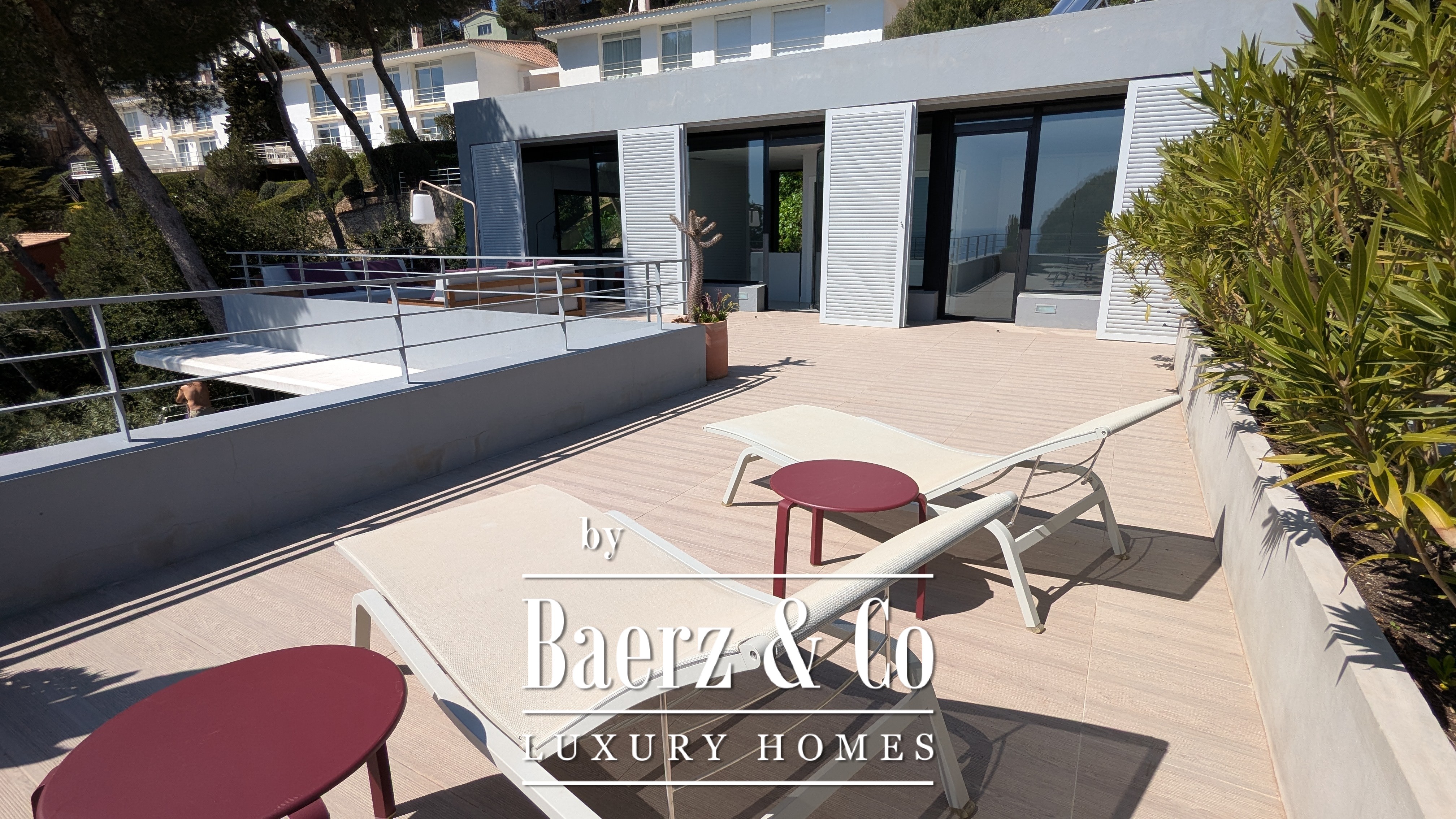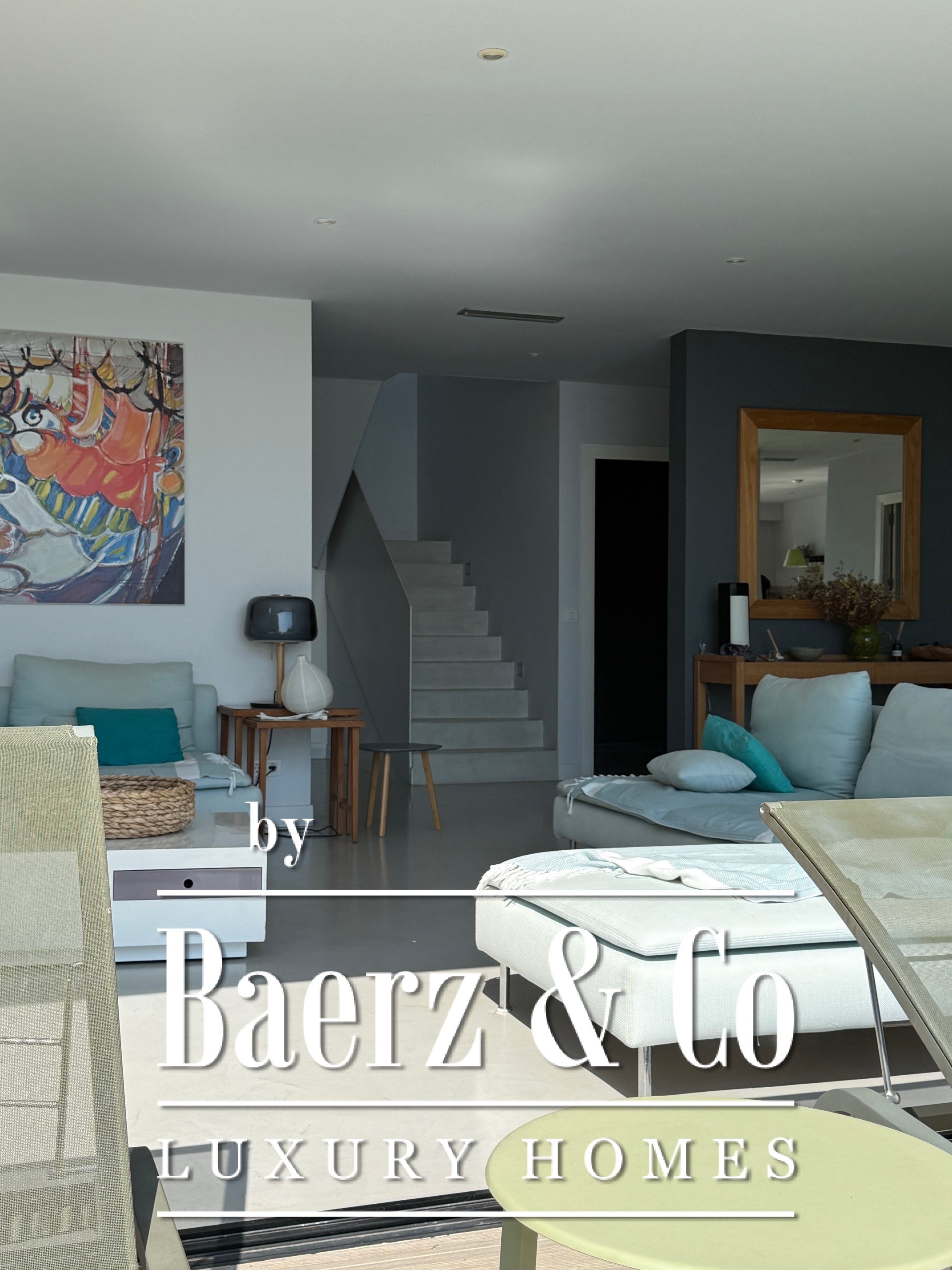 Il piano inferiore ospita due camere matrimoniali e un bagno, ambienti progettati per offrire comfort e armonia. Al piano superiore si trovano altre due camere matrimoniali che condividono un bagno e si affacciano entrambe su una terrazza di 50 m² con vista mare eccezionale.