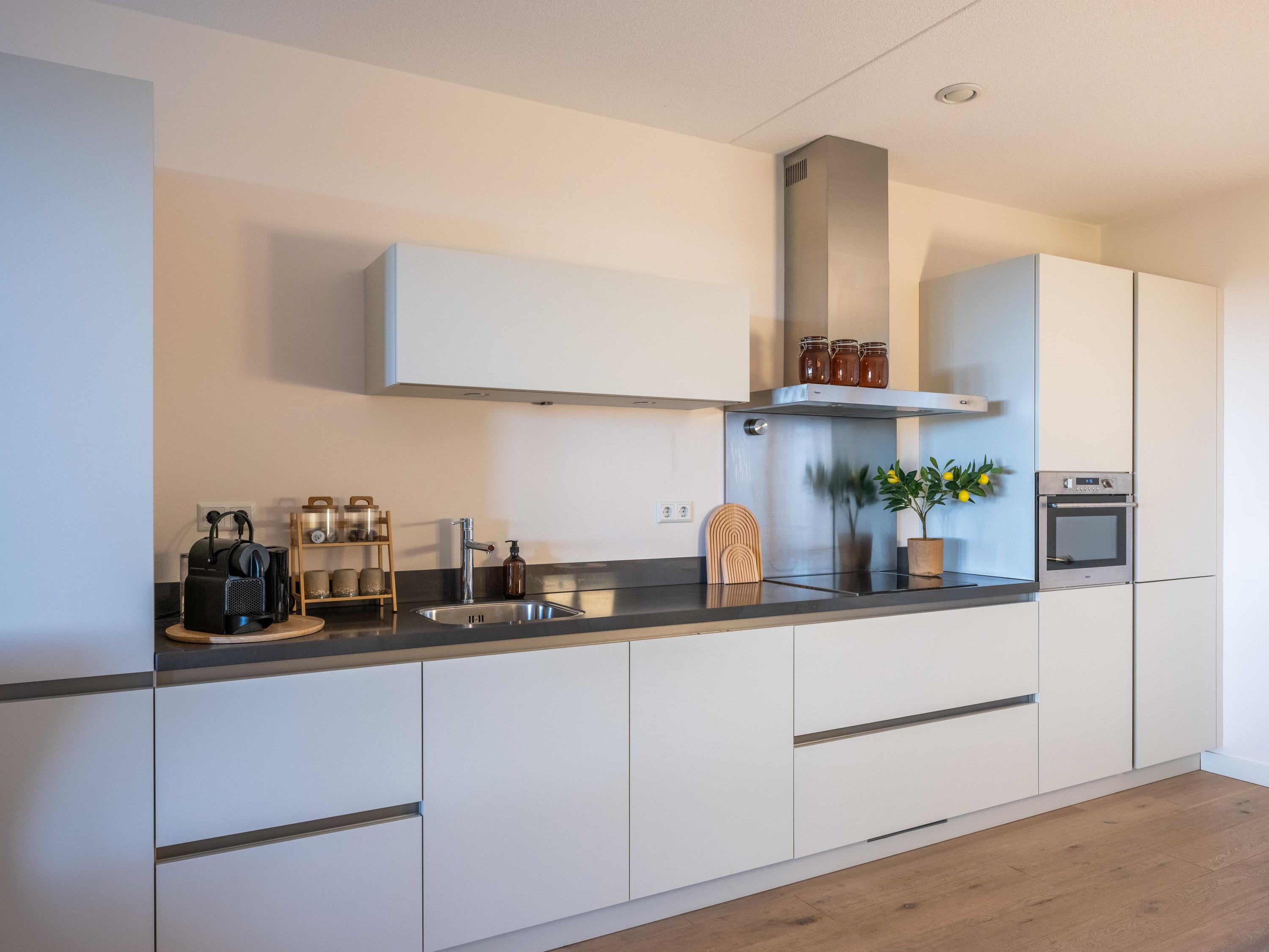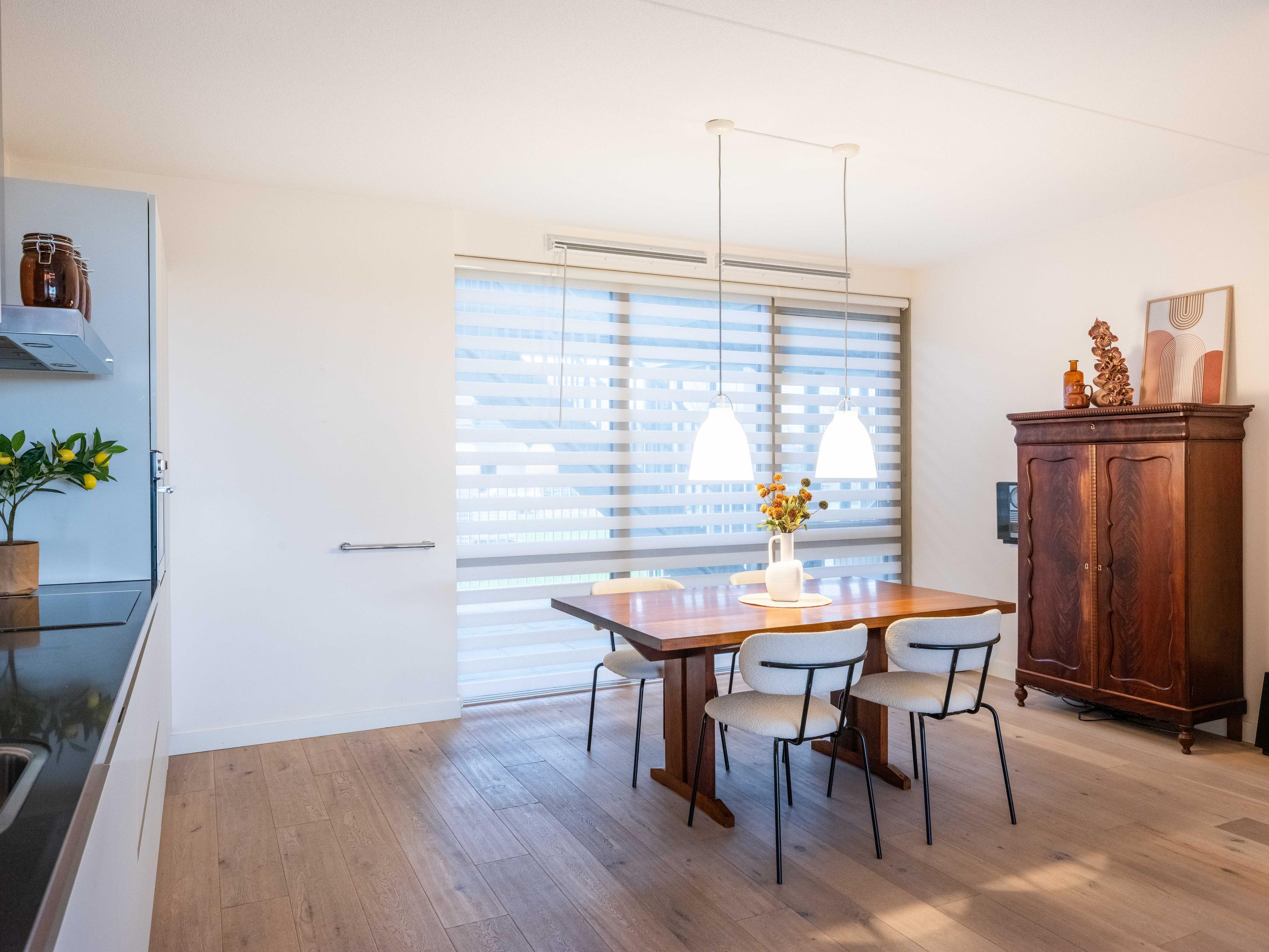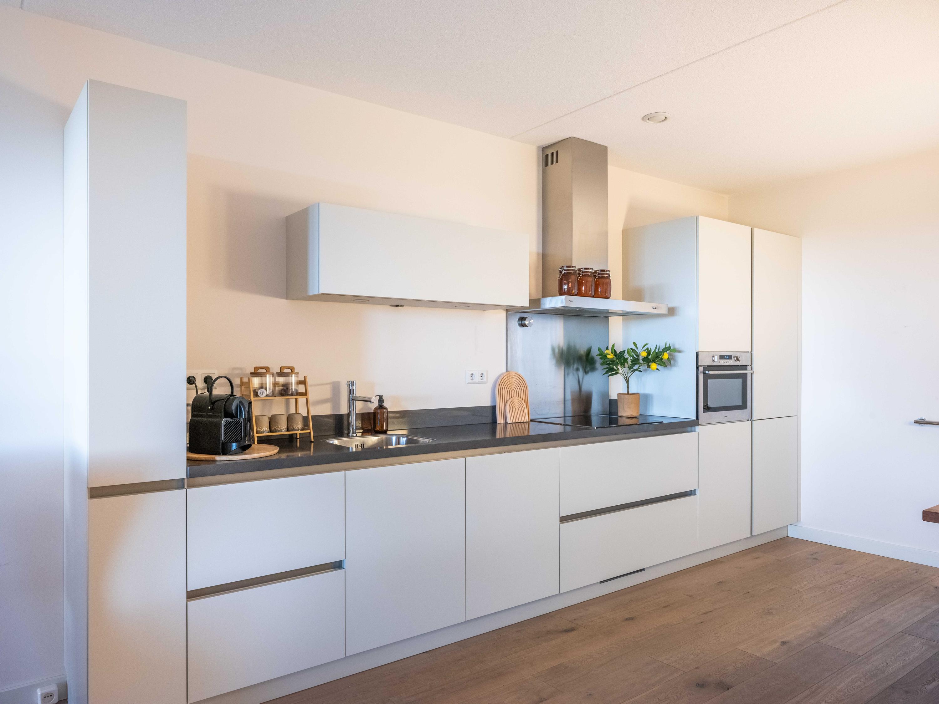 Apartment Bergen NH vi accoglie in un indirizzo che unisce eredità e raffinatezza contemporanea. Situata nell’esclusivo Merici Estate, un nome intrecciato con la storia di Bergen, questa residenza offre privacy e viste panoramiche sulla campagna verde e sui campi fioriti dalla prima piano di un complesso intimo. L’appartamento a Bergen NH, con una superficie abitabile di 109 m², presenta una disposizione studiata: un ampio ingresso introduce alla zona giorno, due camere da letto, una cucina moderna a vista completa di elettrodomestici incassati e un bagno di alto livello dotato di doppio lavabo, ampia doccia walk-in e servizi. Il riscaldamento a pavimento, i doppi vetri HR++ e una pompa di calore all’avanguardia garantiscono comfort tutto l’anno, completati da una classe energetica A.