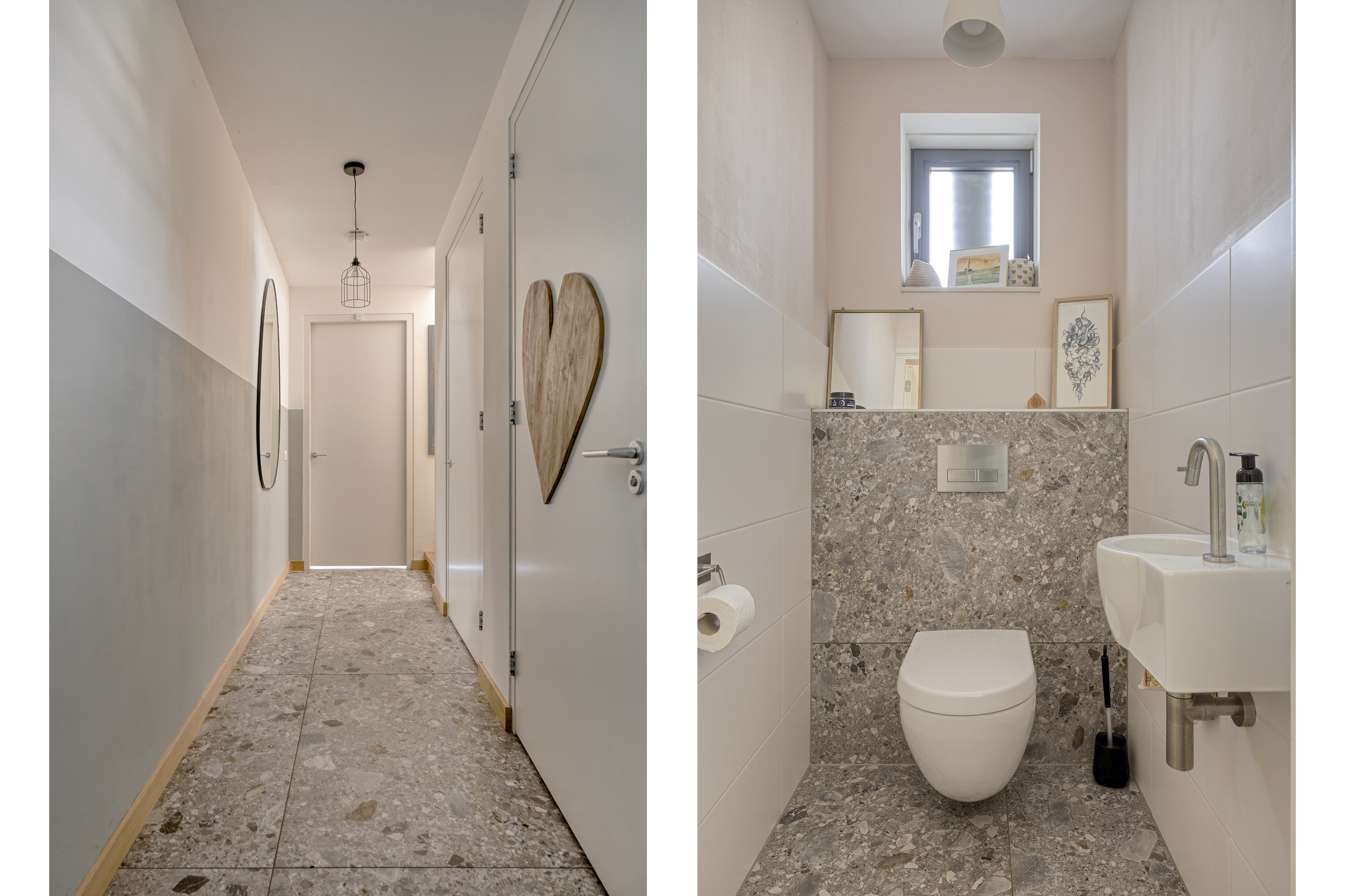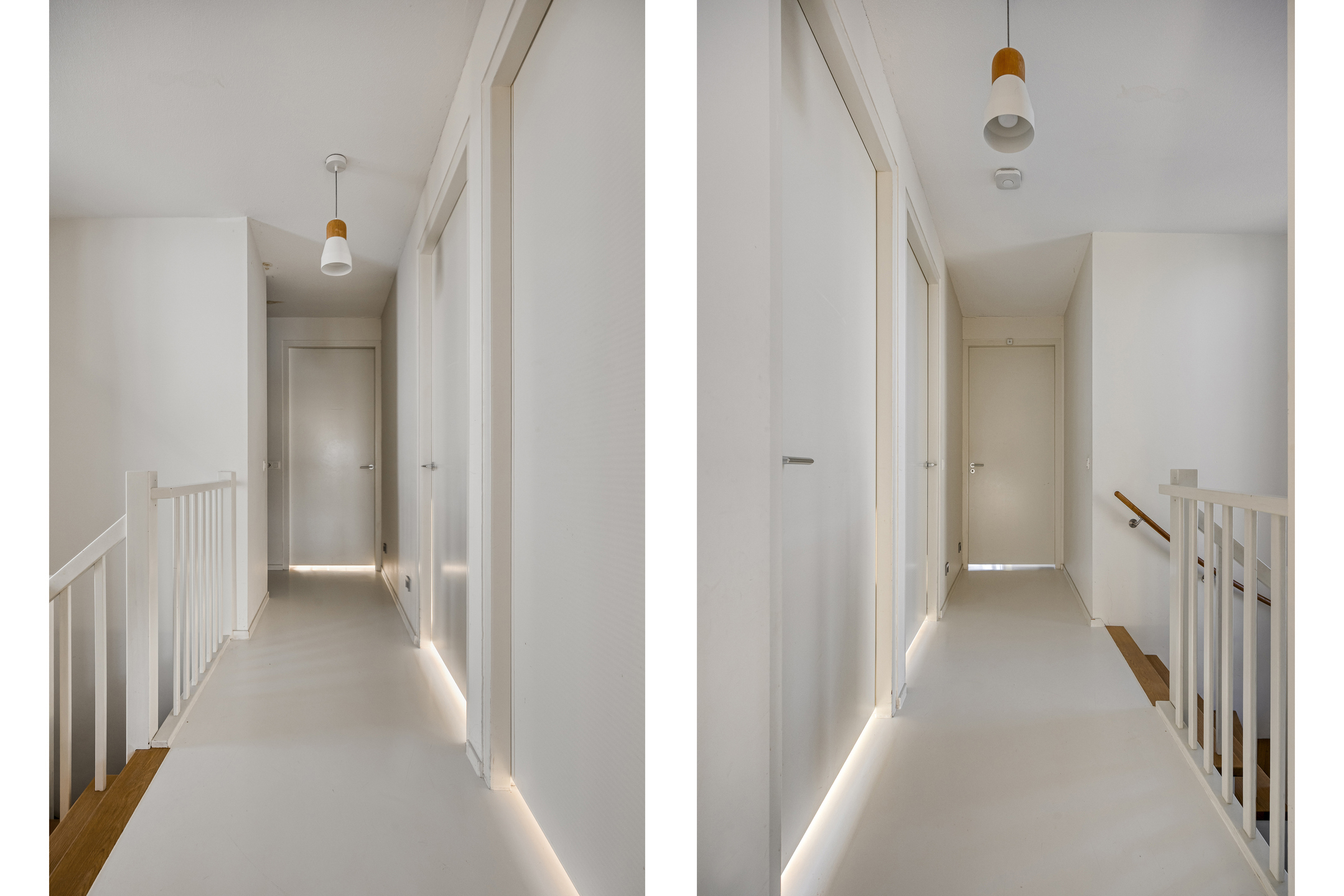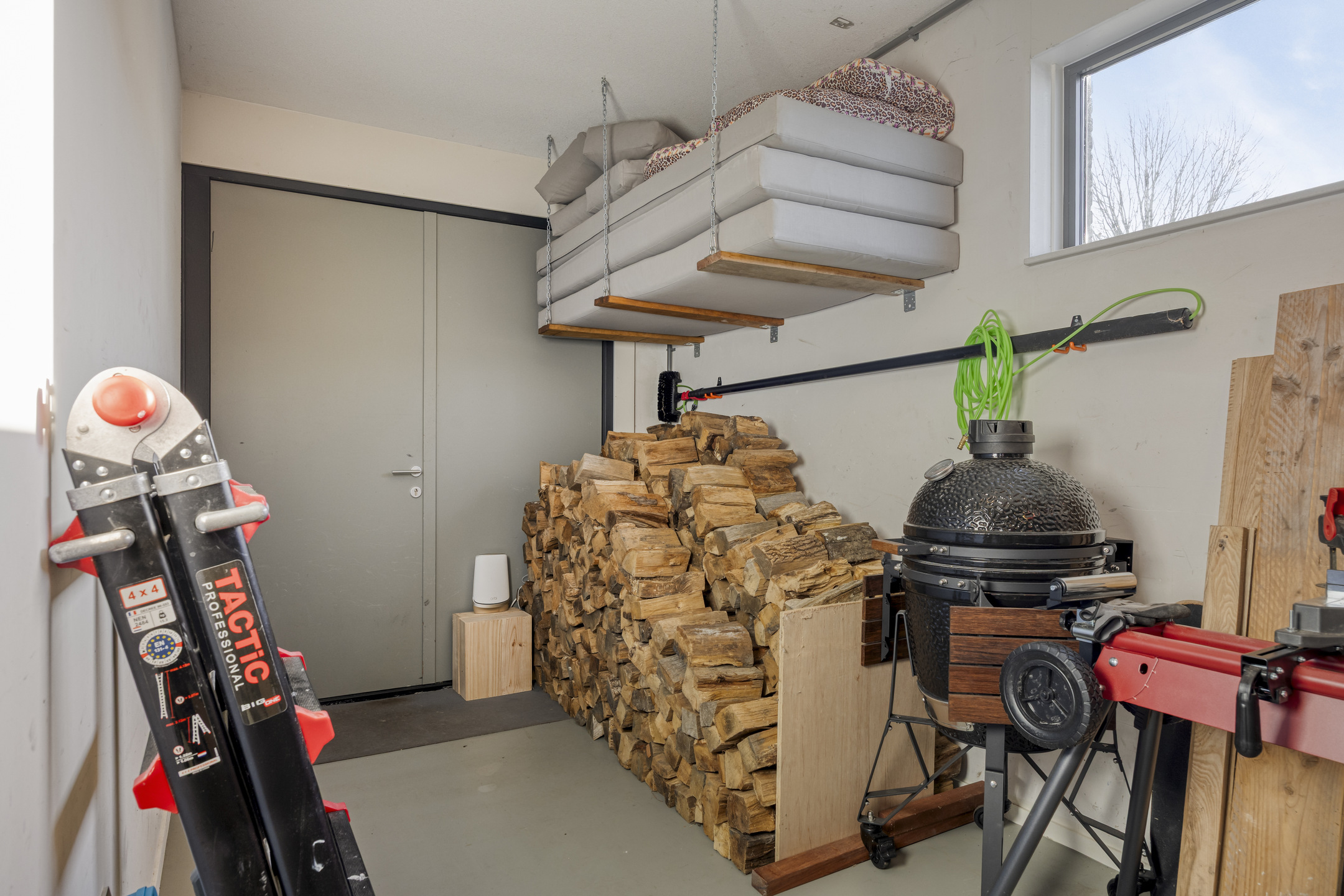 La sostenibilità è al centro del progetto. Una pompa di calore Daikin (2025), riscaldamento a pavimento in tutta la casa, 31 pannelli solari e un isolamento completo assicurano efficienza e futuro. L’abitazione è completamente priva di gas, con ventilazione, riscaldamento e acqua calda gestiti con estrema precisione.