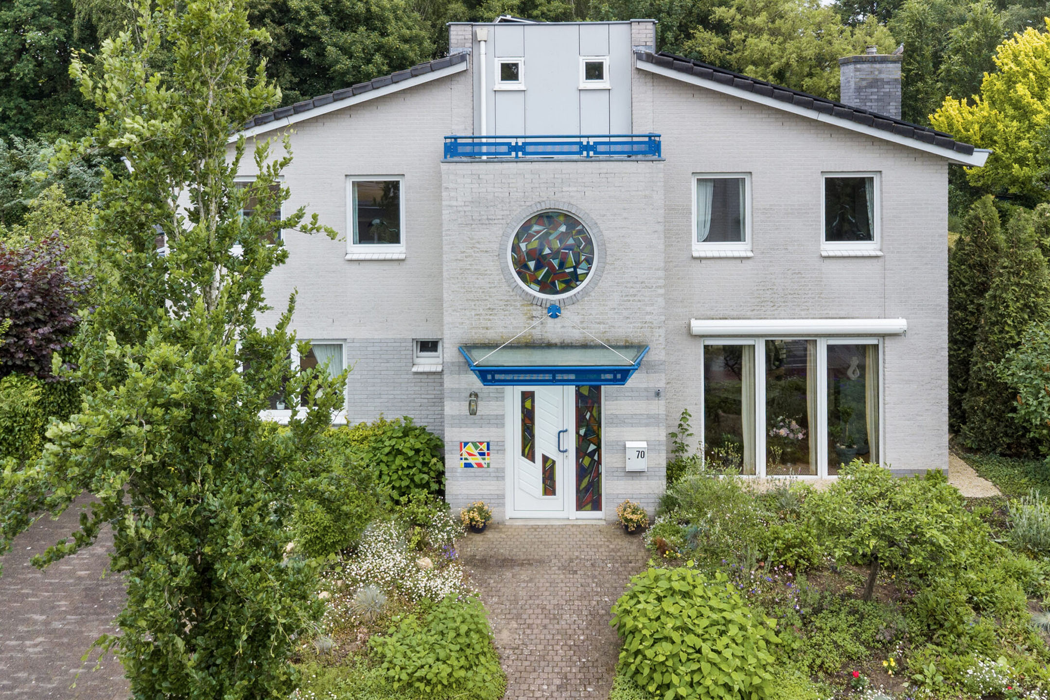 All’interno, la villa offre 261 m² di superficie abitabile, con un ritmo scandito da ampie vetrate, parquet in rovere disposto in diagonale e un atrio arioso inondato di luce. La zona giorno a L regala flessibilità e calore, caratterizzata da una stufa a legna e un accesso diretto al terrazzo sul giardino. La cucina senza tempo, realizzata con frontali color crema e piani di lavoro antracite, si integra perfettamente con la zona di servizio, facilitando la quotidianità e i momenti conviviali. Quattro camere da letto, uno studio affacciato sul giardino e il riscaldamento a pavimento in alcune aree evidenziano l’attenzione per i dettagli, mentre 27 pannelli solari e un isolamento completo assicurano una prestazione energetica di classe A.