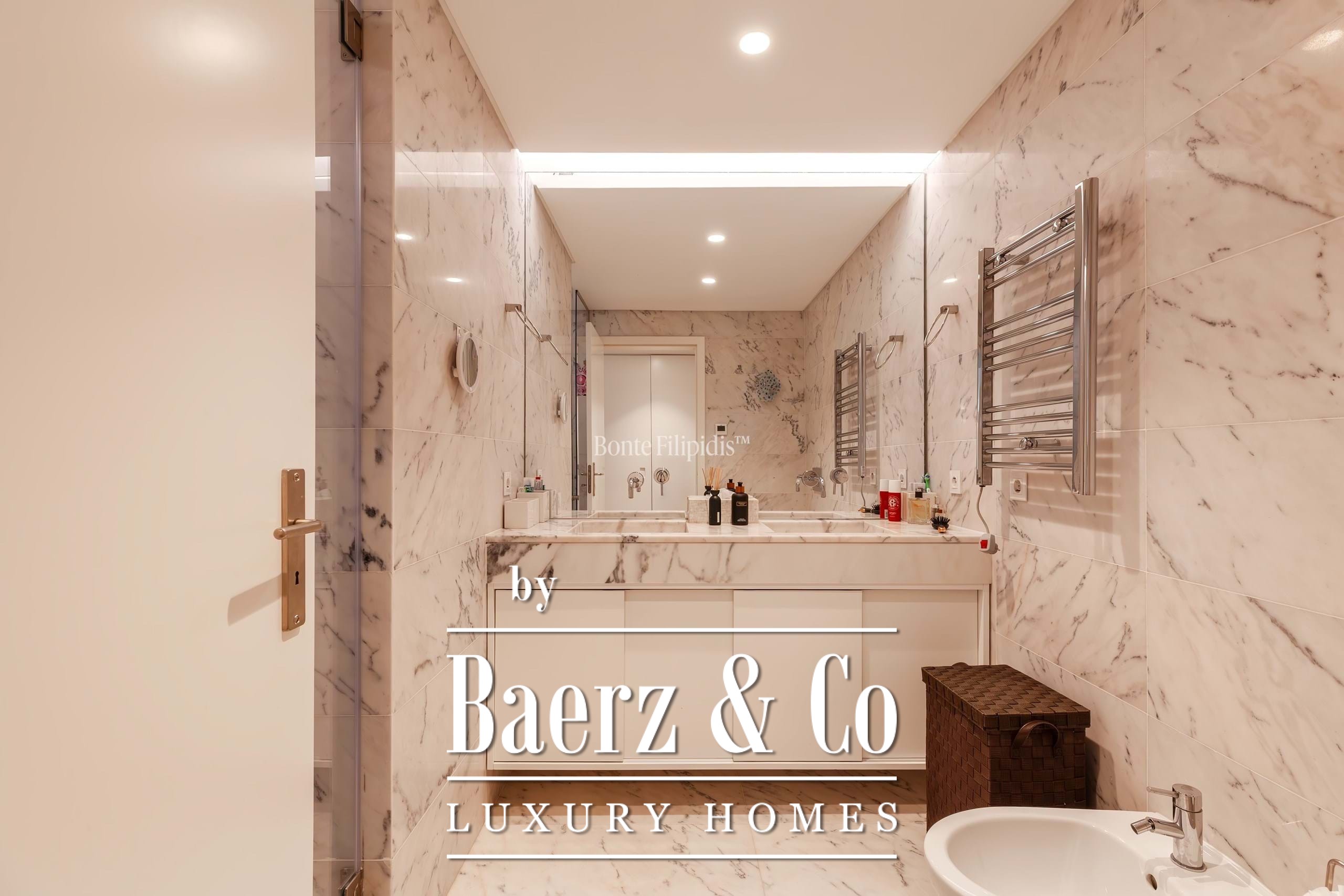 L’appartamento dispone di tre camere da letto, inclusa una suite privata, e tre bagni, mantenendo un’atmosfera sobria di comfort e riservatezza. La cucina completamente accessoriata rappresenta il centro della vita e dell’intrattenimento. I comfort essenziali includono aria condizionata, riscaldamento centralizzato, ripostiglio e due posti auto coperti, per uno stile di vita moderno e senza compromessi.
