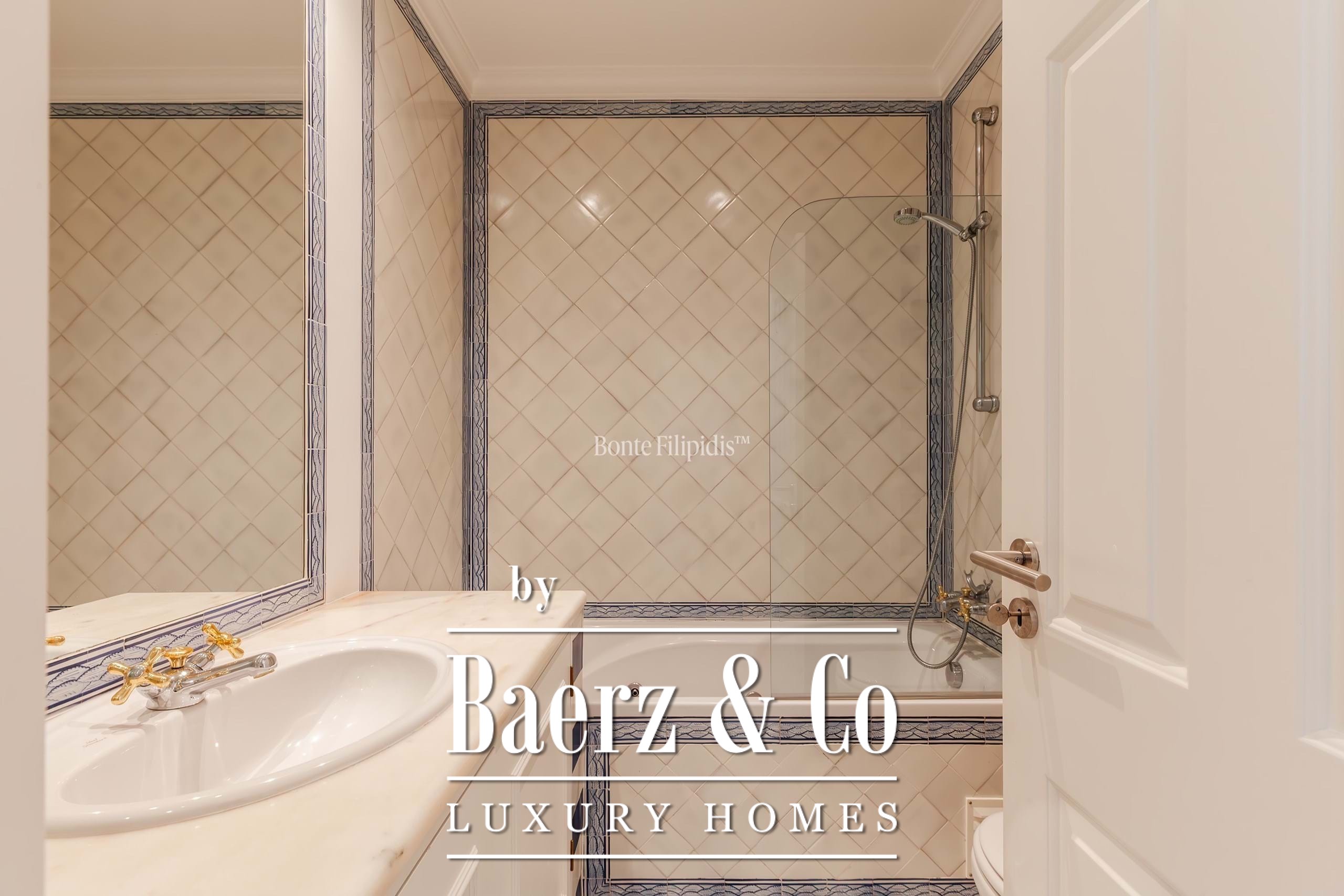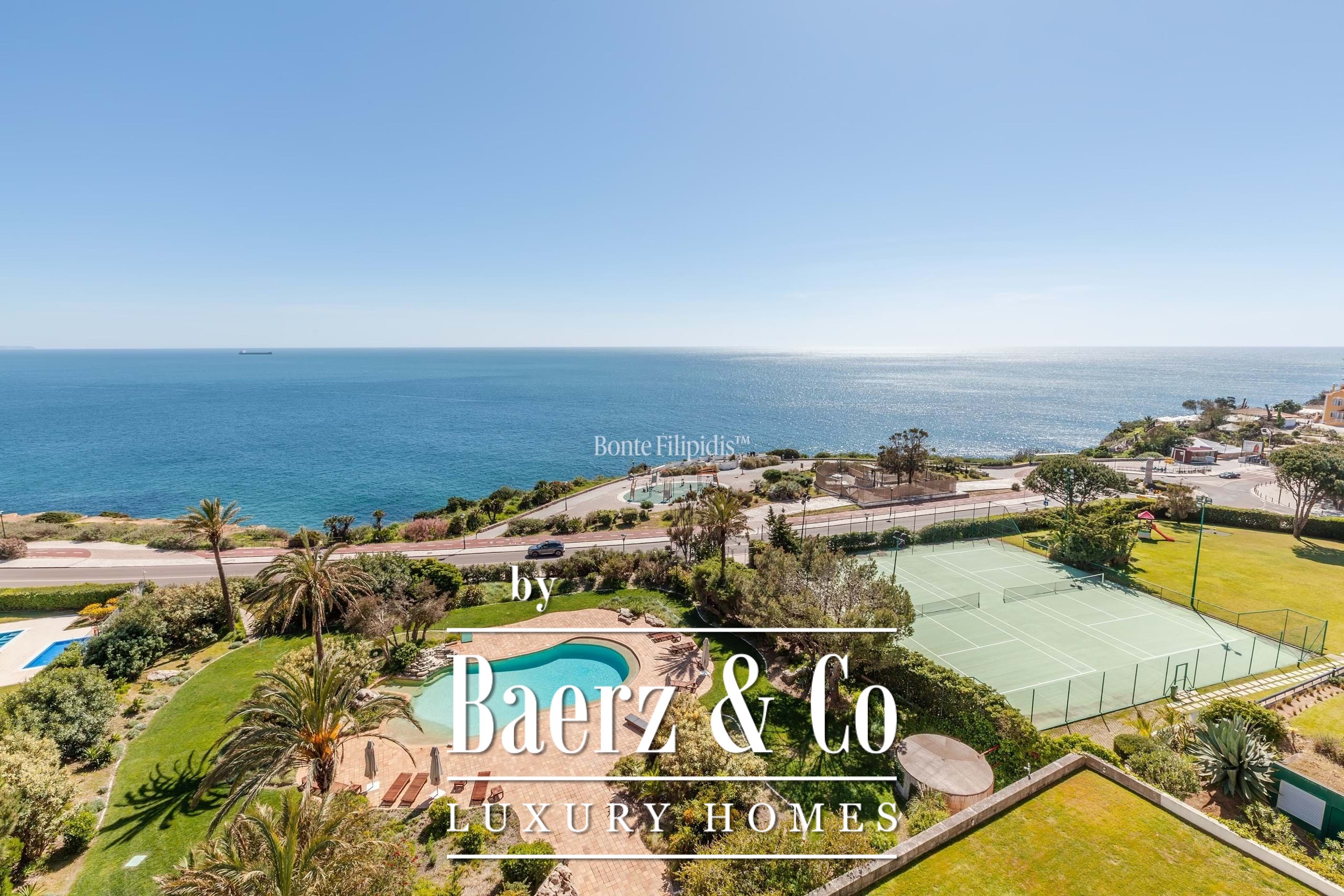 La cucina completamente attrezzata unisce praticità e comfort, con ingresso di servizio e zona pranzo dedicata. I residenti possono godere di giardini curati, piscine interne ed esterne, campo da tennis e una gamma completa di servizi, tutto in un ambiente riservato e sicuro. La posizione valorizza la vivacità di Cascais e offre una rara combinazione di privacy, ampi spazi e vista mare panoramica.