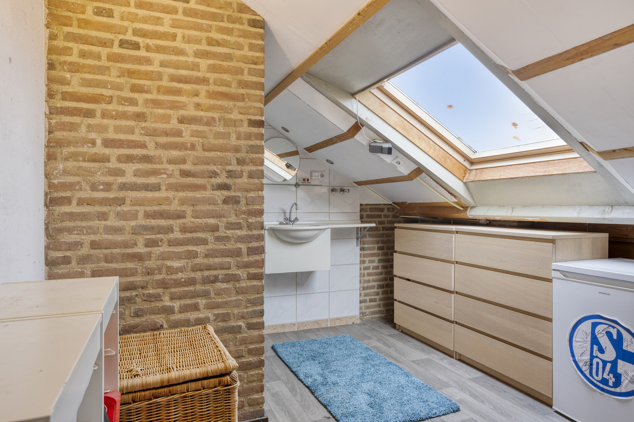 Eerste verdieping: bordes met toegang tot de vide die nu wordt gebruikt als atelier, de berging en de twee hele ruime kamers (30 m²). De berging is voorzien van een wastafel en daar zit tevens de CV-ketel. De ene kamer wordt nu gebruikt als slaapkamer en de ander als extra living. Dit kan uiteraard ook prima gebruikt worden als slaapkamer.