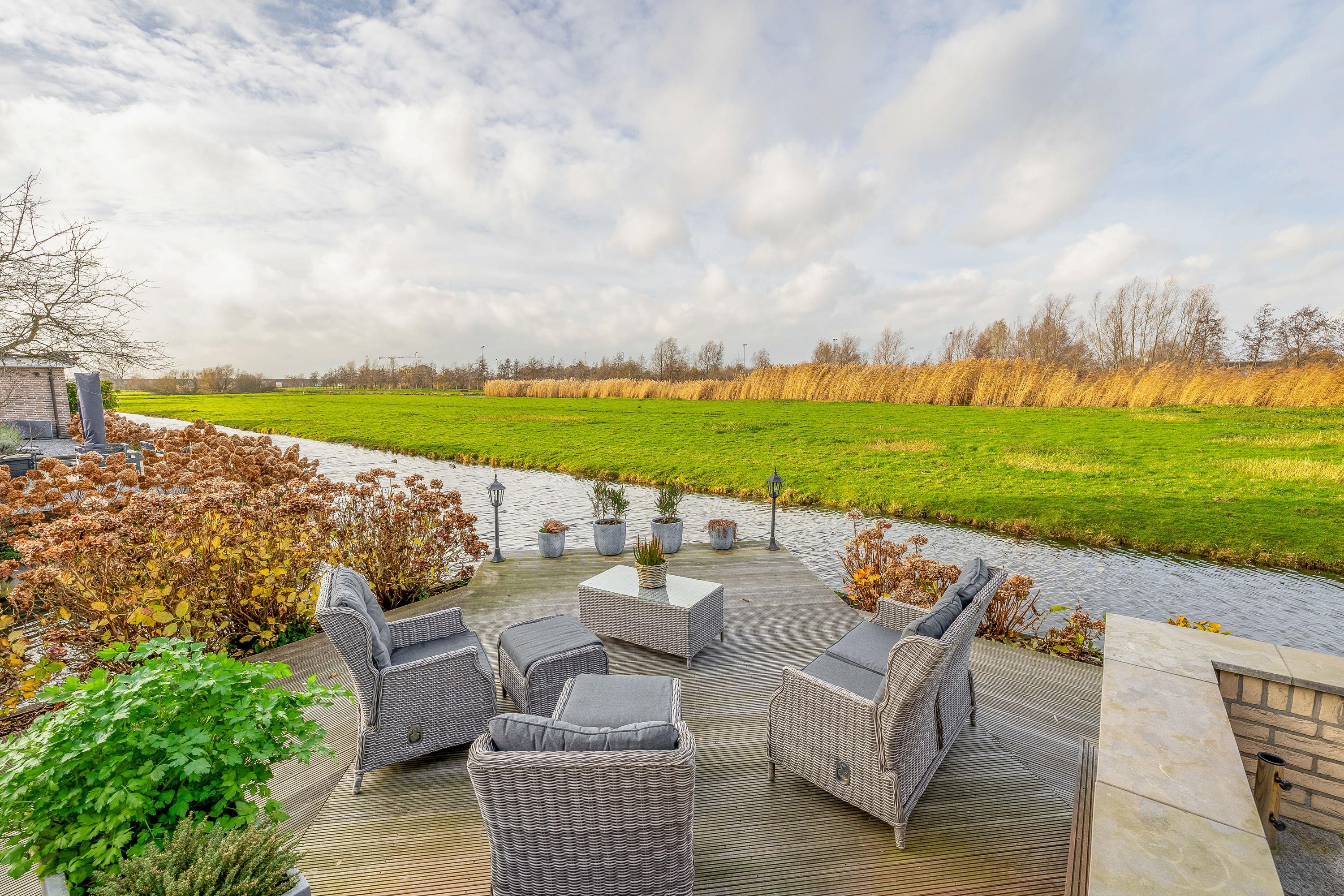 Sul retro, una nuova terrazza in legno direttamente sull’acqua offre uno spazio privato per rilassarsi o ricevere amici, con vista panoramica sulla campagna. Diversi posti auto sono disponibili lungo il vialetto, con colonnina di ricarica per auto elettriche e un comodo ripostiglio che completano una sensazione di praticità progettuale. Villa unifamiliare Gouda coniuga la serenità della vita rurale con i servizi culturali e lo storico fascino di Gouda a pochi minuti di distanza, garantendo spazio reale per famiglie o chi desidera una casa flessibile e pronta per il futuro. Una villa di lusso in vendita a Gouda dove spazio, luce e qualità raffinata si incontrano.