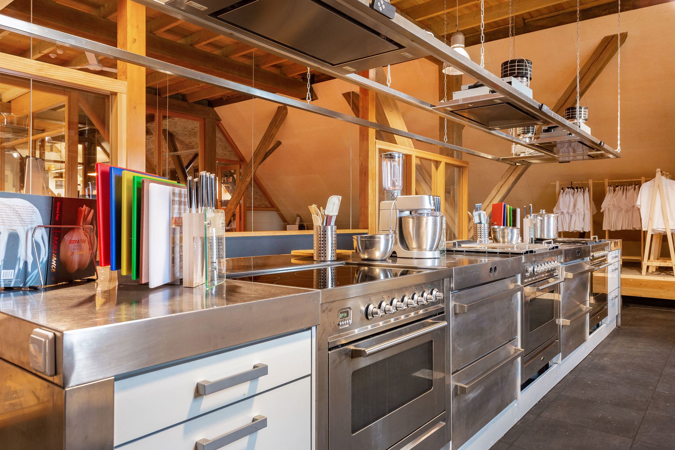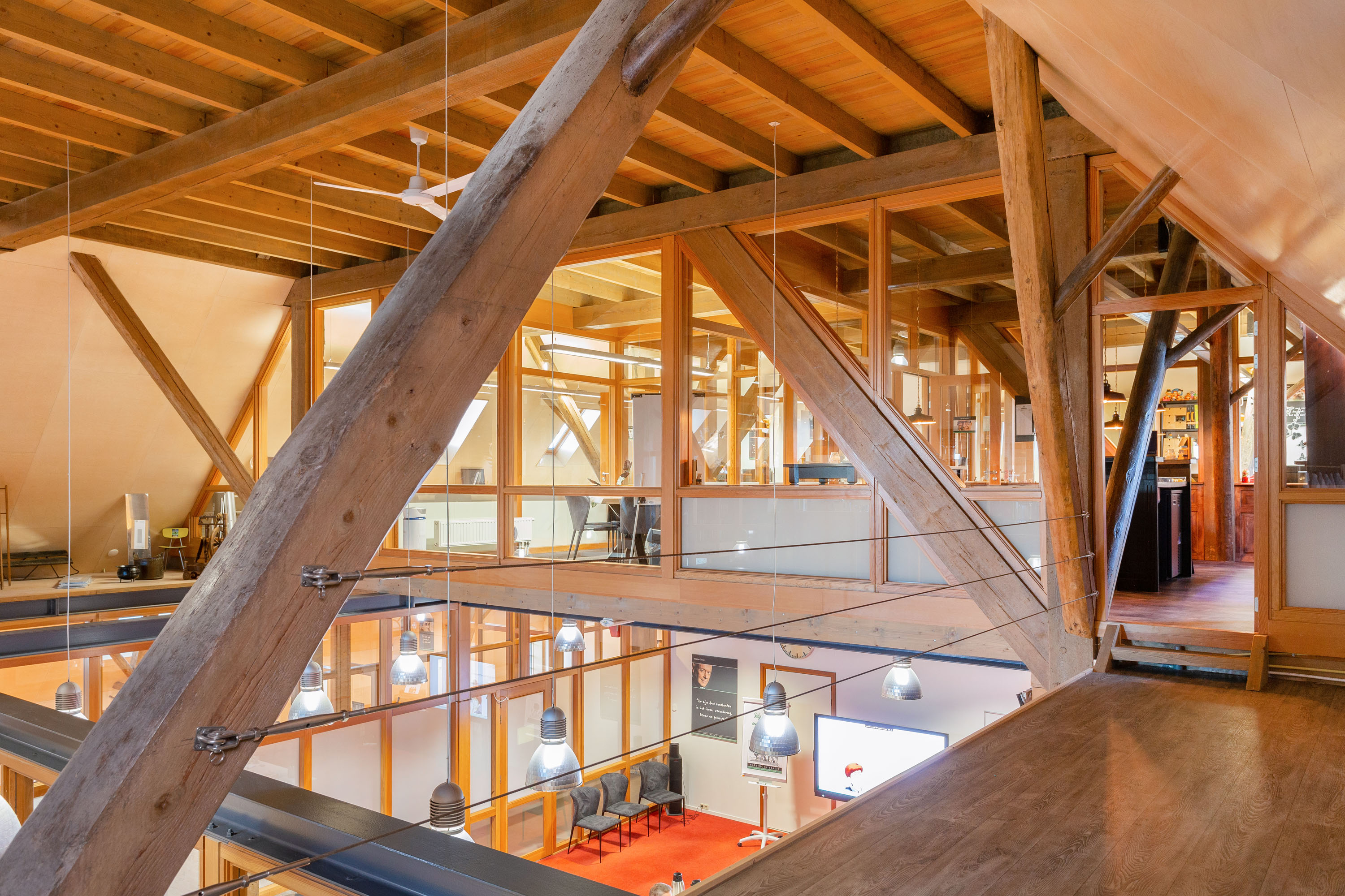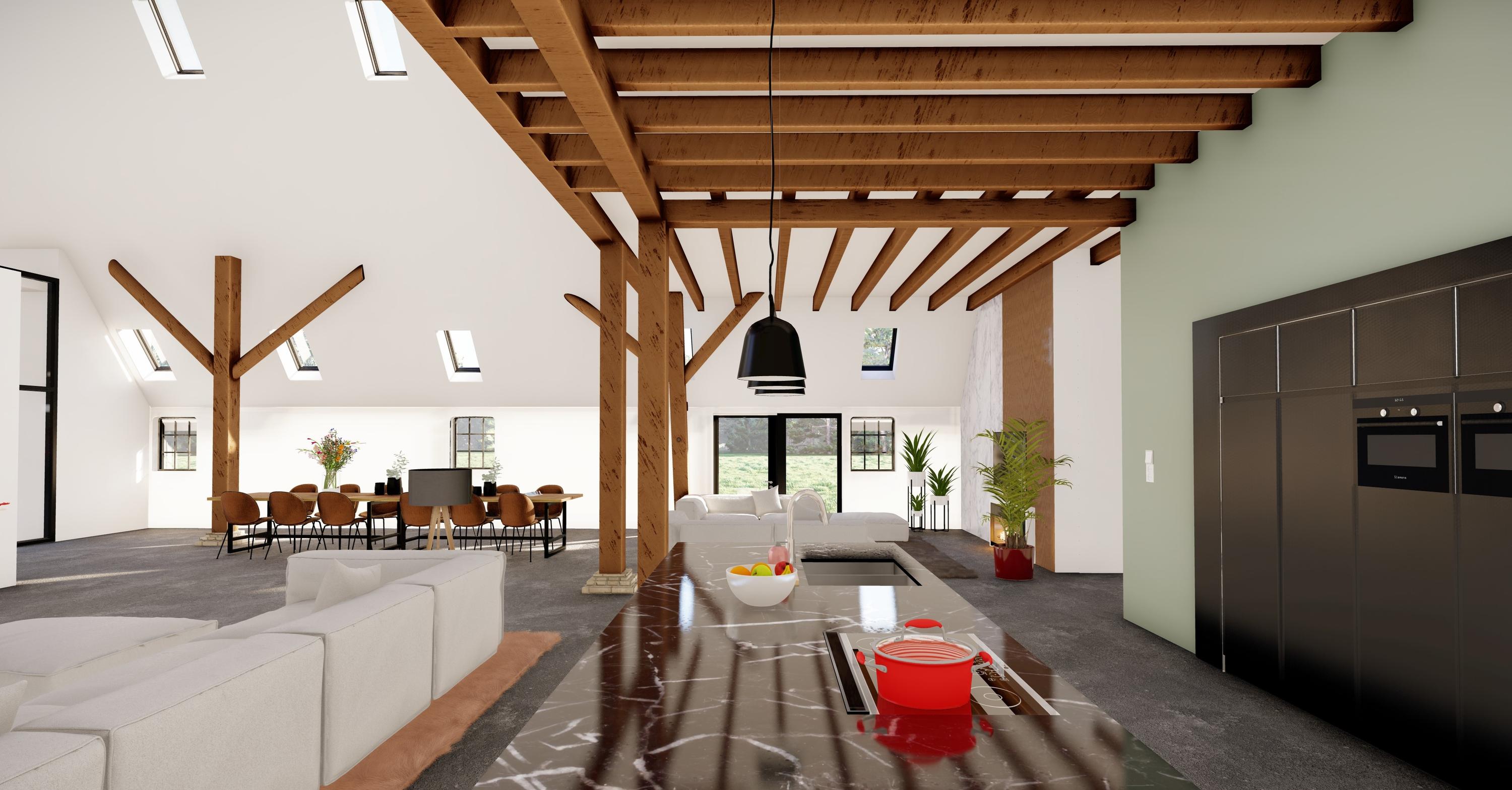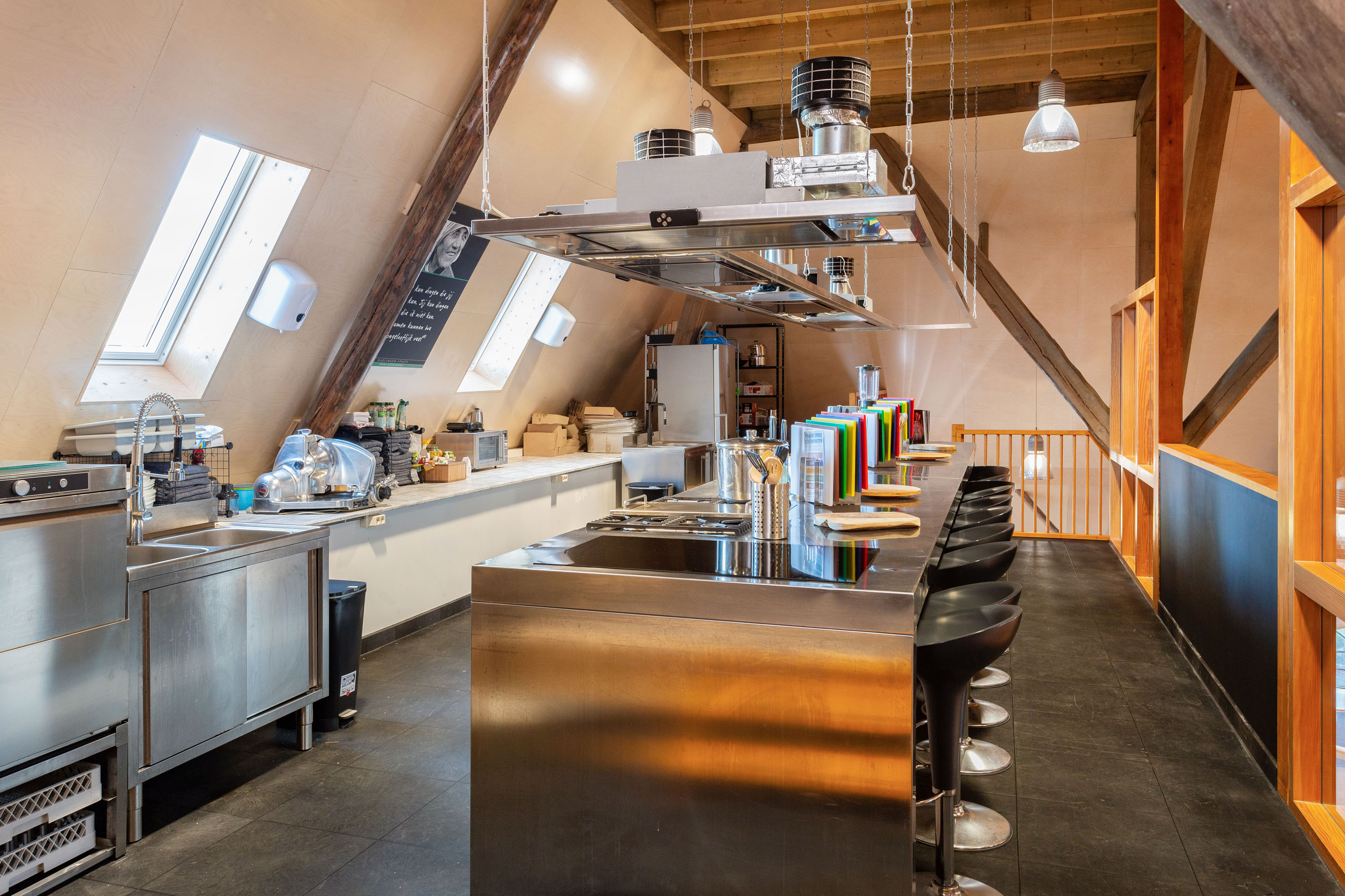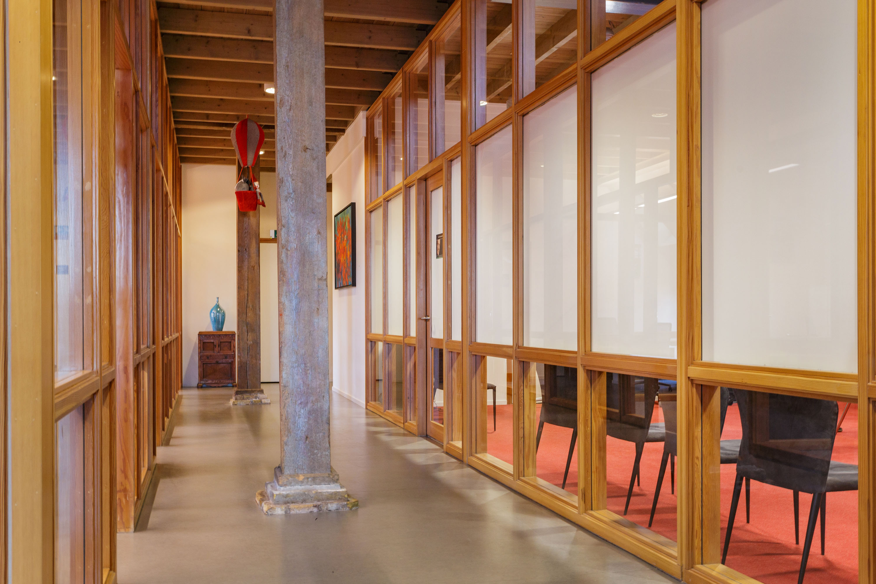 Collegato da una veranda vetrata, il fienile adiacente ospita spazi ufficio flessibili, un ampio salone multifunzionale valorizzato dalle capriate originali, uno studio di cucina professionale, un bar e zone intrattenimento. Al piano superiore, ambienti illuminati da lucernari offrono riservatezza e luce naturale, ciascuno con scala indipendente e ampio spazio contenitivo. Il piano inferiore del fienile può essere trasformato in un’abitazione completamente indipendente, se desiderato.
