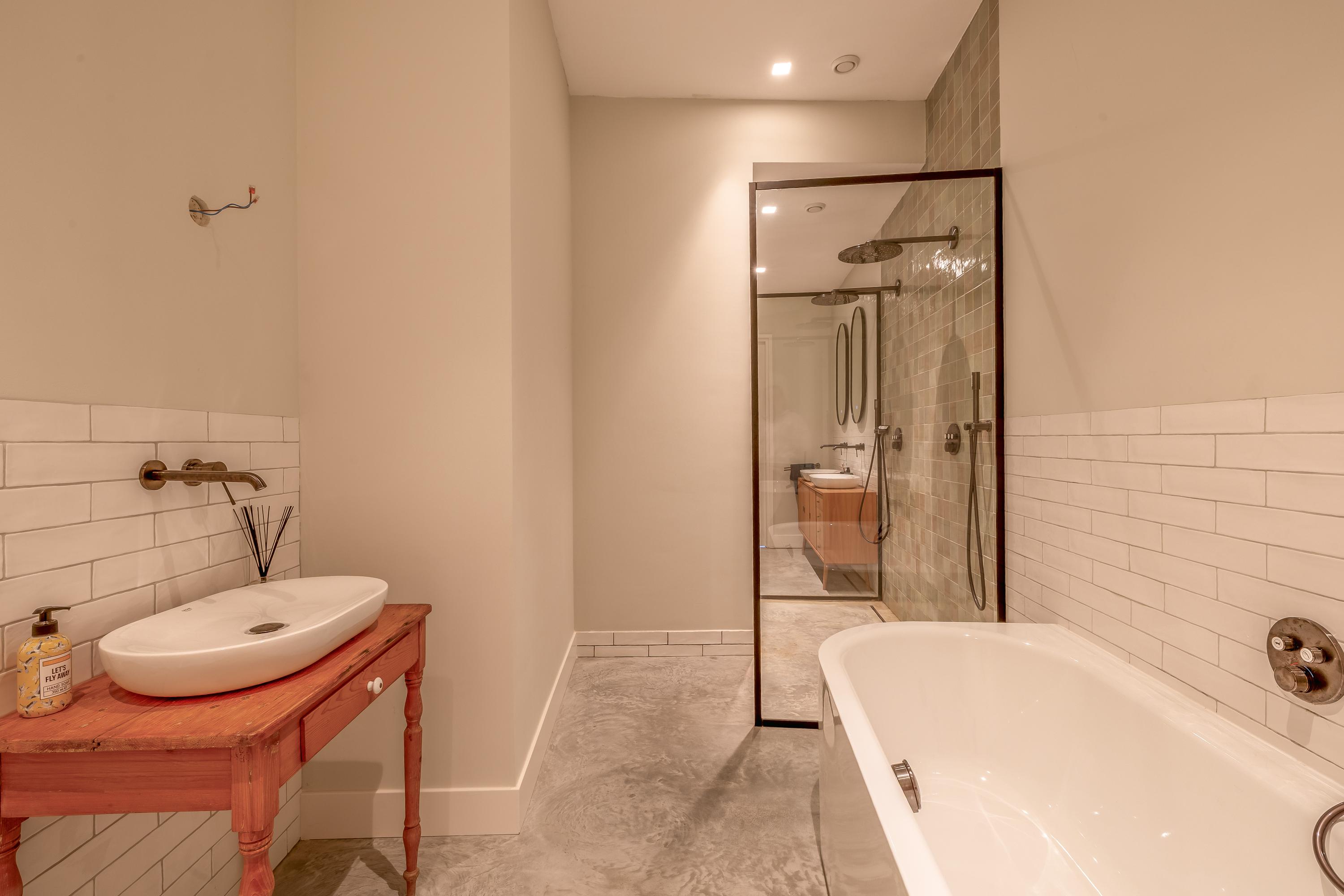 All three bedrooms are very spacious and benefit from excellent natural light through the floor-to-ceiling windows. Each room offers views of the private garden. One of the bedrooms has direct access to the garden through French doors.