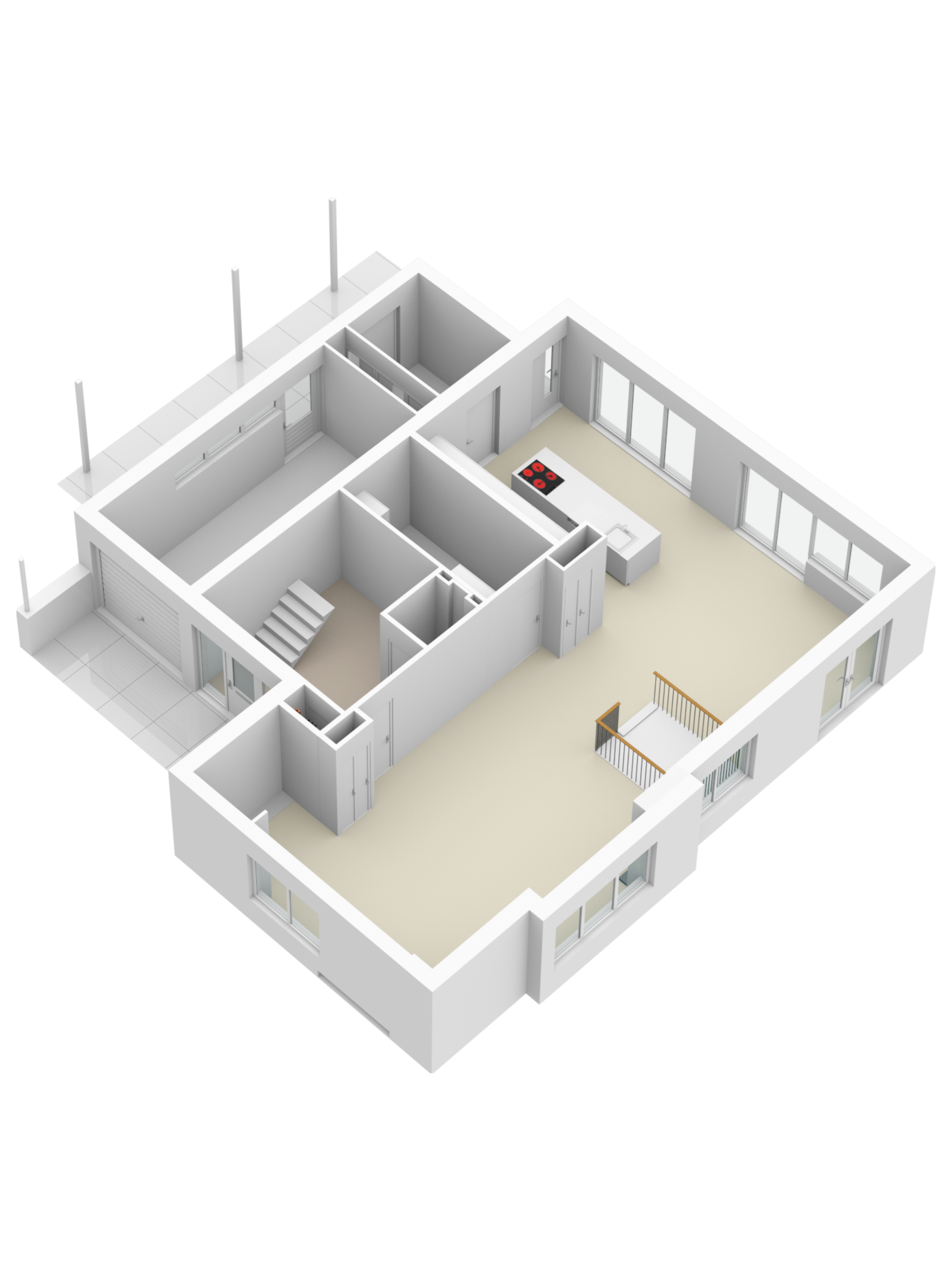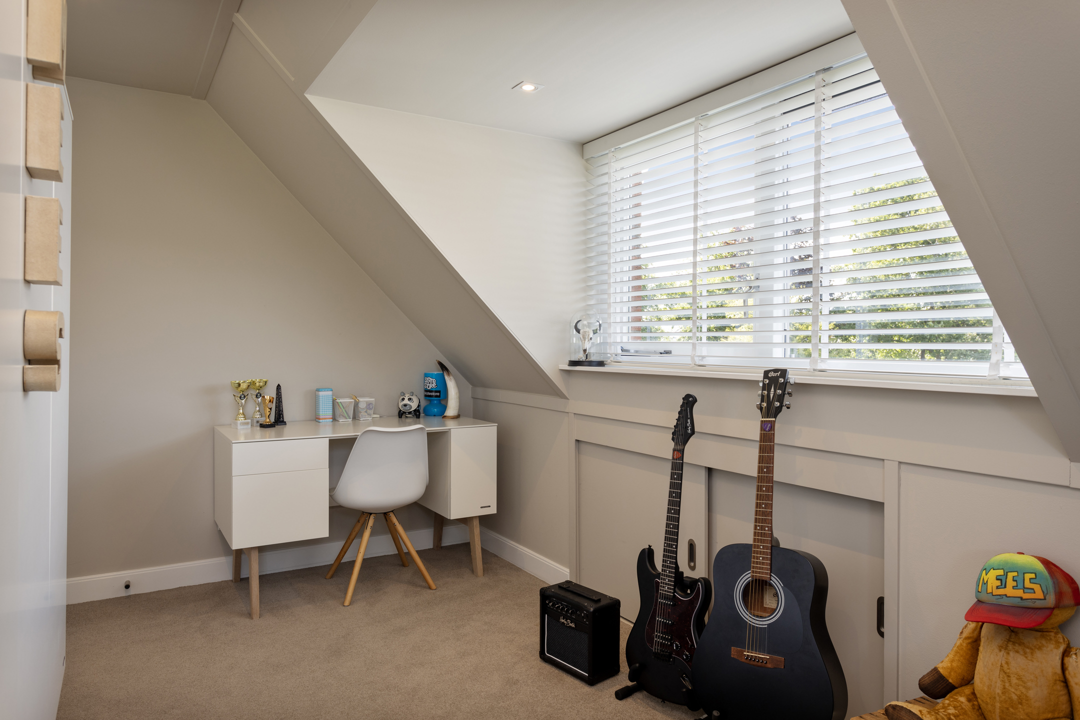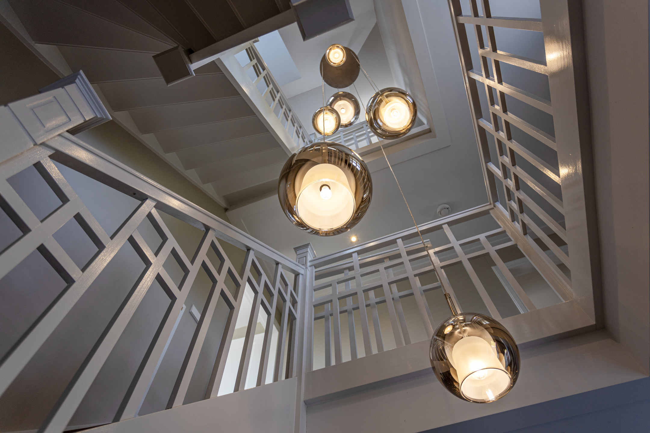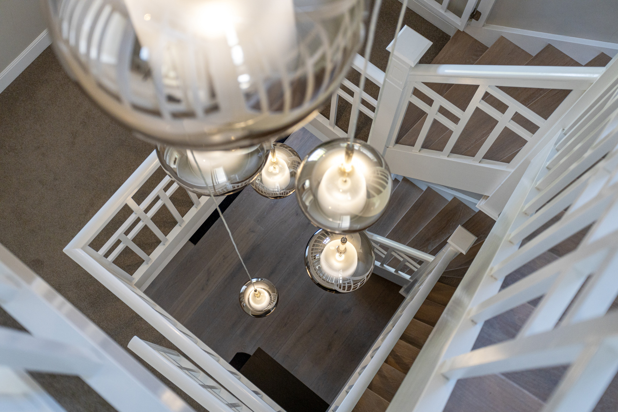 L’ingresso svela un luminoso atrio con una scala di forte impatto, che conduce a un ampio soggiorno dominato da grandi finestre, pavimenti in rovere e accesso alla terrazza esposta a sud. L’adiacente cucina presenta finiture moderne, isola centrale, spazi generosi per ospitare amici e familiari, e un pratico collegamento con la zona di servizio. Un seminterrato polifunzionale, sei camere distribuite sui piani superiori, due bagni eleganti e una soffitta dedicata a ripostiglio definiscono il ritmo pratico e funzionale della casa.