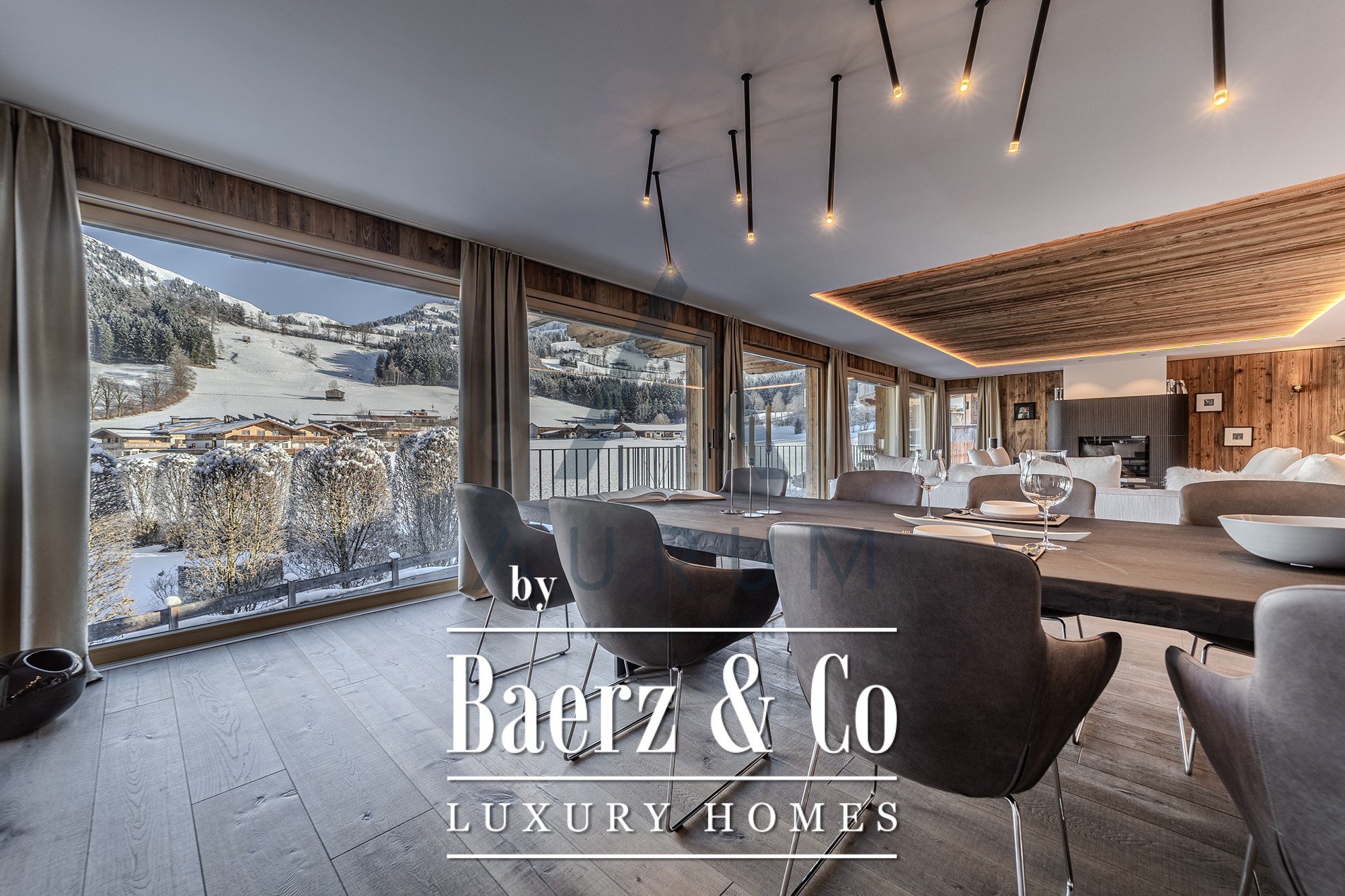 Questo appartamento con giardino a Kitzbühel presenta 279 m² di spazi abitativi sapientemente progettati ai piedi del Bichlalm, incorniciati da luce alpina e panorami montani. La zona giorno, pranzo e cucina open space è impreziosita da un camino e finiture di alta gamma in ogni dettaglio; ampie vetrate collegano gli interni al giardino e alla terrazza, invitando il paesaggio e il ritmo sereno nella vita quotidiana.