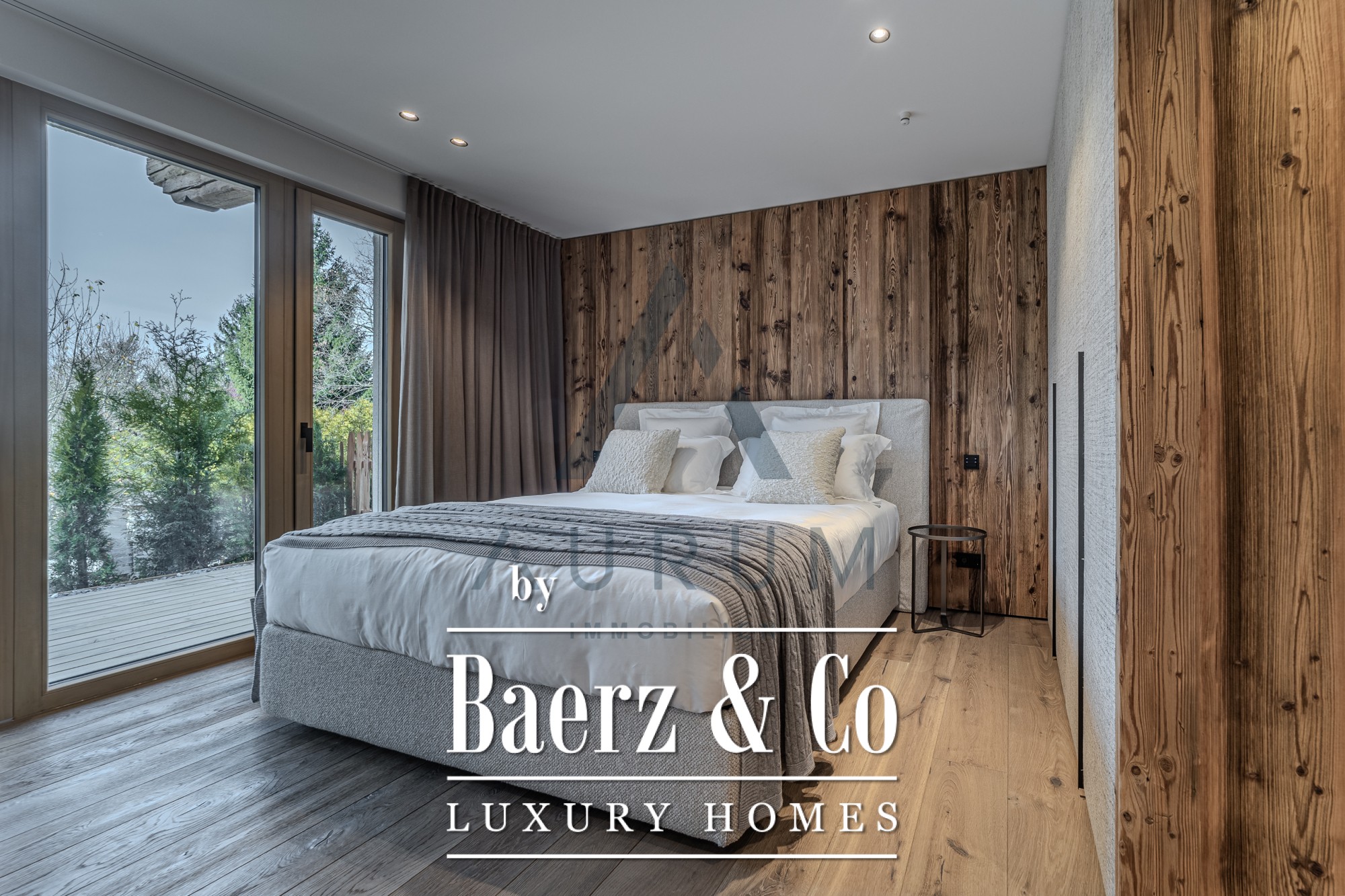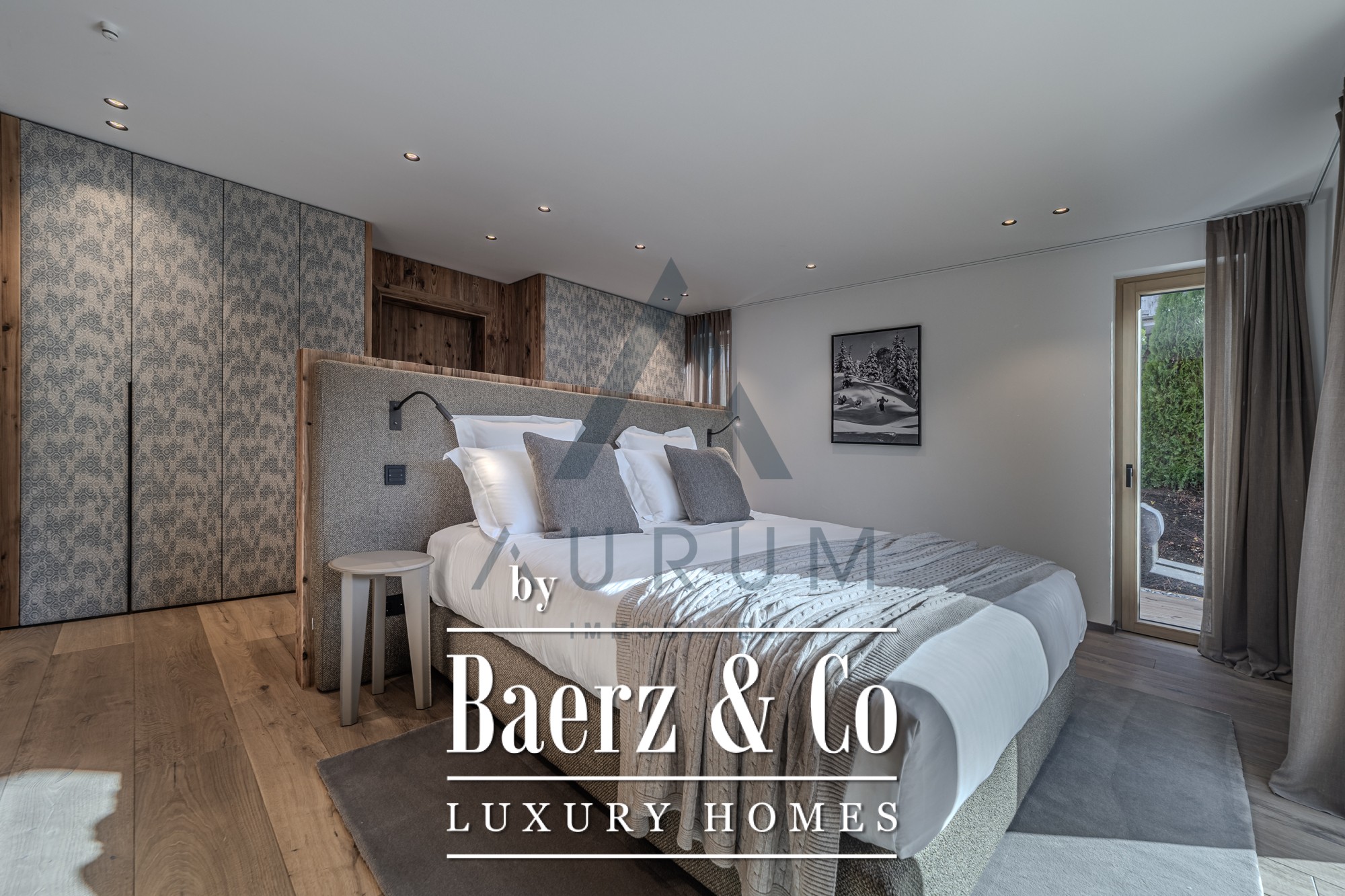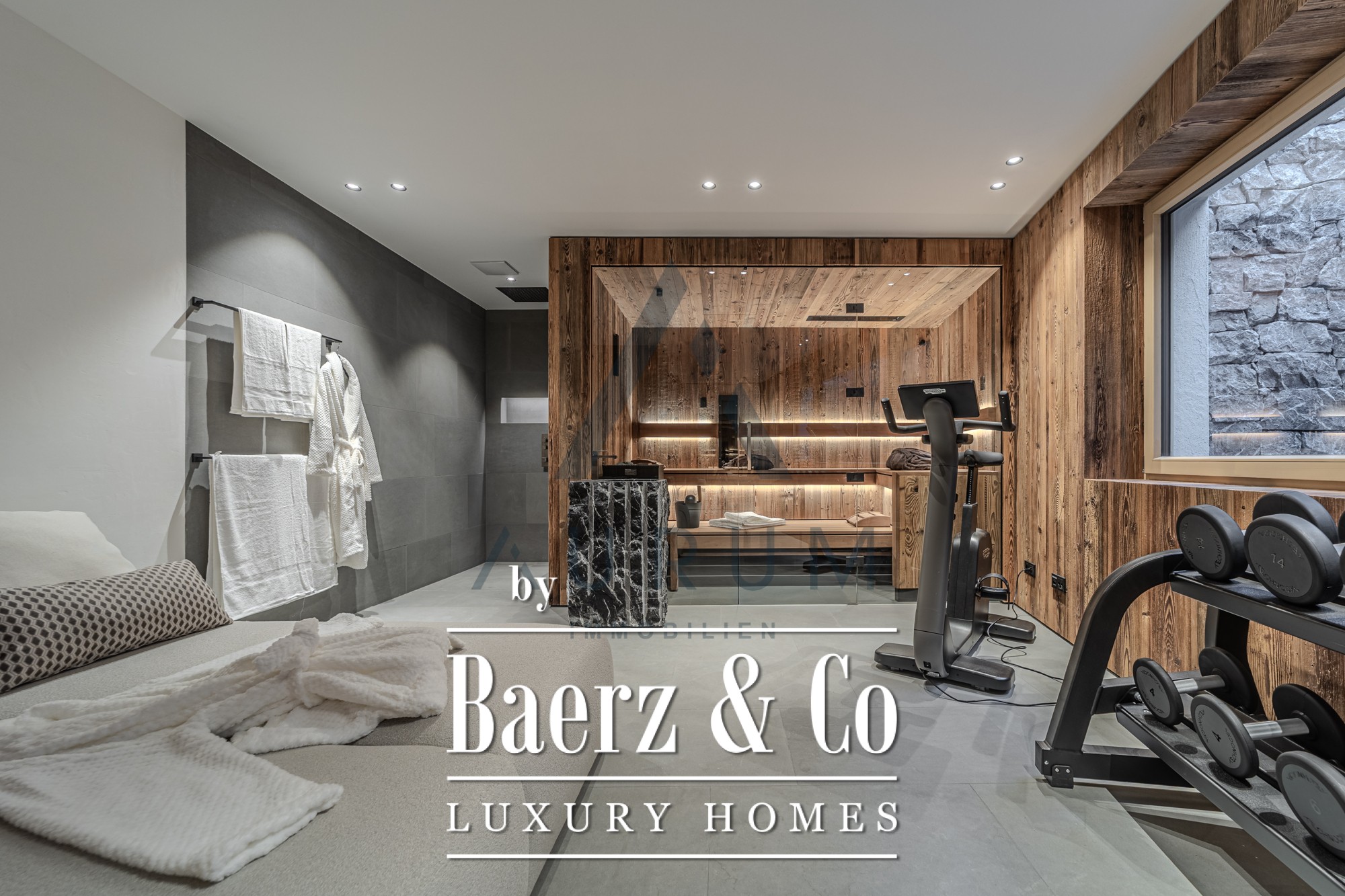 La suite padronale dispone di un ampio bagno en suite e una cabina armadio, mentre le altre due camere sono dotate di servizi privati, garantendo privacy e comfort a tutti i residenti. Una scala scultorea conduce a una tranquilla area wellness con sauna, palestra, pozzo di luce e accesso diretto a un garage privato sotterraneo con tre posti auto.