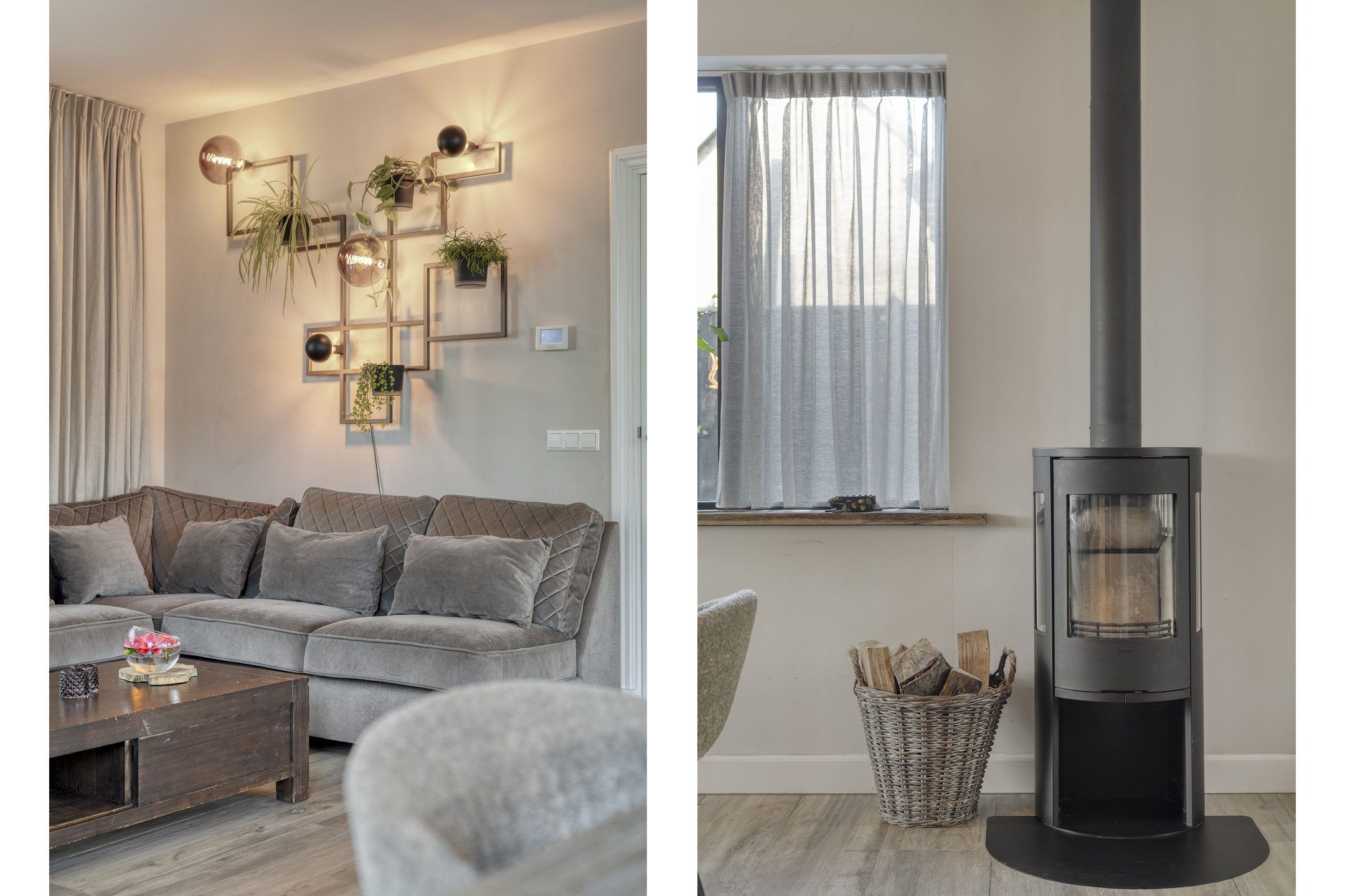 L’abitazione raggiunge la classe energetica A+++, grazie a 44 pannelli solari, isolamento avanzato, pompa di calore aria-aria, vetri HR++ e riscaldamento a pavimento in tutta la casa. La luce naturale inonda la zona giorno open space, dove il camino a legna rappresenta il cuore dell’ambiente e si integra perfettamente con la cucina moderna e la lussuosa veranda. Una suite padronale con bagno privato occupa il piano terra, mentre le ulteriori camere da letto e il secondo bagno si trovano al piano superiore, tutti illuminati da un’ampia finestra nella mansarda.