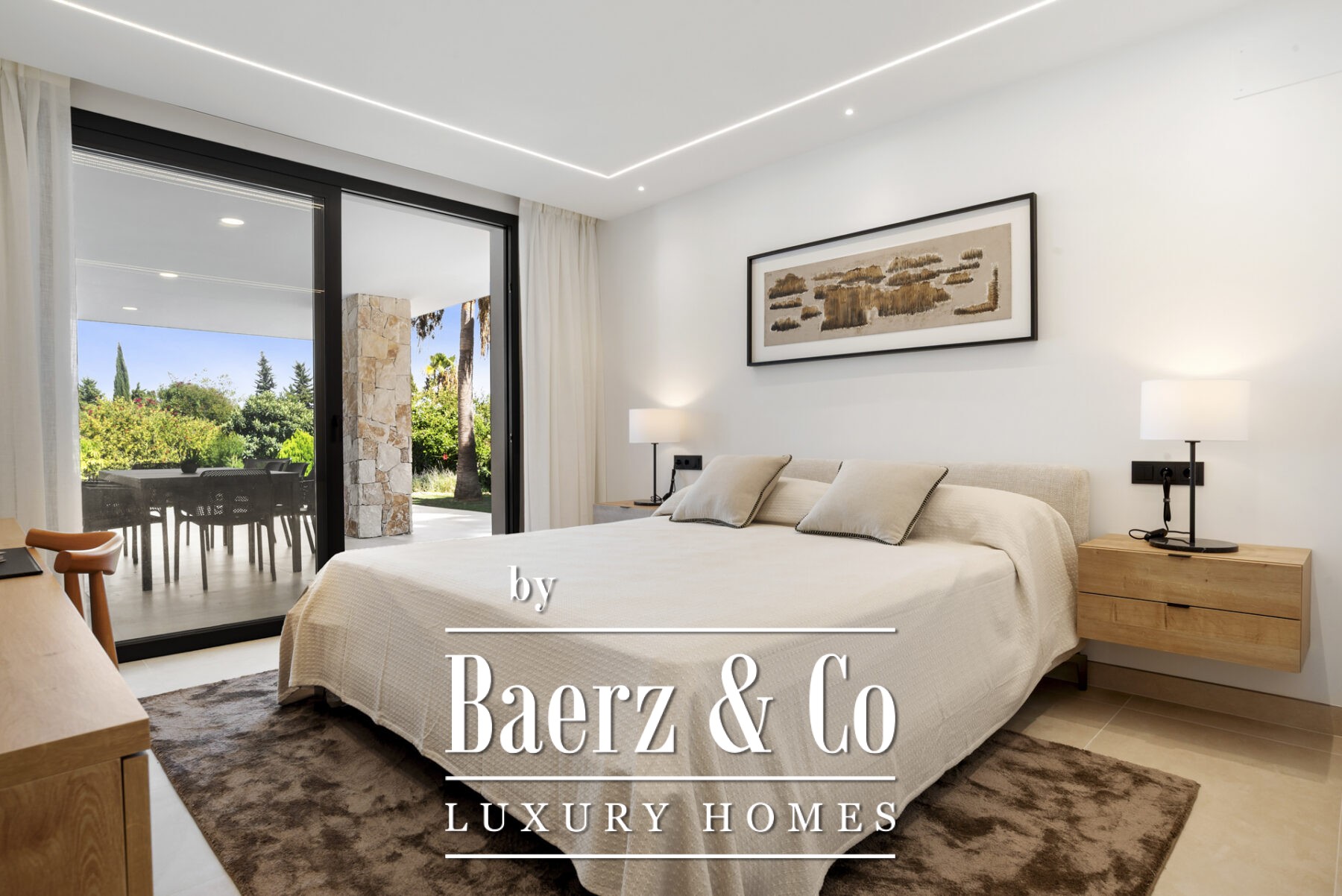 Caratteristiche includono aria condizionata, riscaldamento a pavimento, solarium, sistema d’allarme avanzato e vicinanza sia al campo da golf sia alla spiaggia. Qui, la tranquillità si unisce al vibrante stile di vita della Costa del Sol.