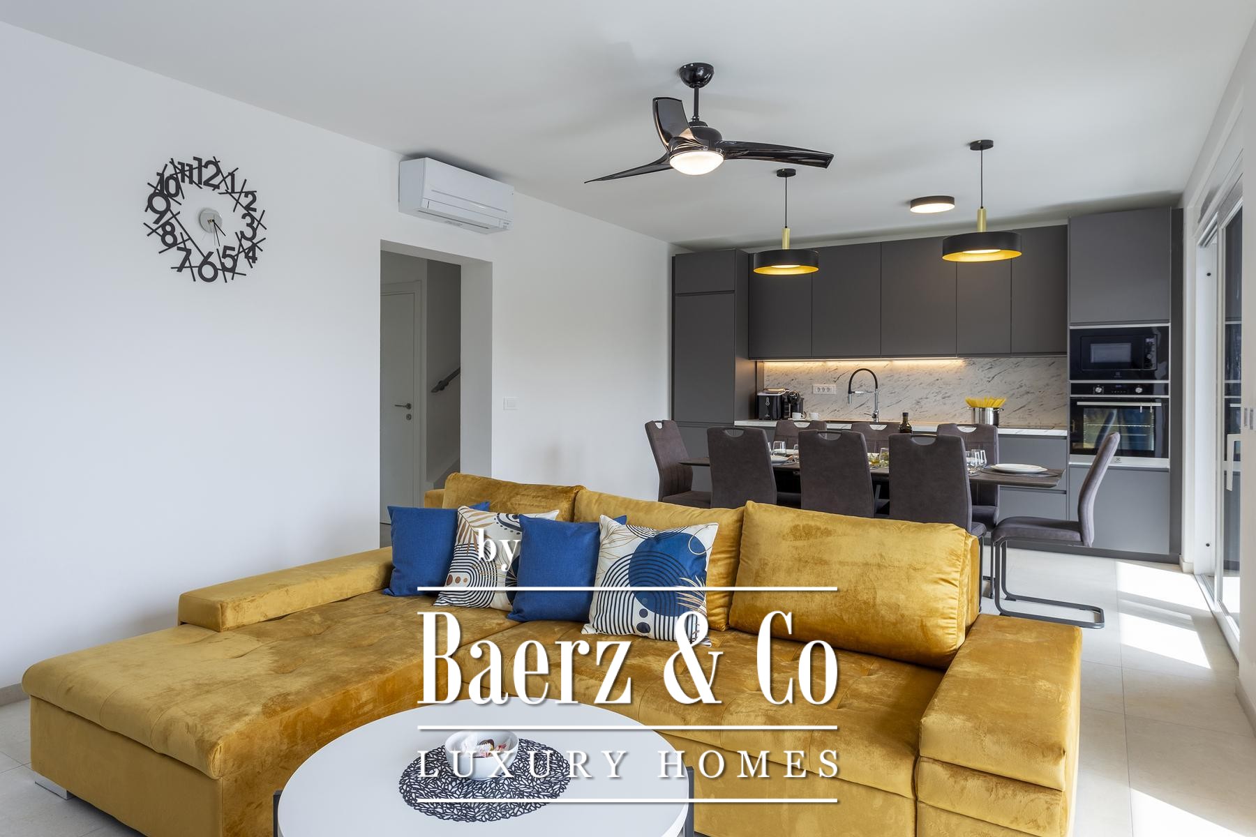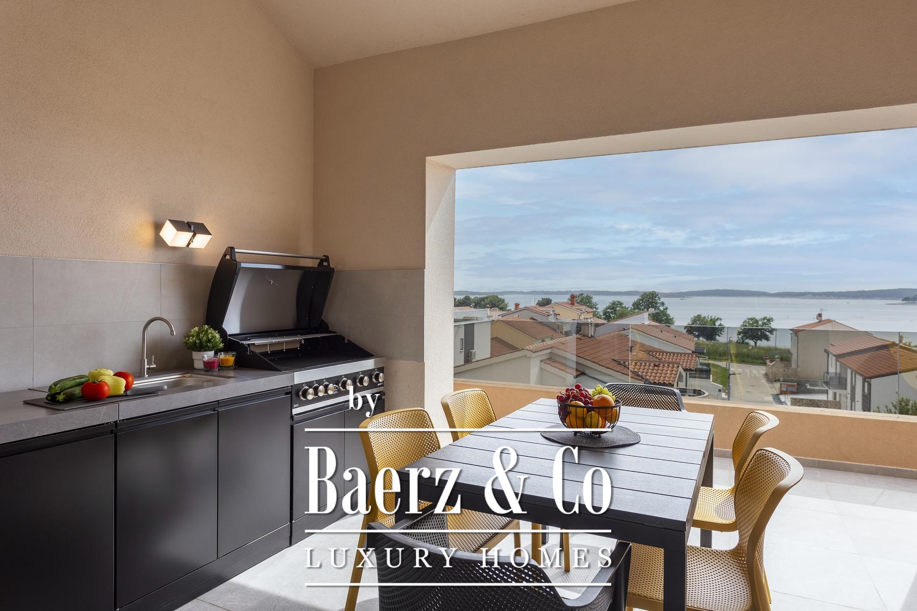 Dettagli come aria condizionata in ogni stanza, infissi in PVC con zanzariere e tapparelle elettriche, oltre ai pannelli solari, testimoniano un vero impegno per comfort ed efficienza. Il giardino paesaggistico, arricchito da ulivi, sistema di irrigazione e vasca idromassaggio, crea spazi esterni tranquilli, mentre due posti auto, una stazione di ricarica per veicoli elettrici e la possibilità di ampliamento esaltano la praticità della vita moderna. La passeggiata sul mare, il porto turistico di Medulin e la vicinanza all’Aeroporto Internazionale di Pola assicurano uno stile di vita tanto stabile quanto connesso. Questa è una villa di lusso in vendita a Medulin dove famiglia e investimento si incontrano in un’eleganza discreta.