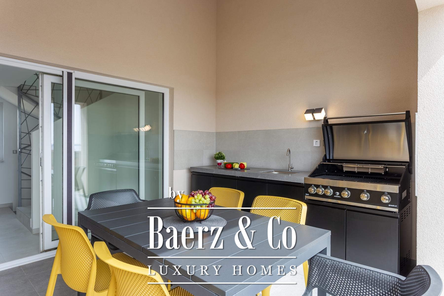 La casa a schiera contemporanea a Medulin rappresenta una residenza moderna e raffinata in una delle località balneari più ambite della Croazia. Con una superficie abitabile di 208 m² su un lotto di 350 m², la proprietà si trova a pochi passi dall’Adriatico, dove spiagge curate e un’ampia vista sul mare scandiscono il ritmo quotidiano.
