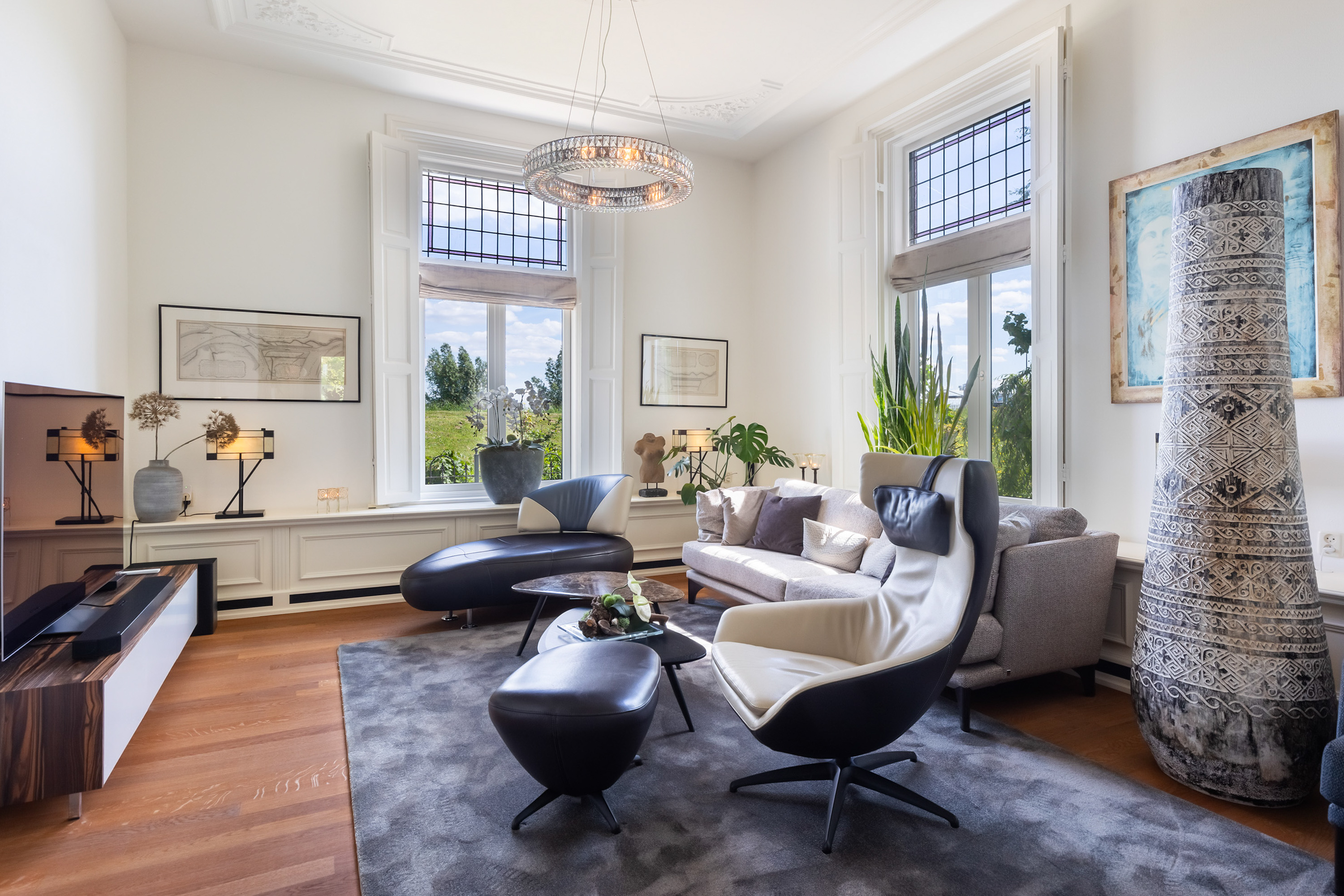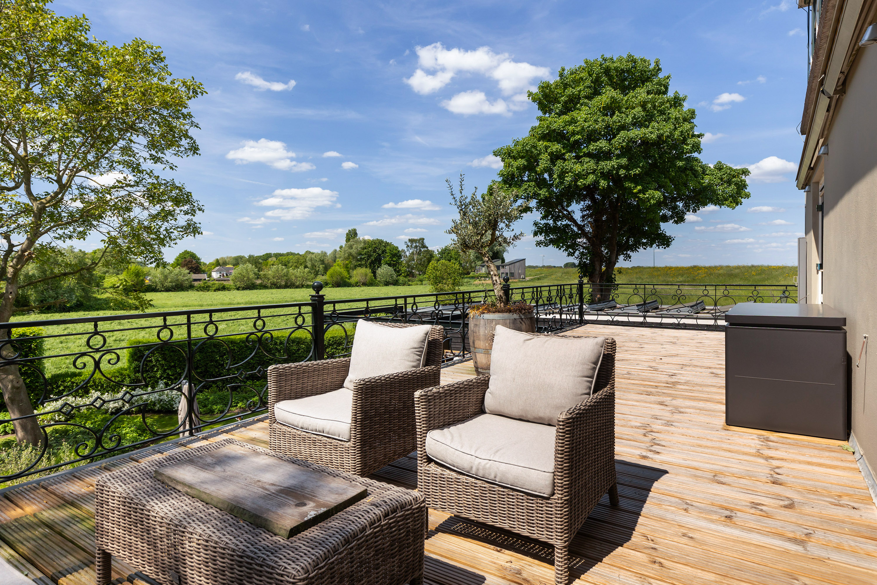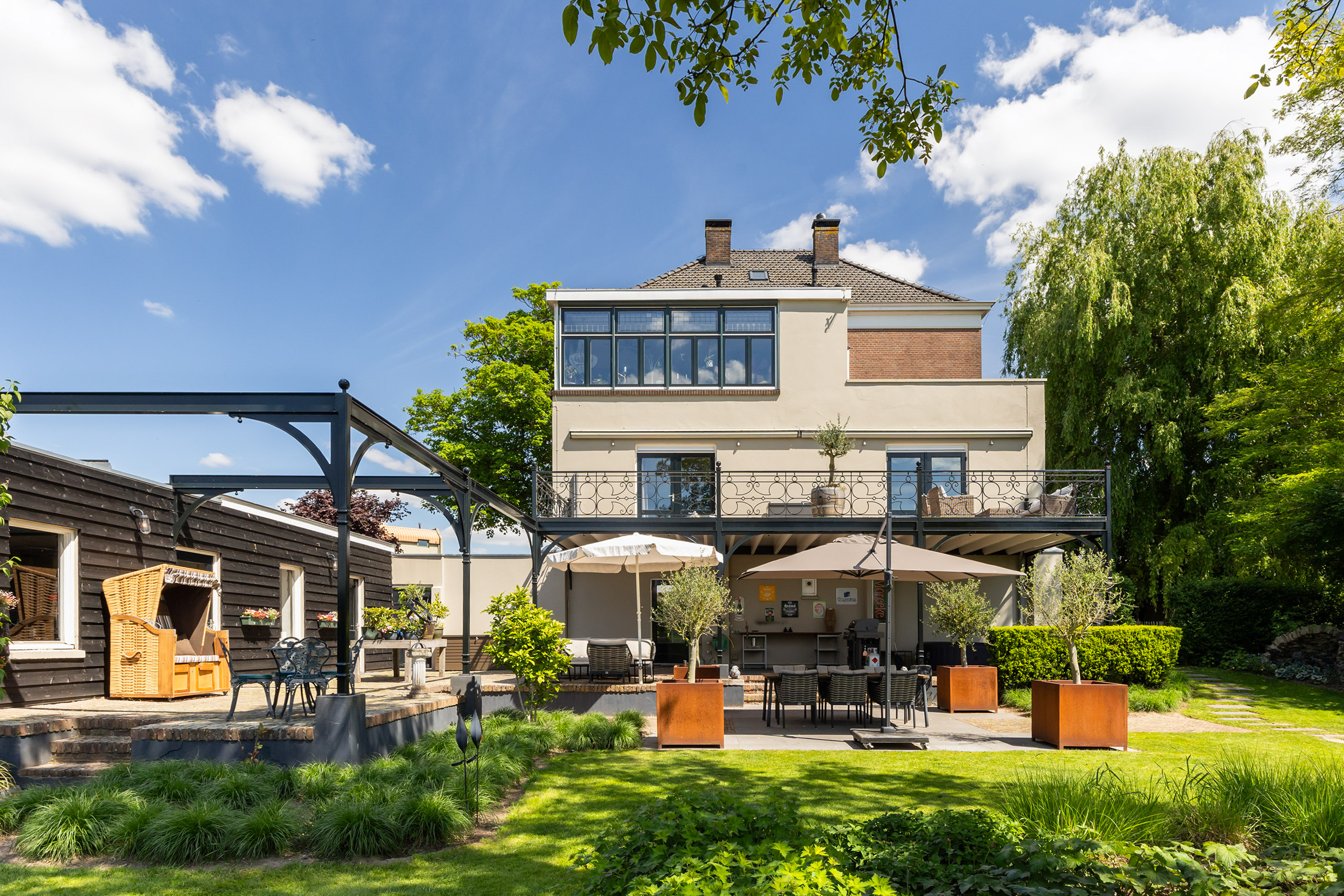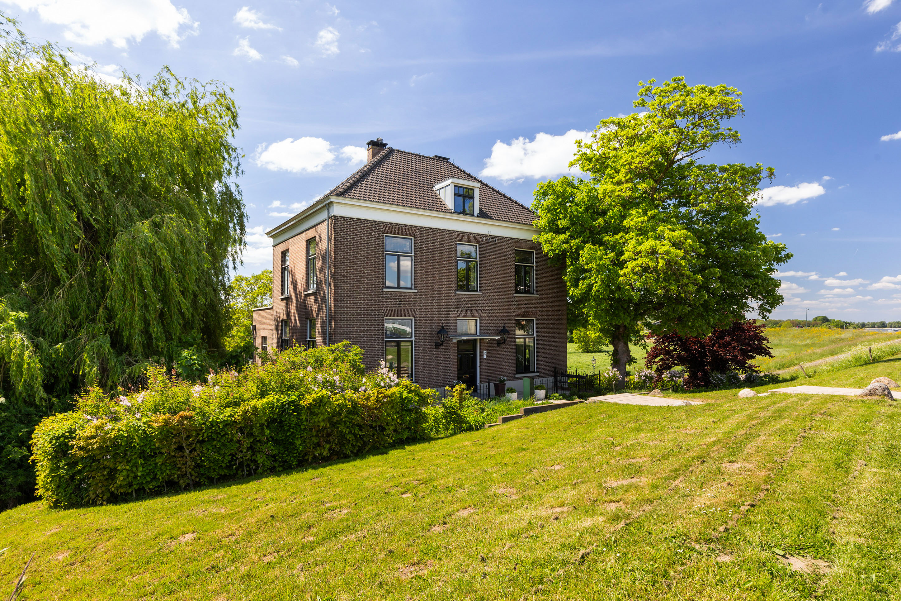 Villa Millingen aan de Rijn si trova ai margini della riserva naturale protetta Gelderse Poort, su un'altura che domina la confluenza dei fiumi Reno e Waal. Questa villa, originariamente residenza del gestore della tenuta, è stata meticolosamente restaurata per integrare il fascino storico con un lusso contemporaneo discreto. La proprietà si estende su un terreno completamente recintato di 1.334 m², dove giardini paesaggistici regalano un'intimità stratificata, serenità e viste panoramiche sull’acqua e sulla campagna circostante.