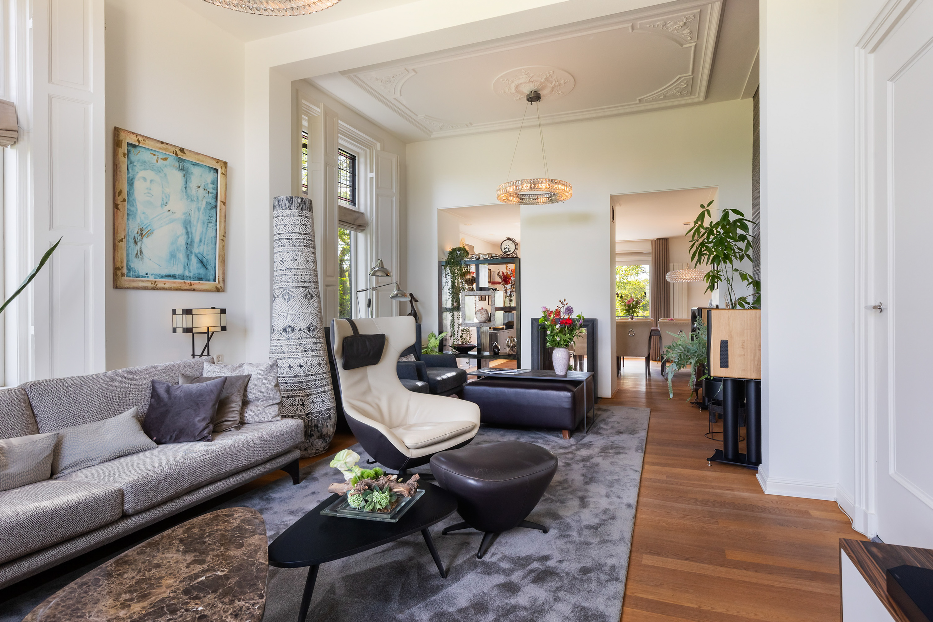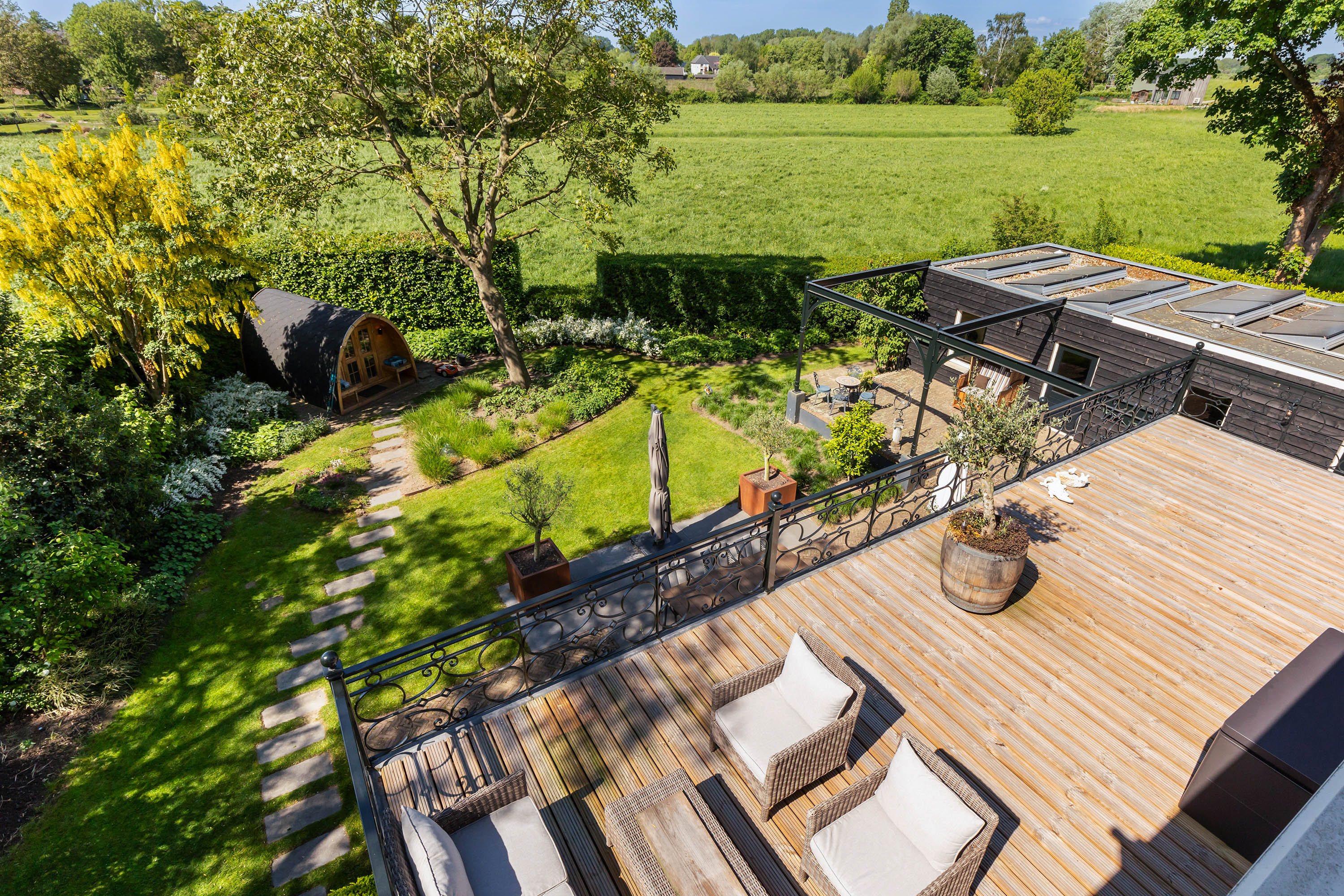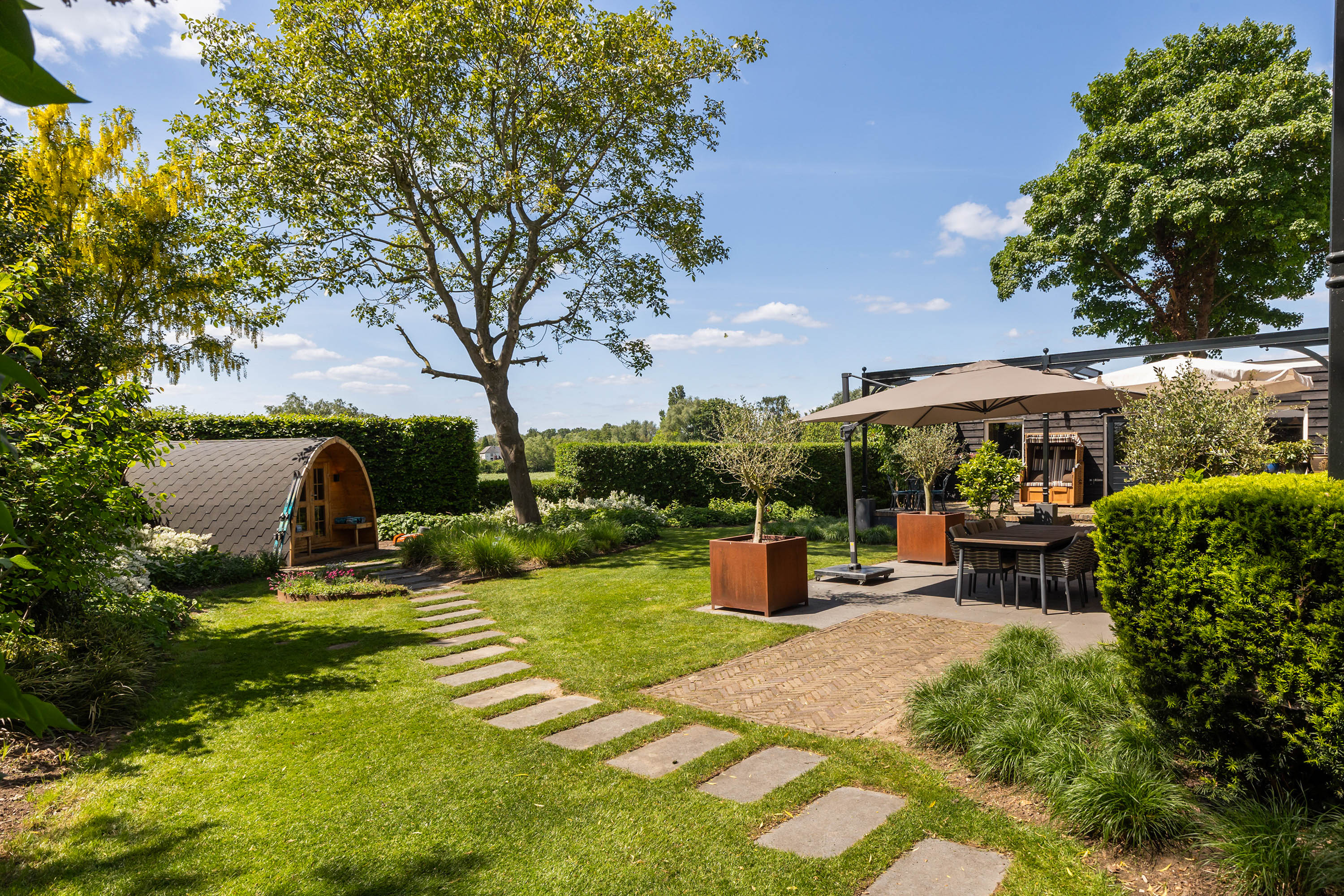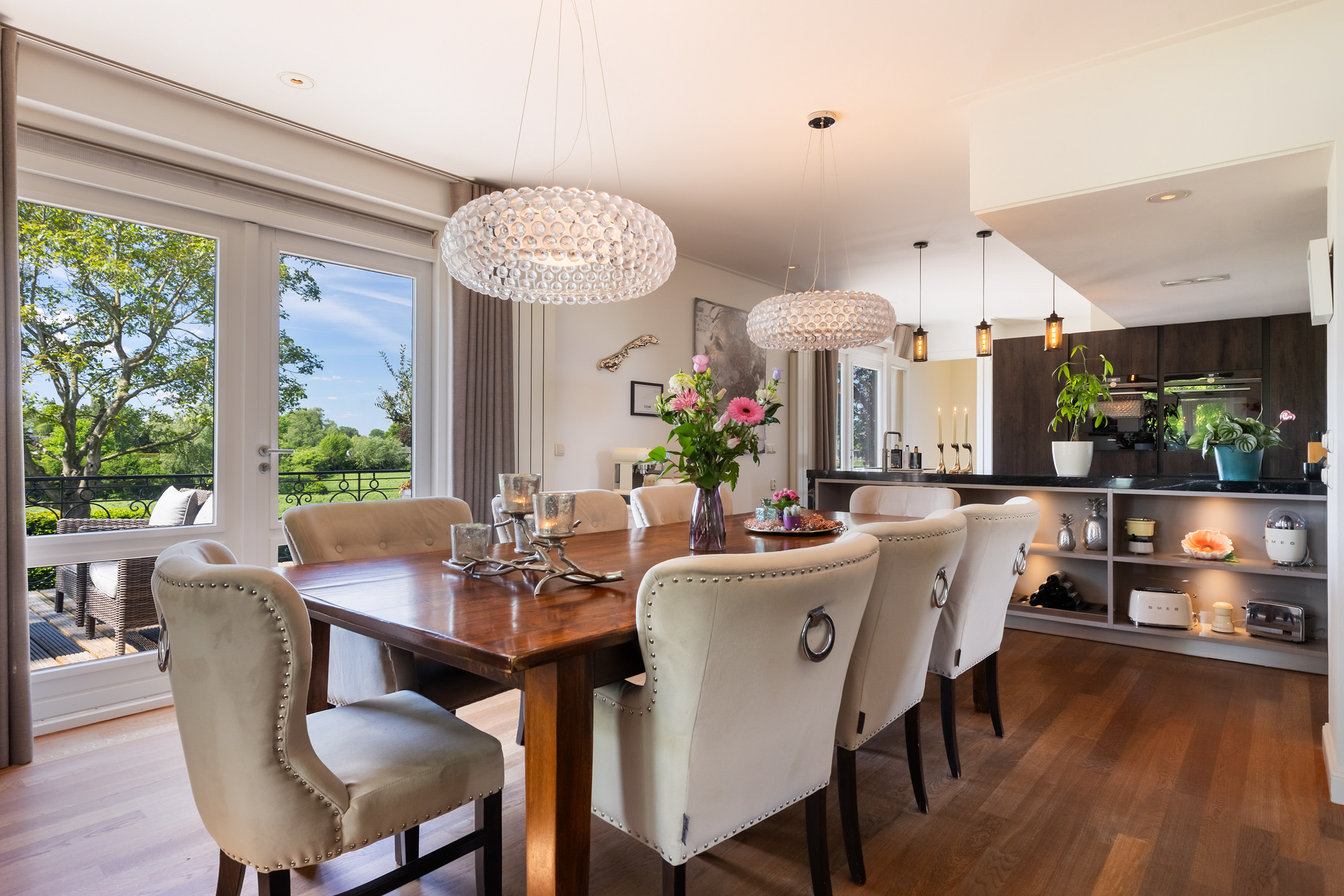 Villa Millingen aan de Rijn si trova ai margini della riserva naturale protetta Gelderse Poort, su un'altura che domina la confluenza dei fiumi Reno e Waal. Questa villa, originariamente residenza del gestore della tenuta, è stata meticolosamente restaurata per integrare il fascino storico con un lusso contemporaneo discreto. La proprietà si estende su un terreno completamente recintato di 1.334 m², dove giardini paesaggistici regalano un'intimità stratificata, serenità e viste panoramiche sull’acqua e sulla campagna circostante.