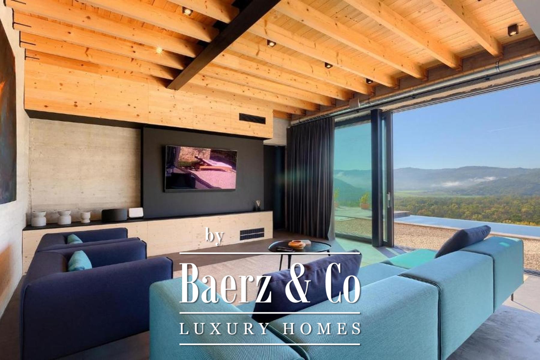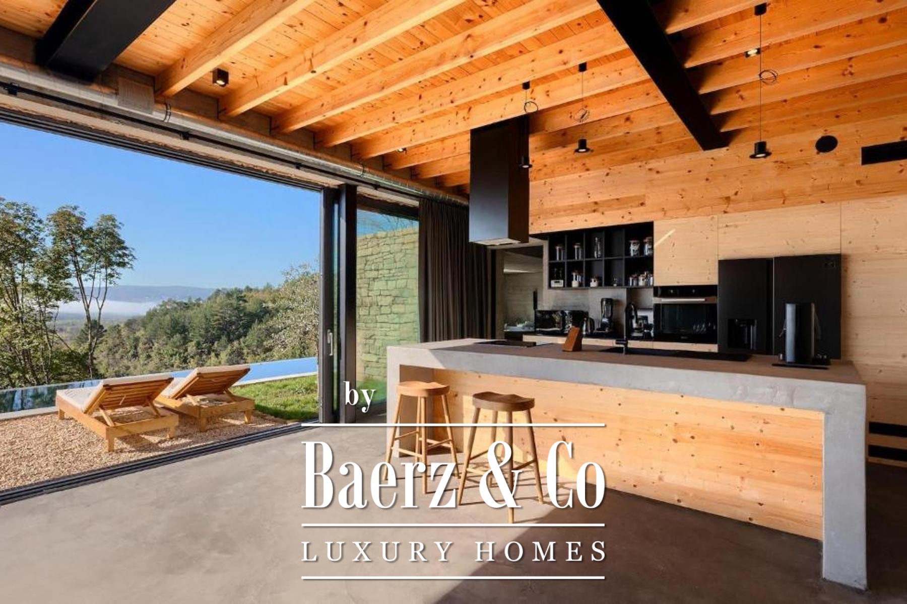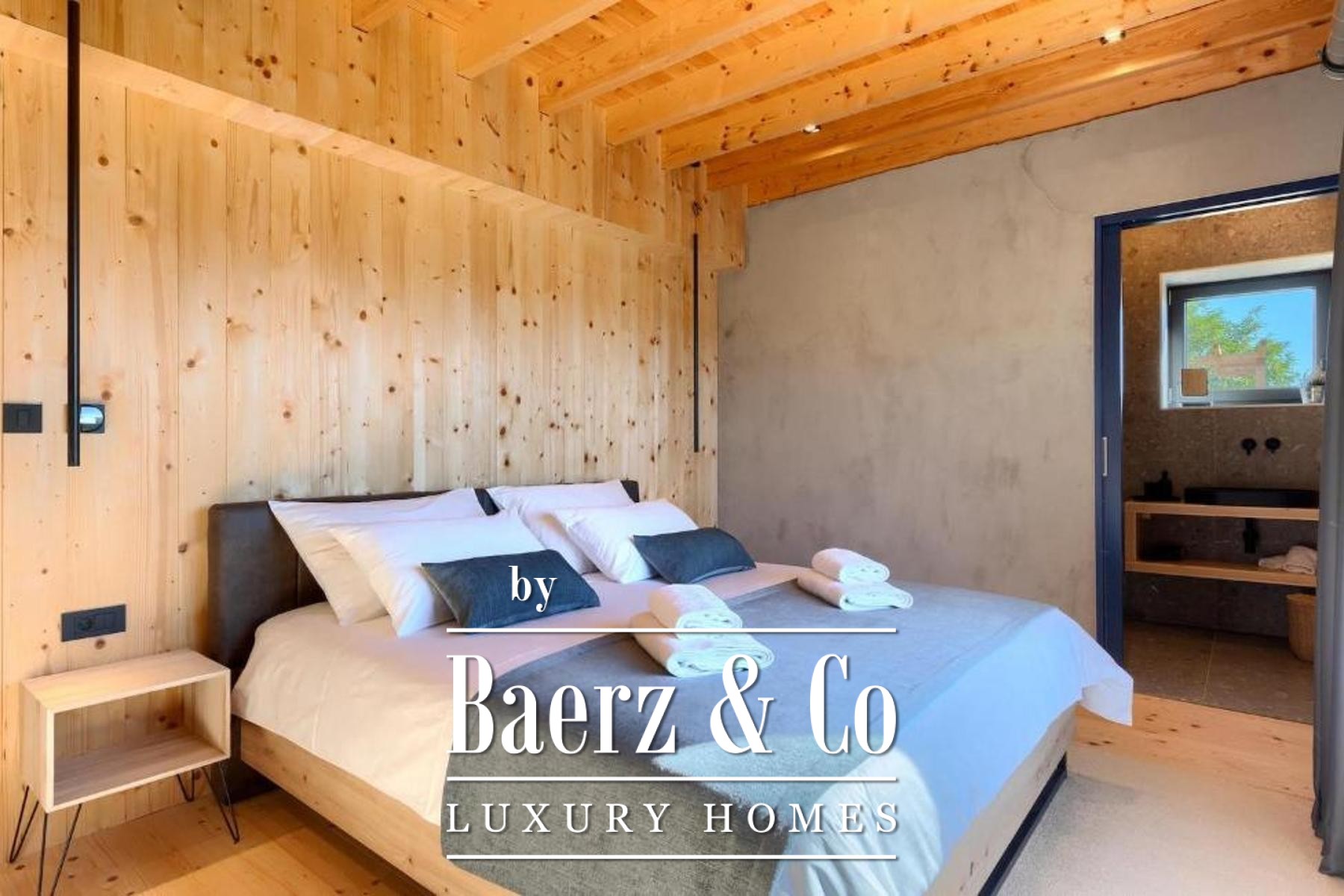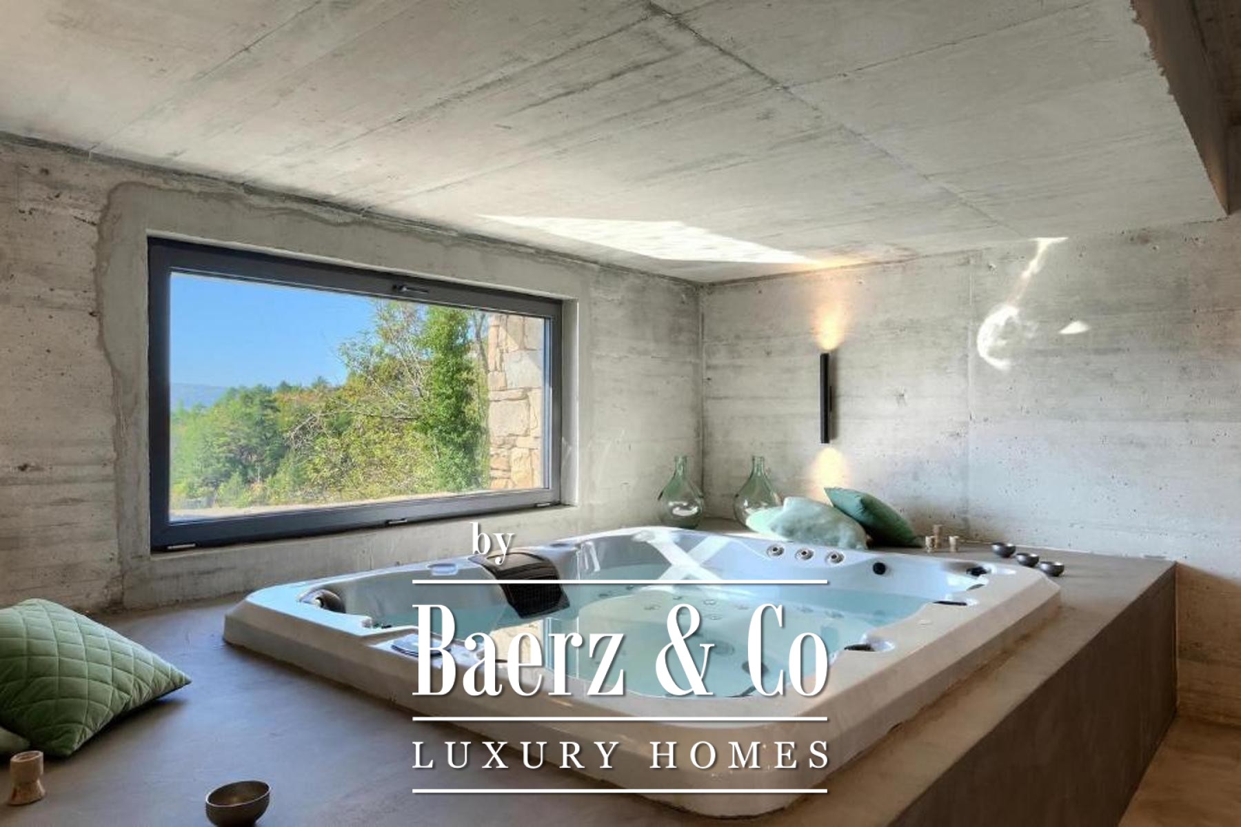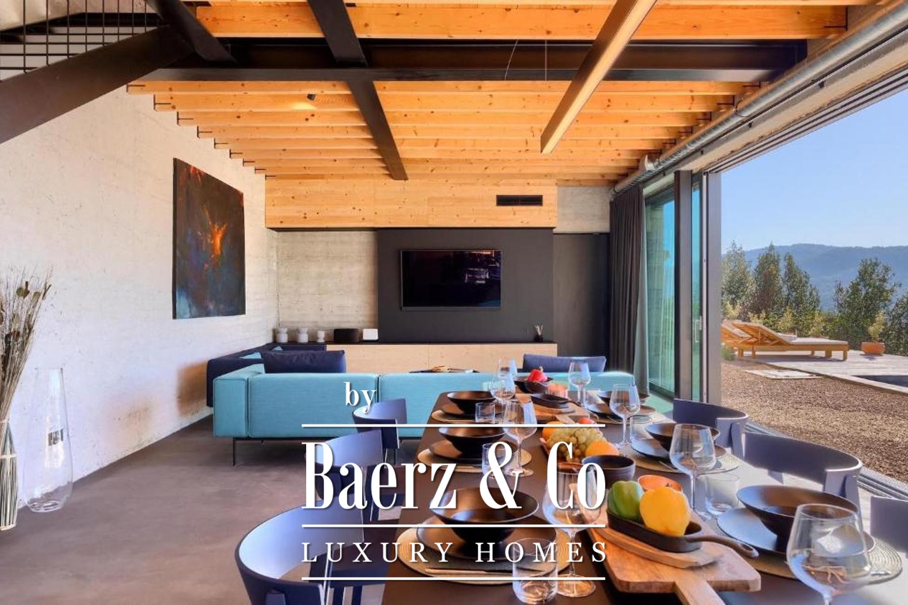 L'intento architettonico è evidente in ogni dettaglio, con l'uso di pietra e legno che ancora la residenza all'ambiente circostante. Grandi pareti vetrate accolgono la luce naturale e l'esterno, creando un dialogo costante tra spazi interni ed esterni. Il piano terra open space integra cucina, zona pranzo e soggiorno, aprendosi senza soluzione di continuità su un'ampia terrazza. Qui, una piscina infinity di 20 metri e un'area solarium dominano il paesaggio, affiancate da una zona wellness con vasca idromassaggio, sauna e doccia.