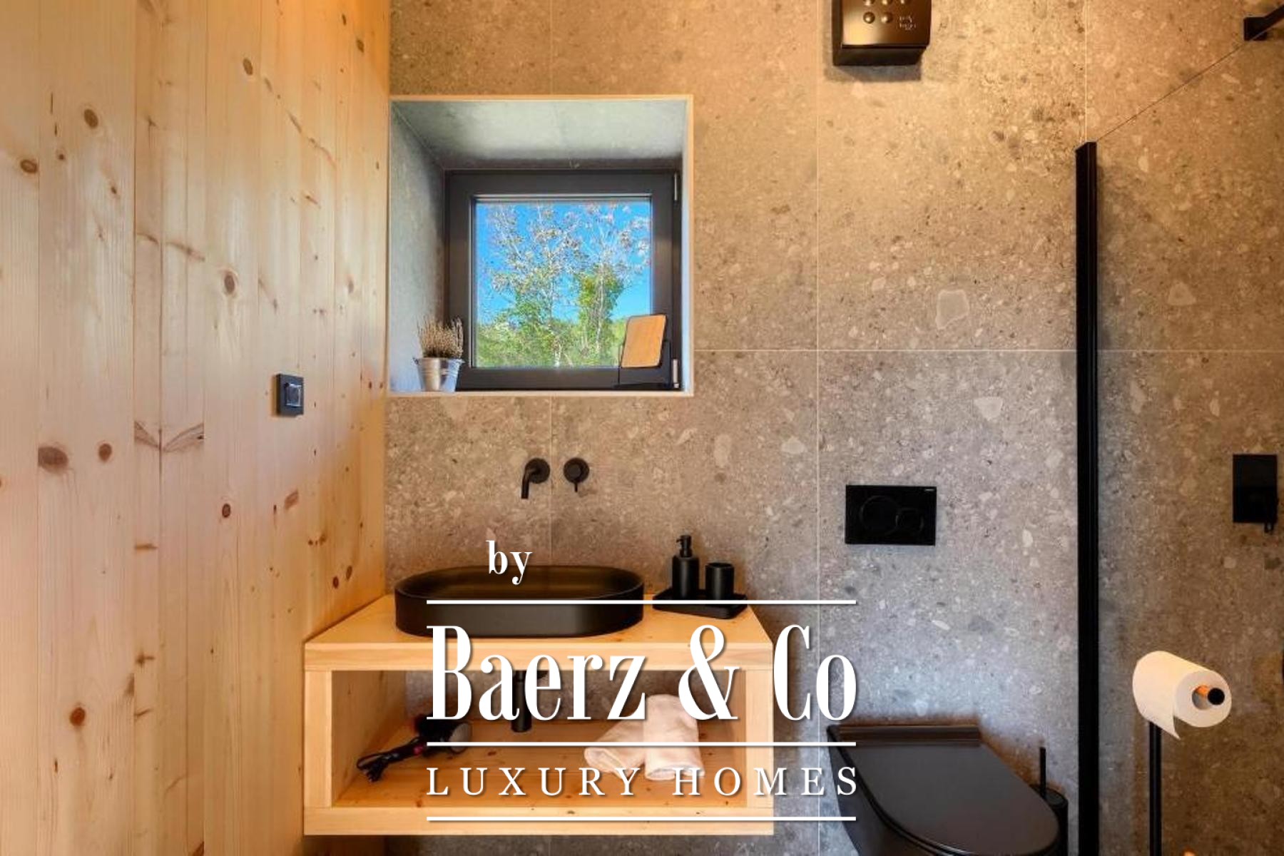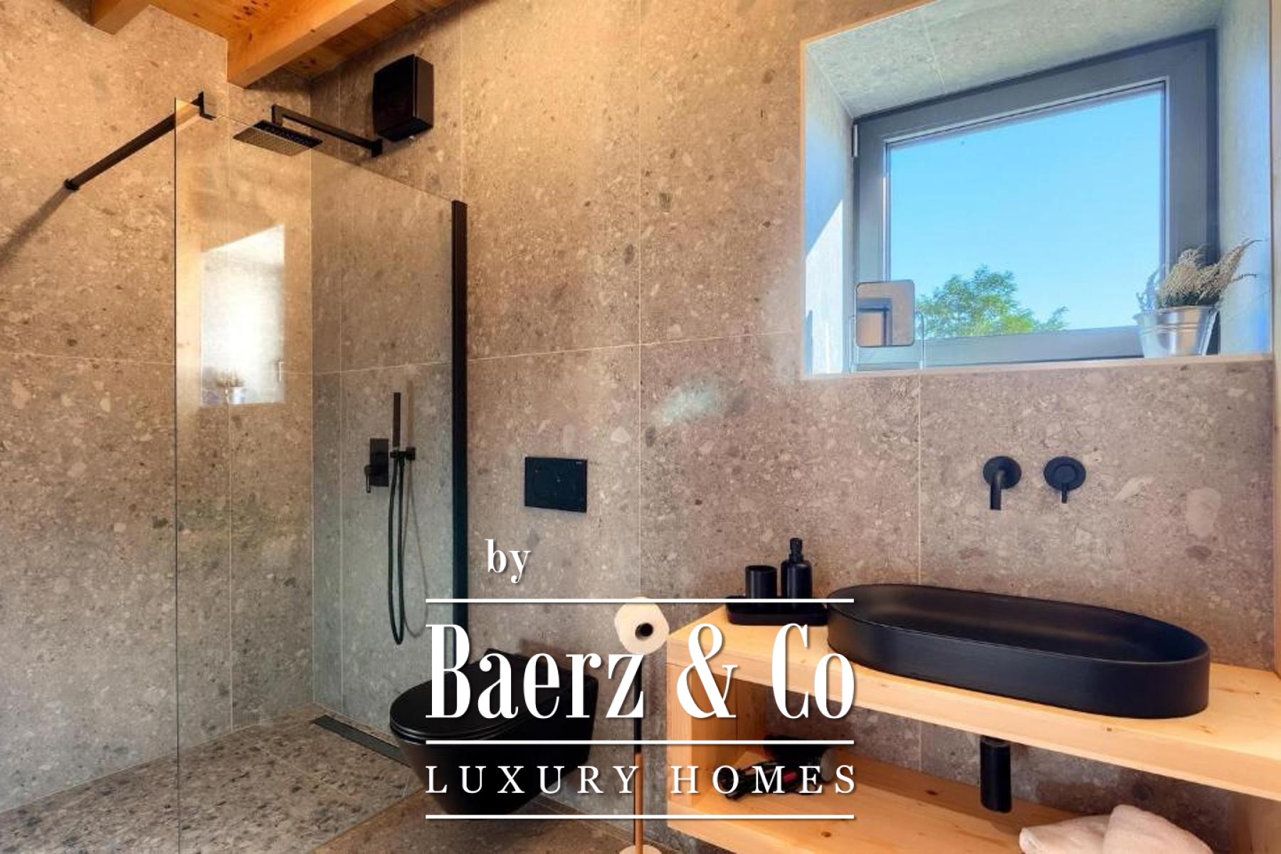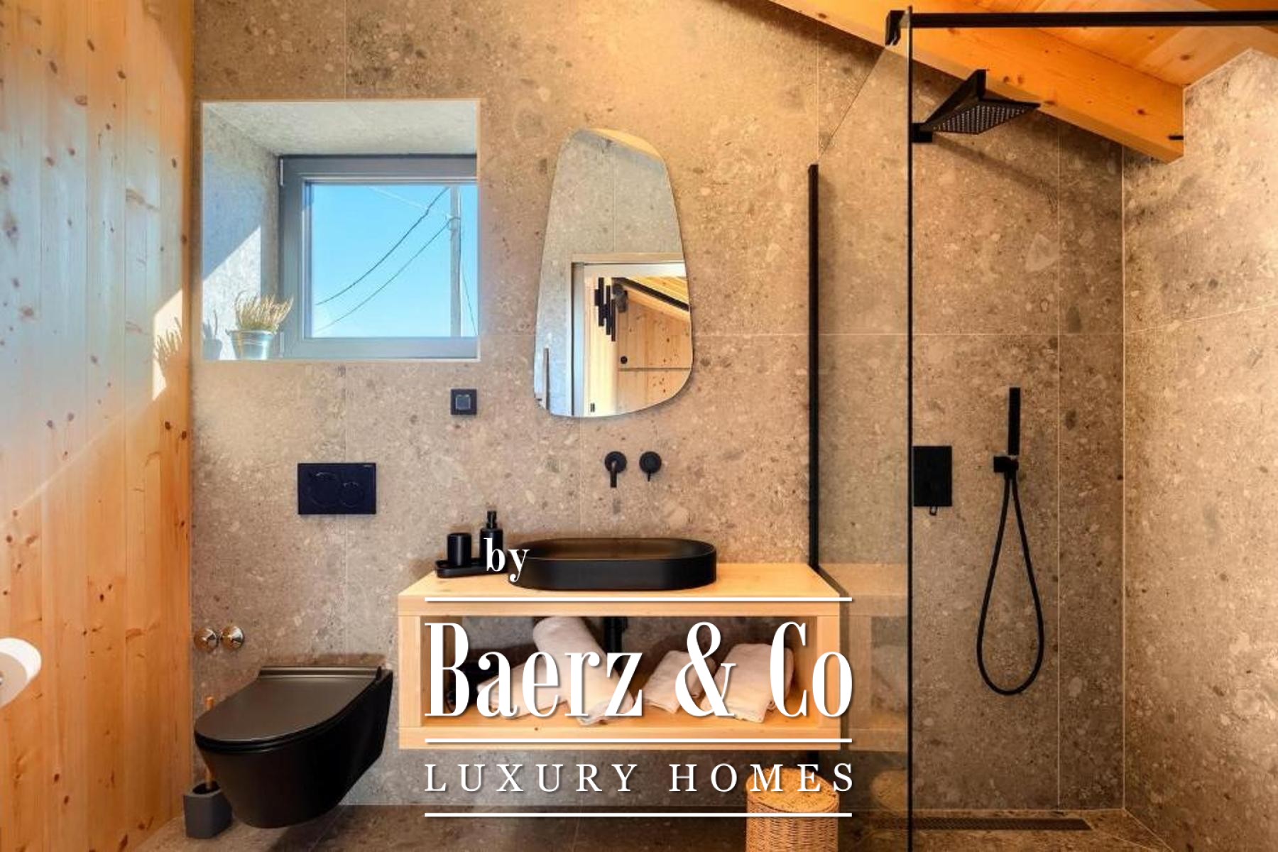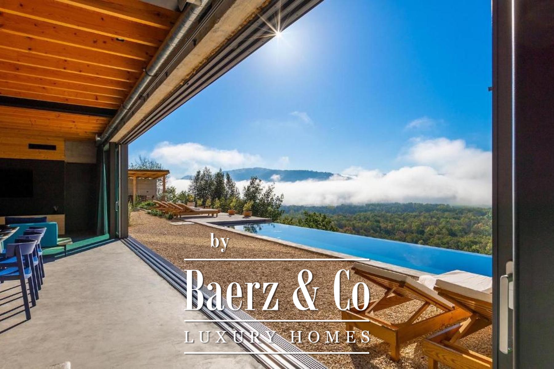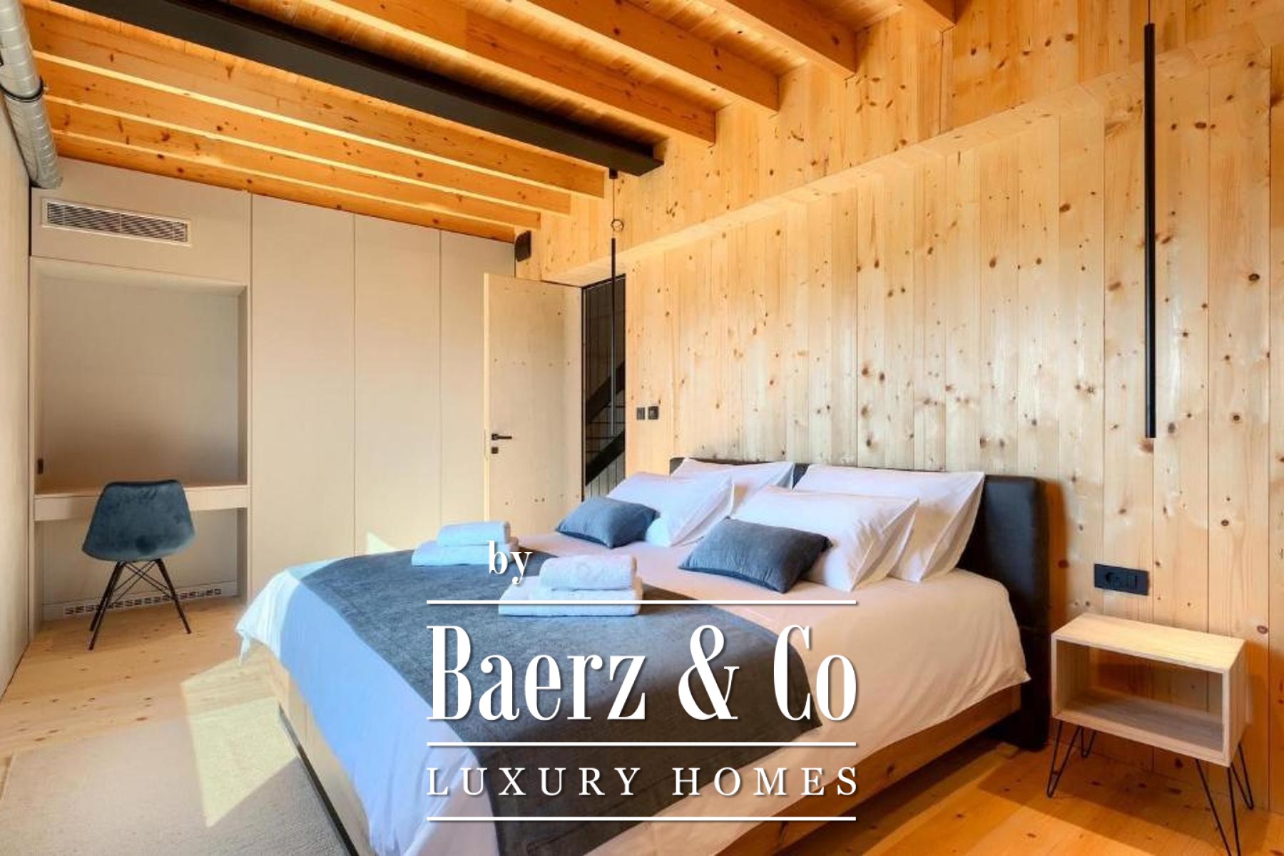L'intento architettonico è evidente in ogni dettaglio, con l'uso di pietra e legno che ancora la residenza all'ambiente circostante. Grandi pareti vetrate accolgono la luce naturale e l'esterno, creando un dialogo costante tra spazi interni ed esterni. Il piano terra open space integra cucina, zona pranzo e soggiorno, aprendosi senza soluzione di continuità su un'ampia terrazza. Qui, una piscina infinity di 20 metri e un'area solarium dominano il paesaggio, affiancate da una zona wellness con vasca idromassaggio, sauna e doccia.