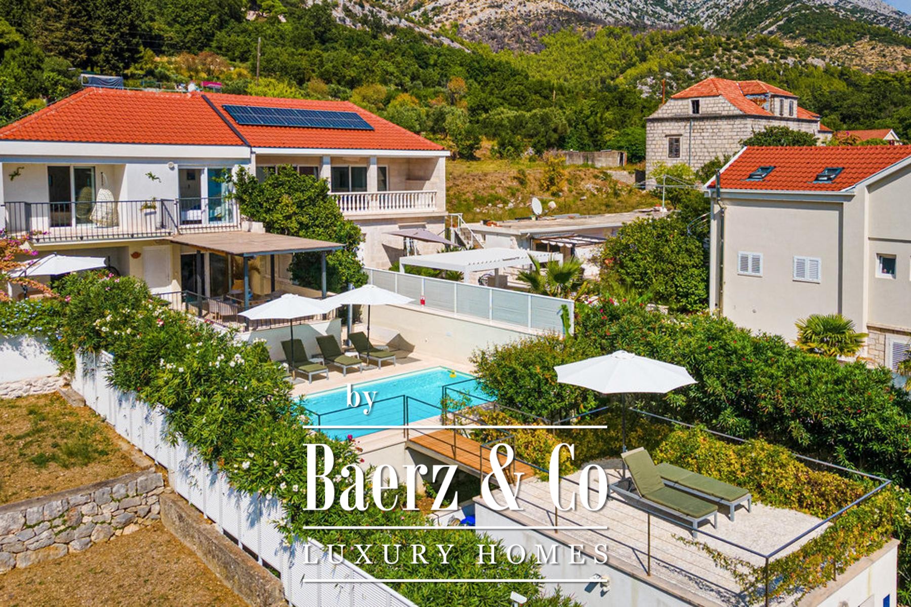 La vita all’aperto è impreziosita da una piscina riscaldata di 24 m², circondata da piante mediterranee profumate—arance, limoni, melograni, palme, banani e oleandri—con sistema di irrigazione integrato. Un garage, due posti auto privati e una colonnina di ricarica Tesla offrono ulteriore comfort. Sopra il garage, un solarium e un deck sono perfetti per ammirare tramonti incantevoli sul canale. La casa è completamente arredata e situata a soli 100 metri da negozi e ristoranti, offrendo privacy, tranquillità e accesso diretto ai servizi locali e al vibrante ambiente naturale dell’esclusiva costa di Viganj.