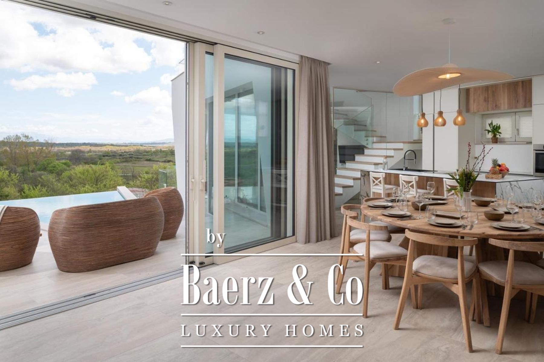 La villa moderna Poličnik rappresenta un raffinato connubio tra architettura d’autore e panorami naturali suggestivi. Questa residenza contemporanea, posizionata vicino a Zadar, offre 414 m² di ambienti studiati per fondere design sofisticato e armonia con il contesto circostante. La proprietà si estende su un lotto di 1.191 m² e include spazi esterni meticolosamente progettati, sei posti auto privati, ampie terrazze e una piscina irradiata dalla luce naturale.