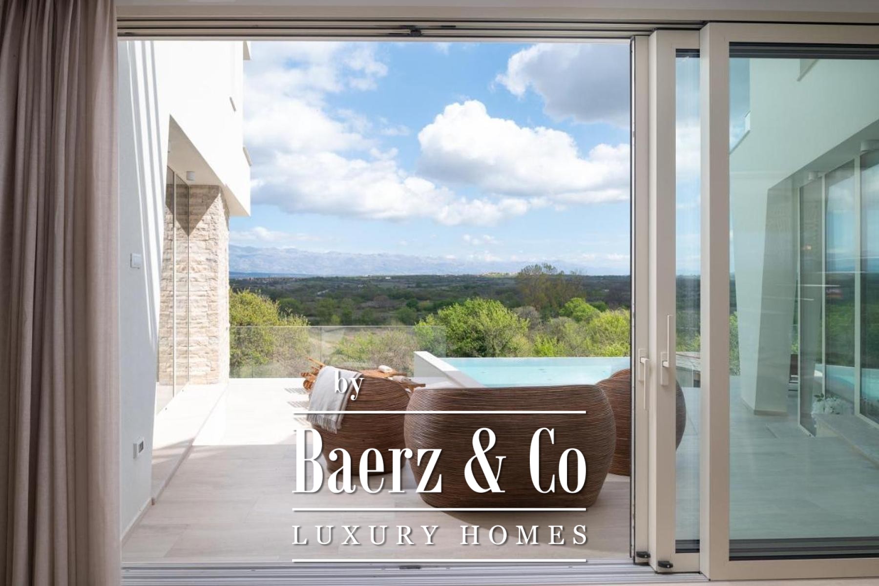 Al livello inferiore una sala giochi si adatta con facilità sia alle esigenze di svago che a quelle di una sala cinema. Il piano superiore ospita quattro camere da letto, ciascuna con bagno en-suite e cabina armadio. Due suite principali regalano una vista privilegiata sulla catena montuosa del Velebit, mentre le altre camere condividono un’ampia terrazza panoramica. Offrendo privacy, luminosità e un costante dialogo tra interno e paesaggio, questa villa di lusso in vendita a Poličnik è il rifugio ideale per momenti di solitudine e convivialità.