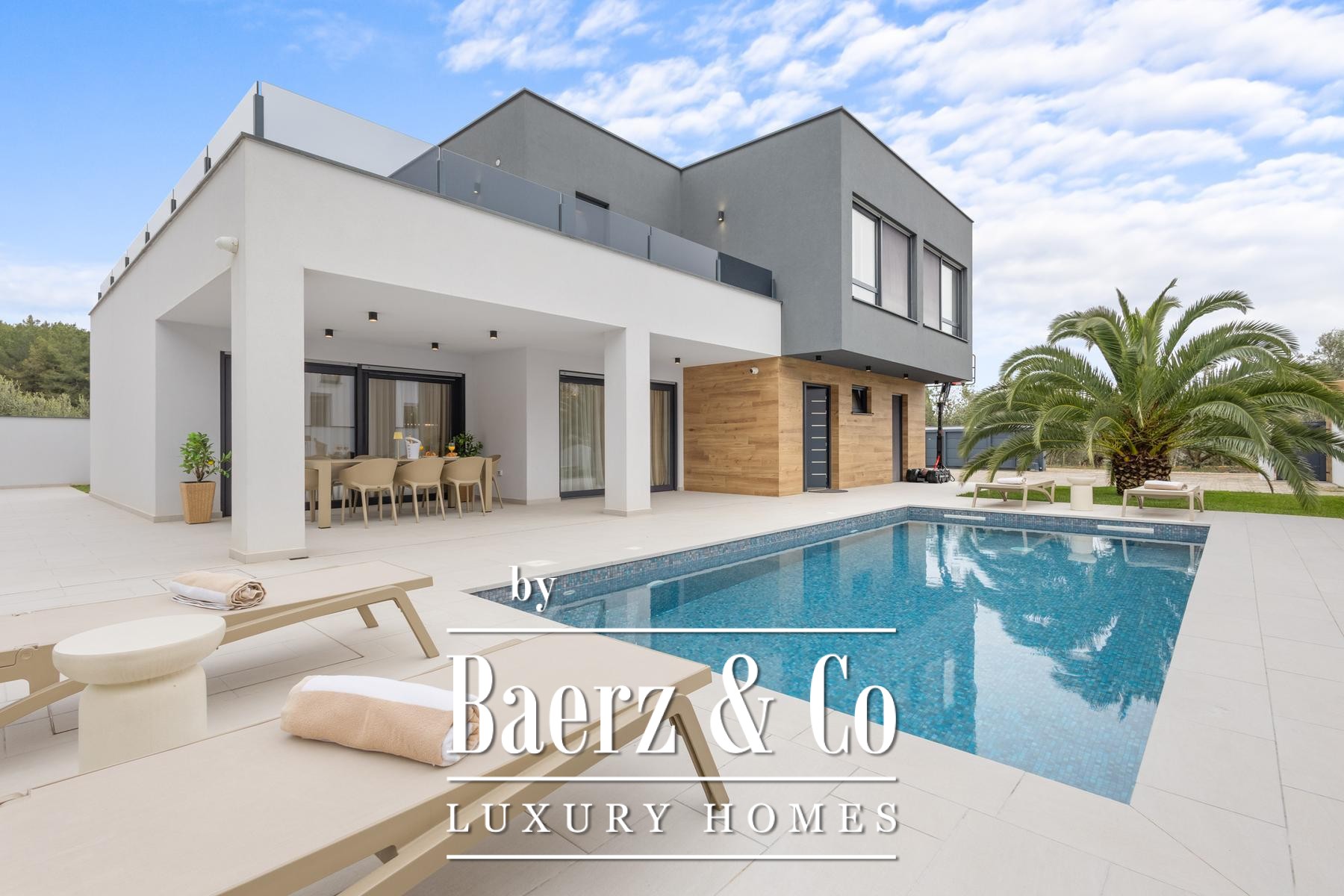 La villa moderna Pula definisce un nuovo standard per la vita mediterranea all’insegna della tranquillità. Circondata dal verde nel tranquillo quartiere Veli Vrh di Pola, questa proprietà sorge su un lotto di 733 m² e offre 273 m² di interni sapientemente progettati. Realizzata nel 2021, la villa coniuga funzionalità, un tangibile senso di lusso e una chiarezza estetica mirata.