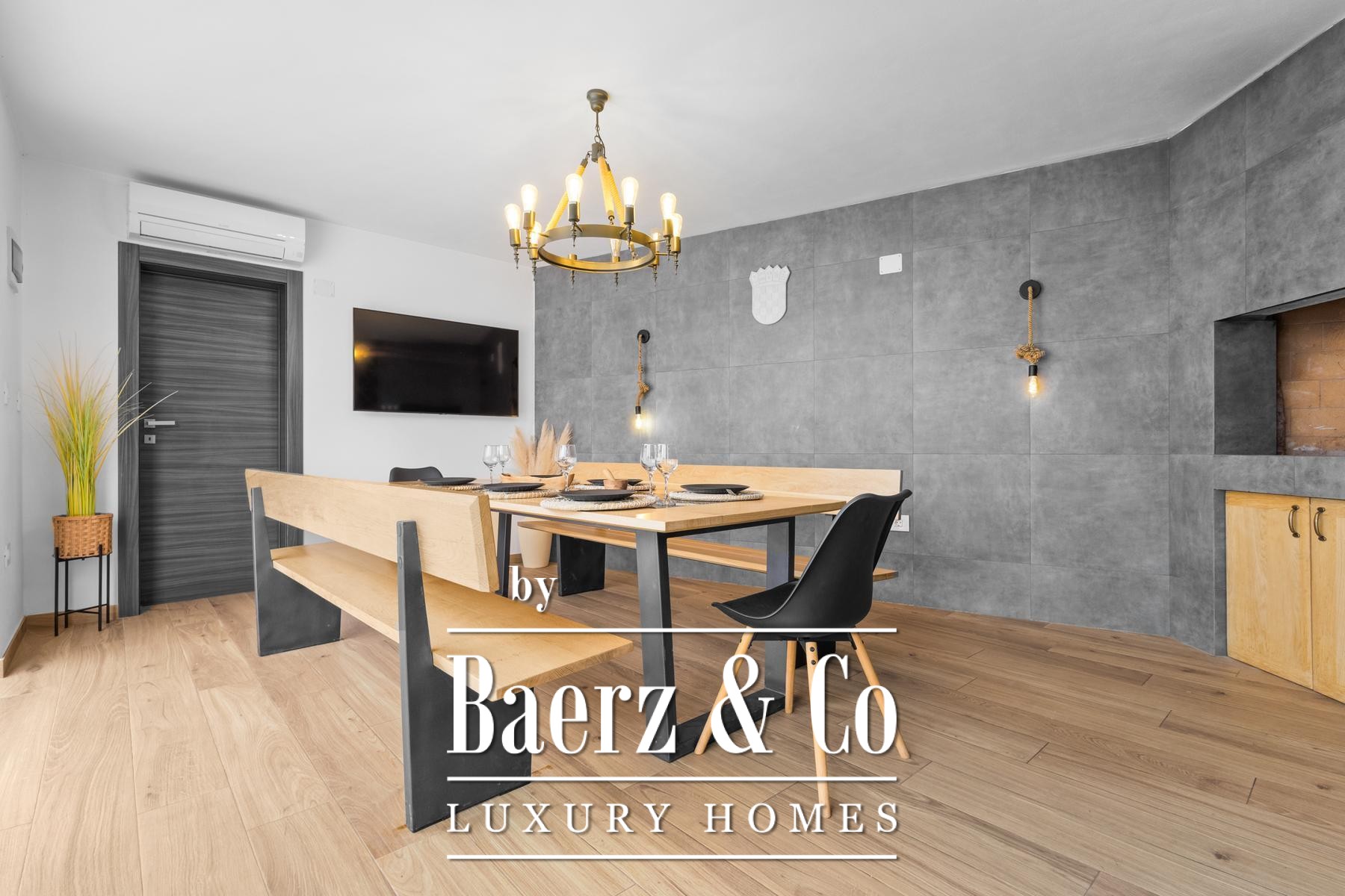 All’esterno, una piscina riscaldata di 32 m² con sistema a sale si affianca a un solarium paesaggistico e a una taverna di 25 m² con camino, creando uno spazio riservato per momenti di relax o piccoli ricevimenti. Completano la proprietà un garage di 35 m², tre ulteriori posti auto, videosorveglianza e sistema d’allarme. La precisione tecnica è evidente nel riscaldamento a pavimento, nell’aria condizionata presente in tutti gli ambienti e nell’arredamento su misura. Questa villa di lusso in vendita a Pola esprime sintesi perfetta tra design contemporaneo e autentico comfort in una cornice di assoluta serenità.