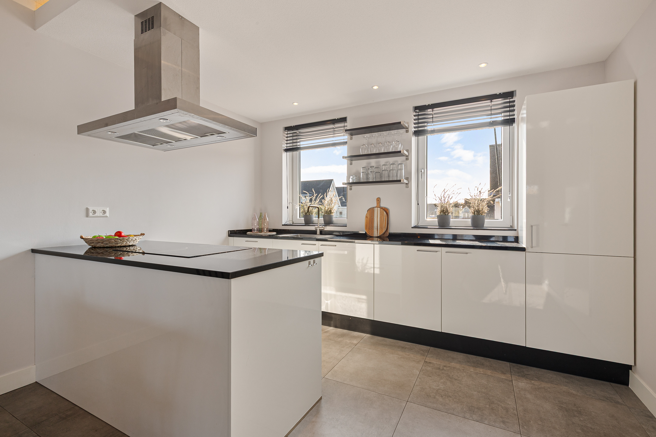 L’abitazione dispone di cinque ampie camere da letto, ciascuna con bagno privato, garantendo privacy e comfort per familiari o ospiti. Le ampie finestre a tutta altezza illuminano la zona living open space, incorniciando viste rilassanti sull’acqua e sul giardino. Una cucina a vista altamente accessoriata rappresenta il cuore della zona giorno, con visuali dirette sia sul canale interno che sull’acqua posteriore. La casa è rifinita con materiali di qualità, compreso un piano terra piastrellato dotato di riscaldamento a pavimento su tutta la superficie, gestibile a zone tramite smartphone.