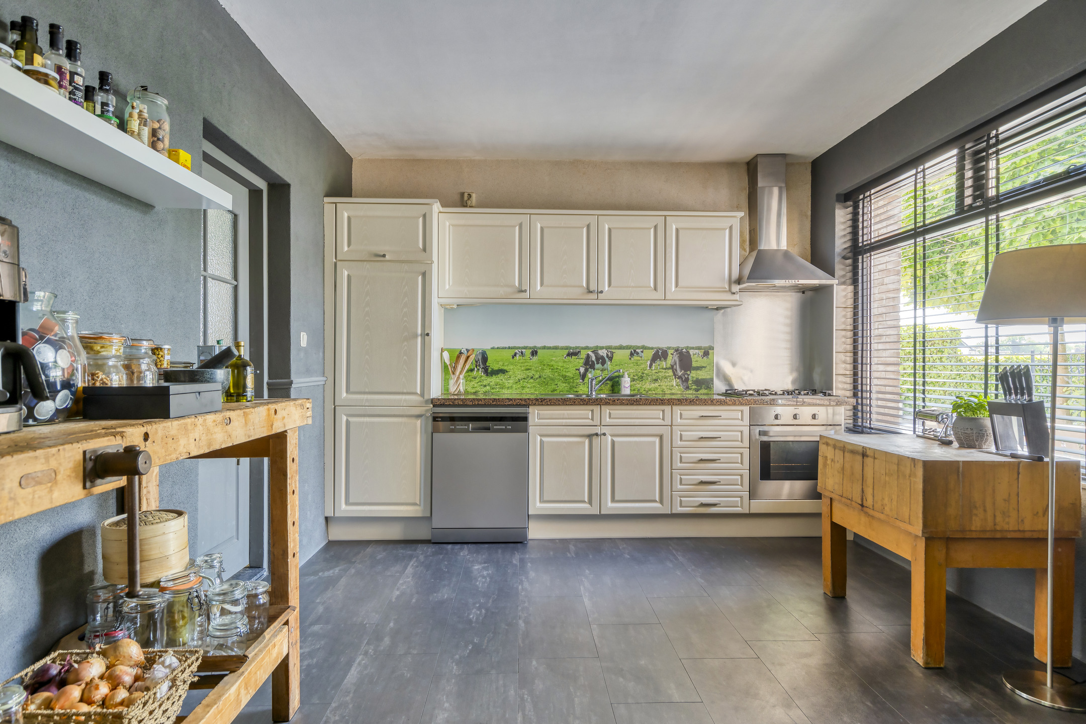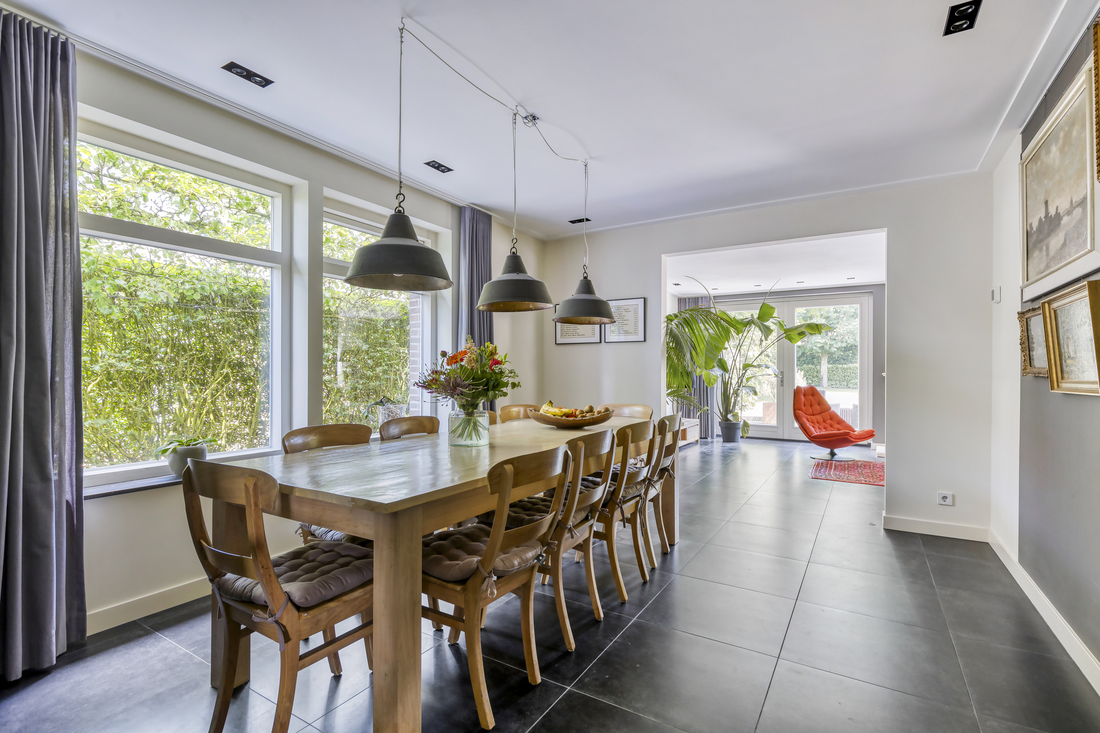 De royale en sfeervolle woonkamer bevindt zich aan de achterzijde met zicht op de tuin. Tevens bevindt zich op de begane grond ook een keuken en bijkeuken.
