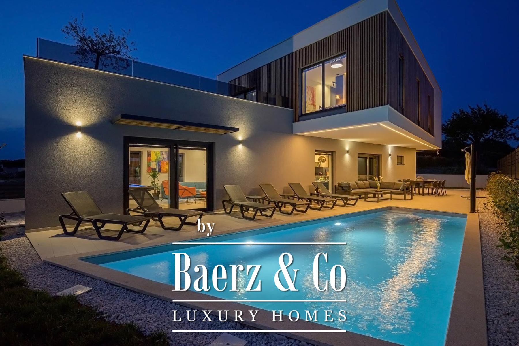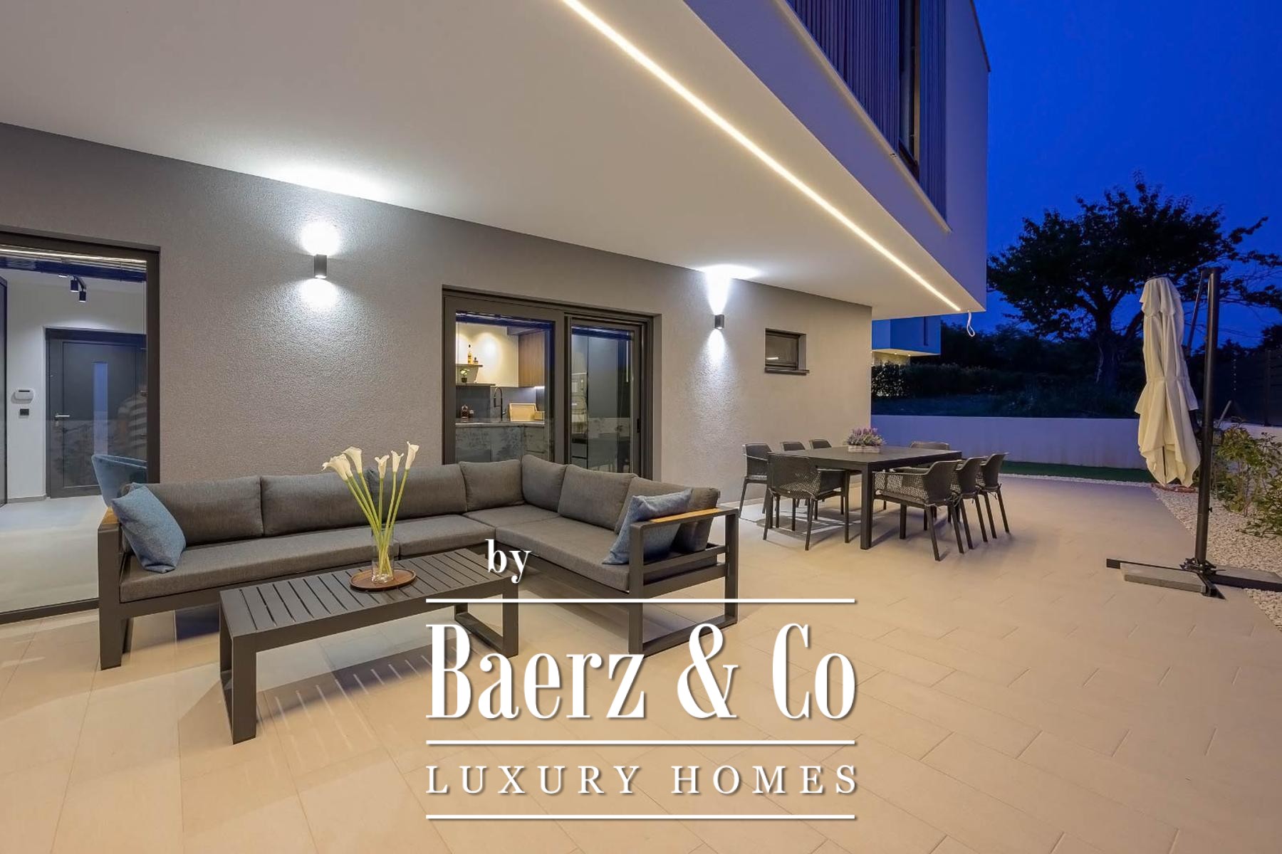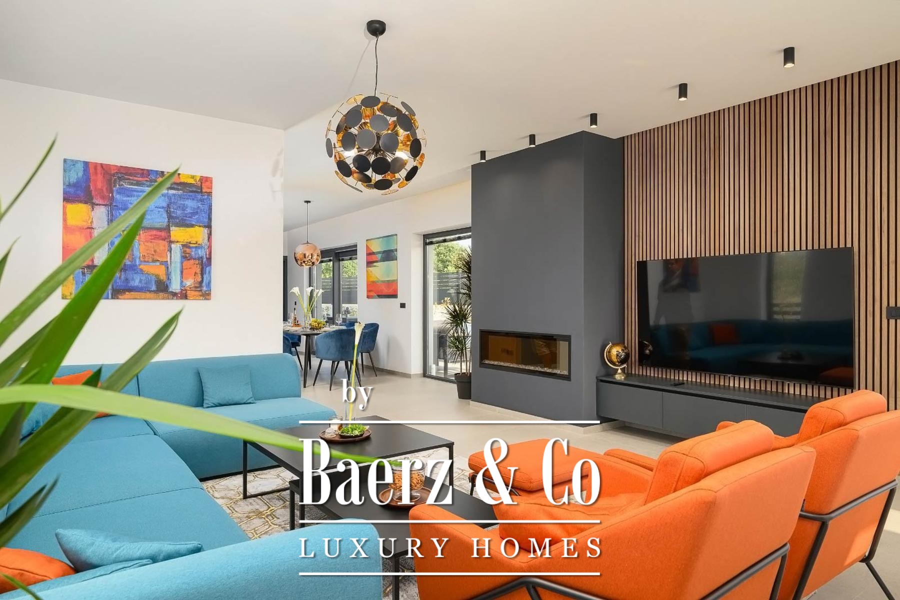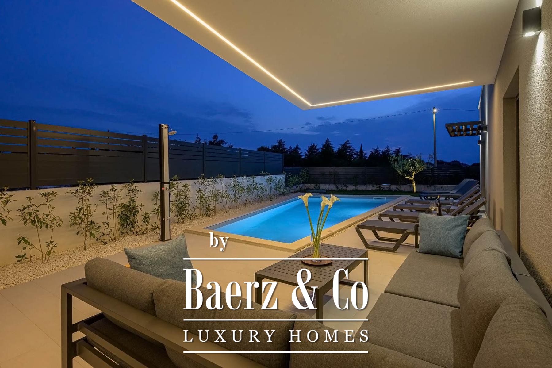 Villa Svetvinčenat si inserisce con discrezione nel cuore del villaggio, offrendo 215 m² di spazi abitativi sapientemente organizzati su un terreno di 460 m². Questa villa in vendita a Svetvinčenat si distingue per il comfort misurato e la perfetta continuità tra interni ed esterni. La zona giorno principale collega cucina a vista, sala da pranzo e salotto, tutti inondati di luce grazie alle pareti di vetro che si aprono su una terrazza riparata, affacciata su una piscina di acqua salata di 32 m². Al piano terra, un bagno per gli ospiti e un ripostiglio completano il ritmo funzionale della casa.