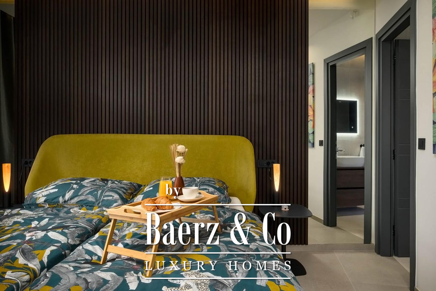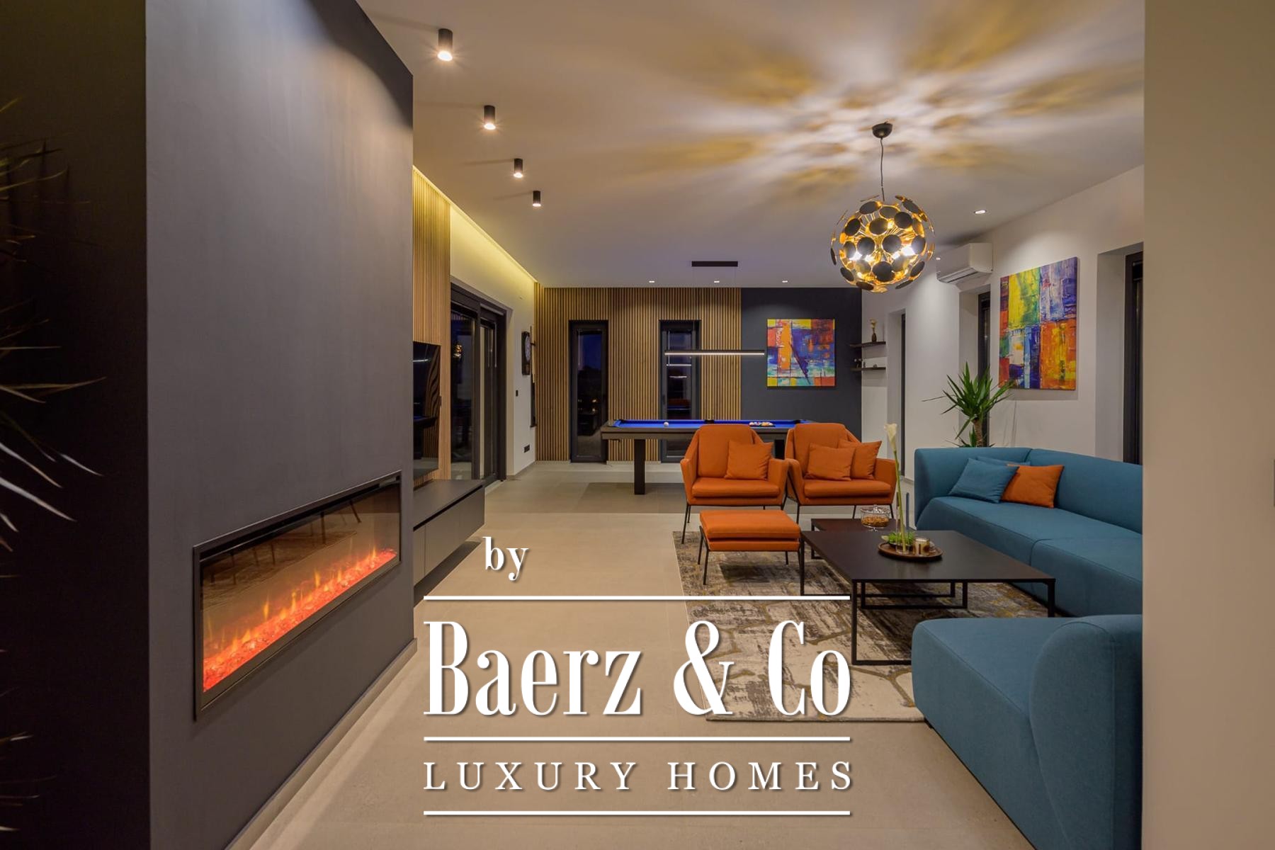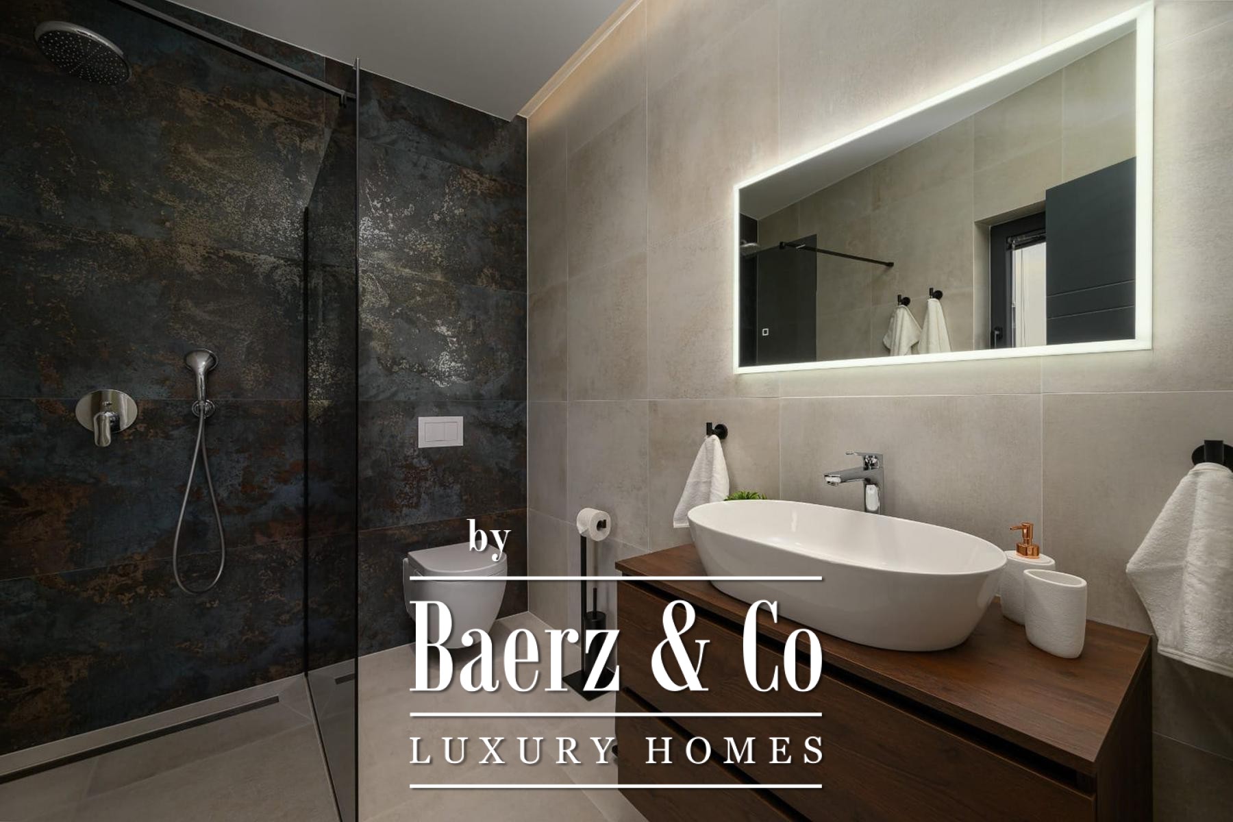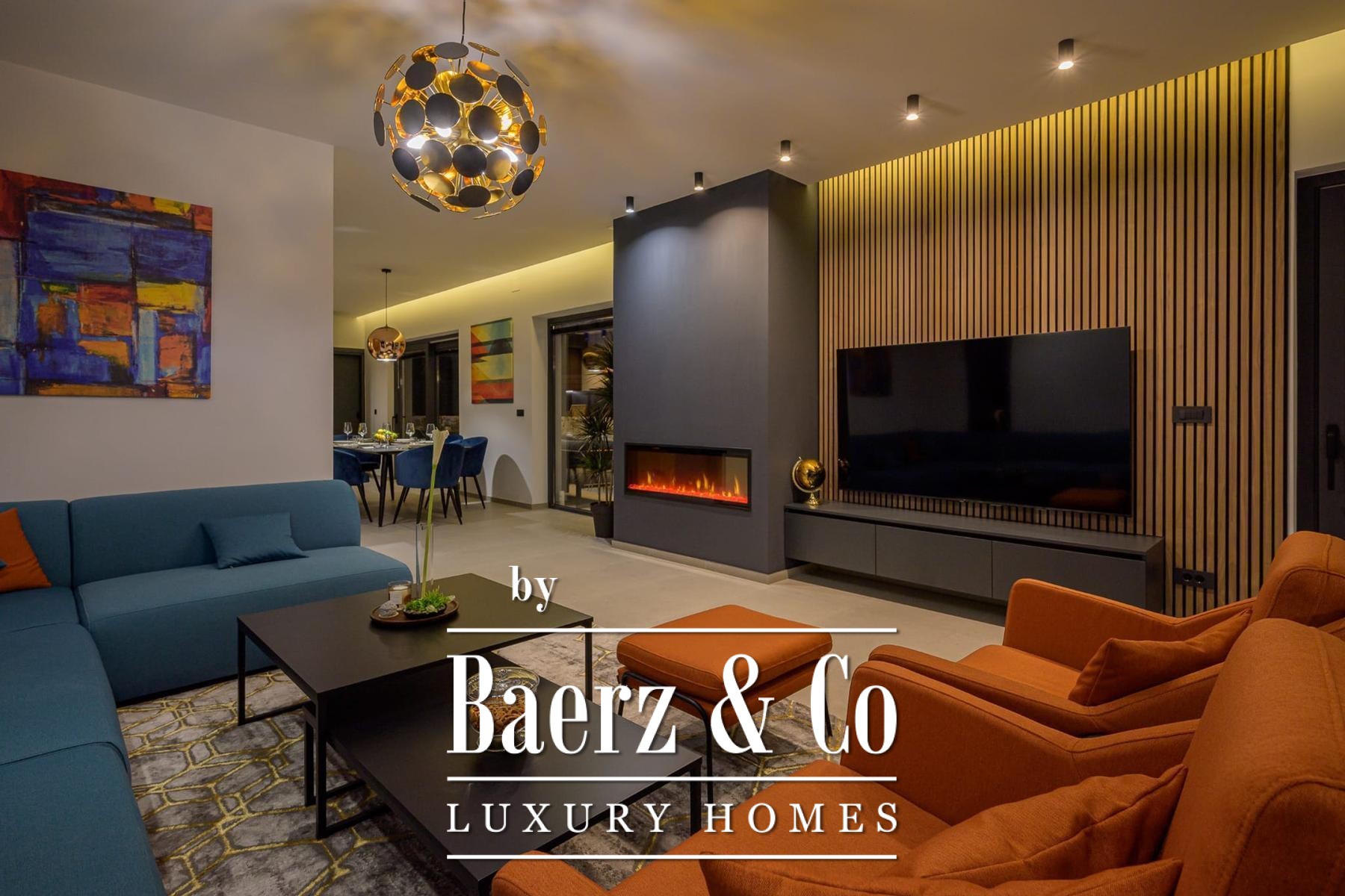 Al piano superiore, tre camere da letto dispongono ciascuna del proprio bagno privato, favorendo un’atmosfera riservata per residenti o ospiti. Il controllo climatico è garantito da riscaldamento a pavimento elettrico, aria condizionata in ogni ambiente e camino elettrico, mentre arredi Modul e Smart TV Samsung conferiscono un senso di equilibrio all'intera residenza.