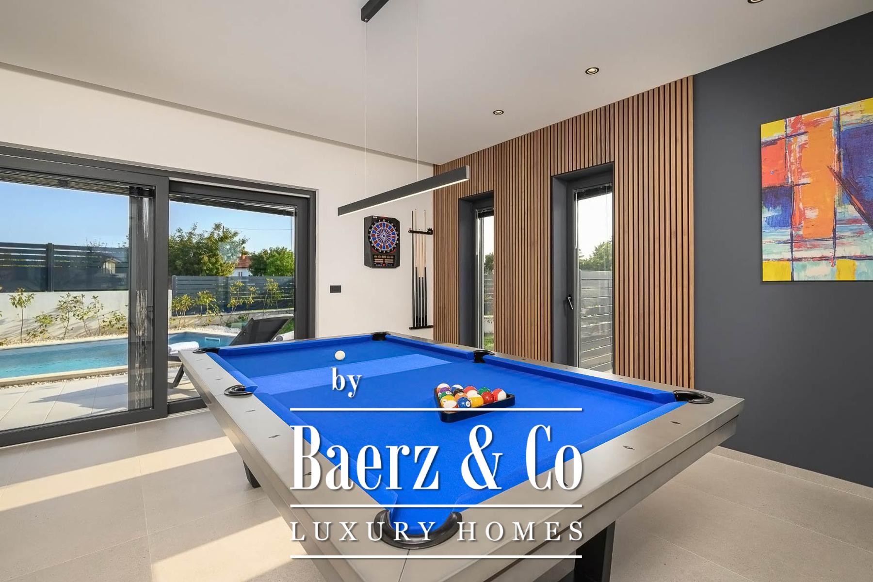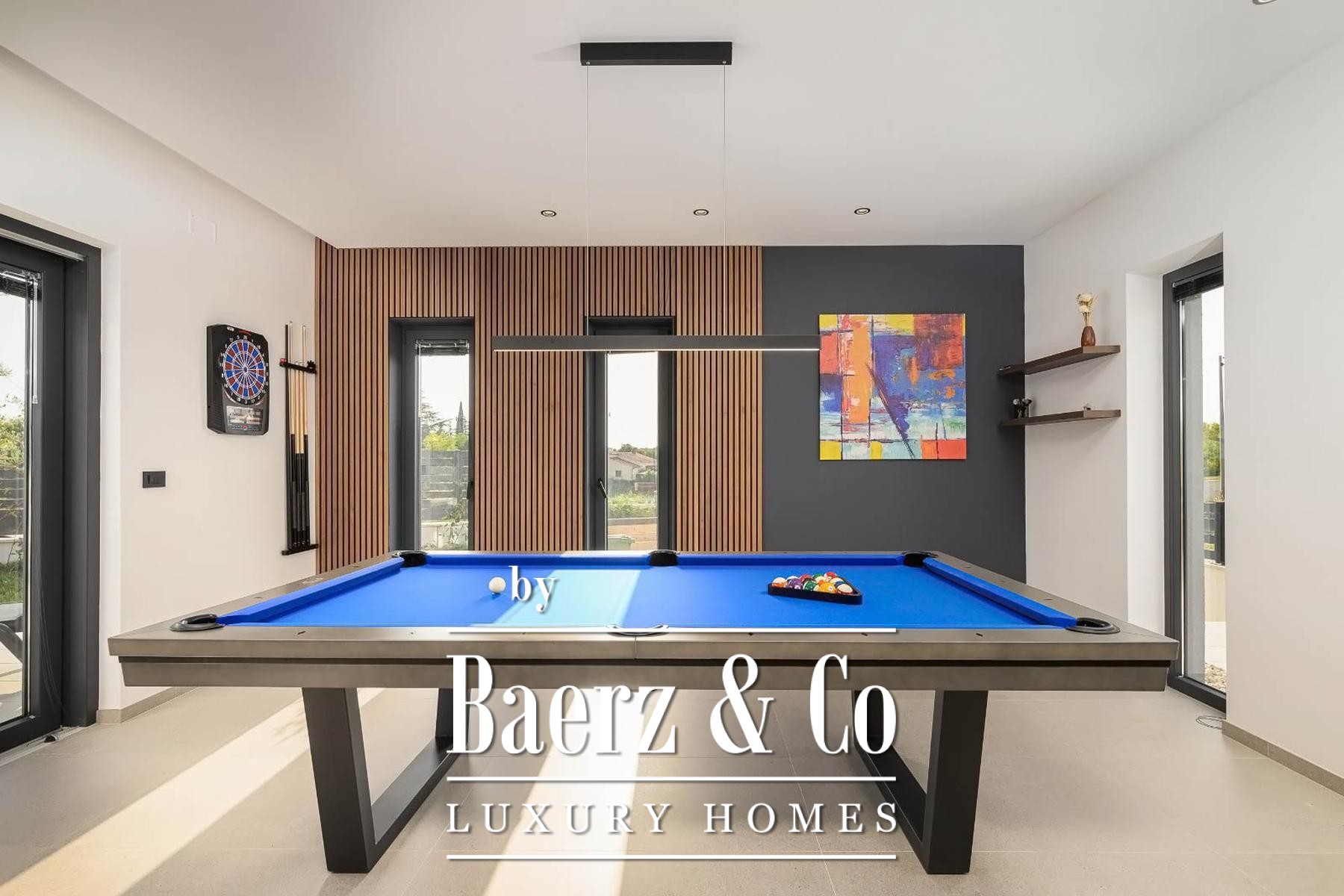 Tra i plus figurano un tavolo da biliardo di fabbricazione tedesca, sistema di allarme, videosorveglianza, illuminazione LED interna ed esterna e predisposizione per il riscaldamento dell’acqua con pannelli solari. L’efficienza energetica, invece, è assicurata da una facciata spessa 15–20 cm e da pareti scorrevoli che connettono gli spazi con l’esterno. Questa villa in vendita a Svetvinčenat viene proposta completamente arredata, con una classificazione a quattro stelle e ottimi risultati come locazione turistica. L’ambiente offre tranquillità e raffinatezza abitativa, con permessi regolari e proprietà garantita.