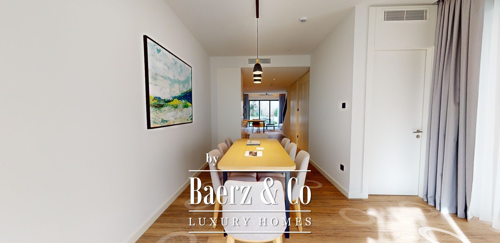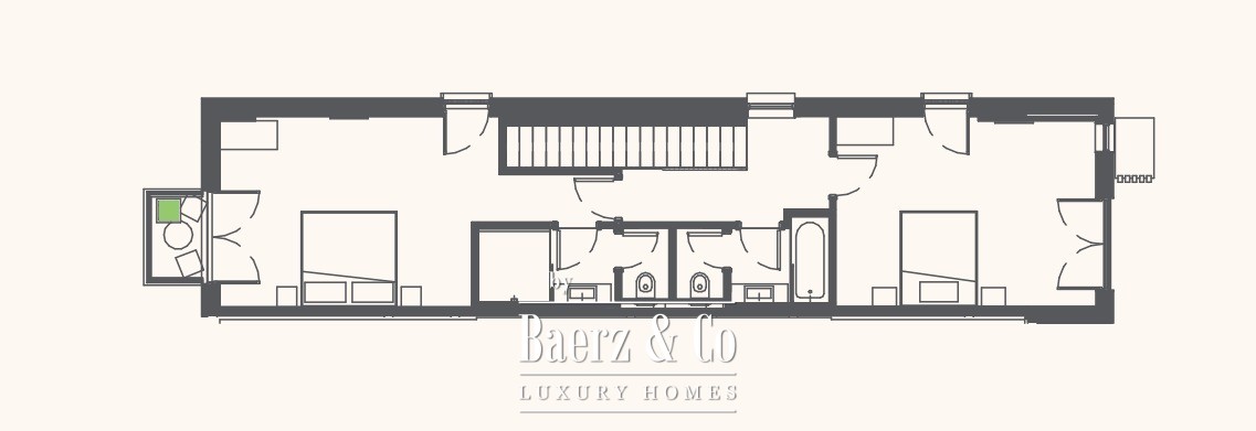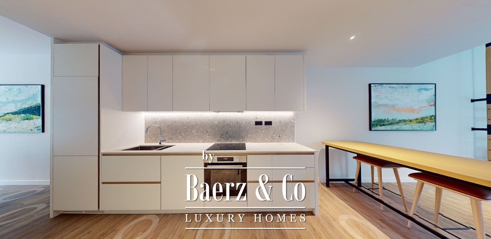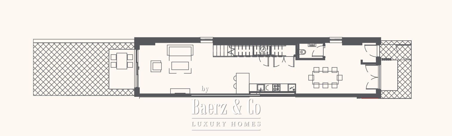 Il duplex dispone di due camere da letto, due bagni, un bagno per gli ospiti, un soggiorno open space con cucina e zona pranzo, e un terrazzo accogliente. Le ampie vetrate incorniciano viste rilassanti su mare e montagne, enfatizzando la luce naturale e la serenità dell’ambiente. Sono inclusi un garage privato, arredi completi e il diritto esclusivo di utilizzo di un lotto di 33,49 m² all’ingresso, perfetto per un giardino appartato o un’area lounge esterna.