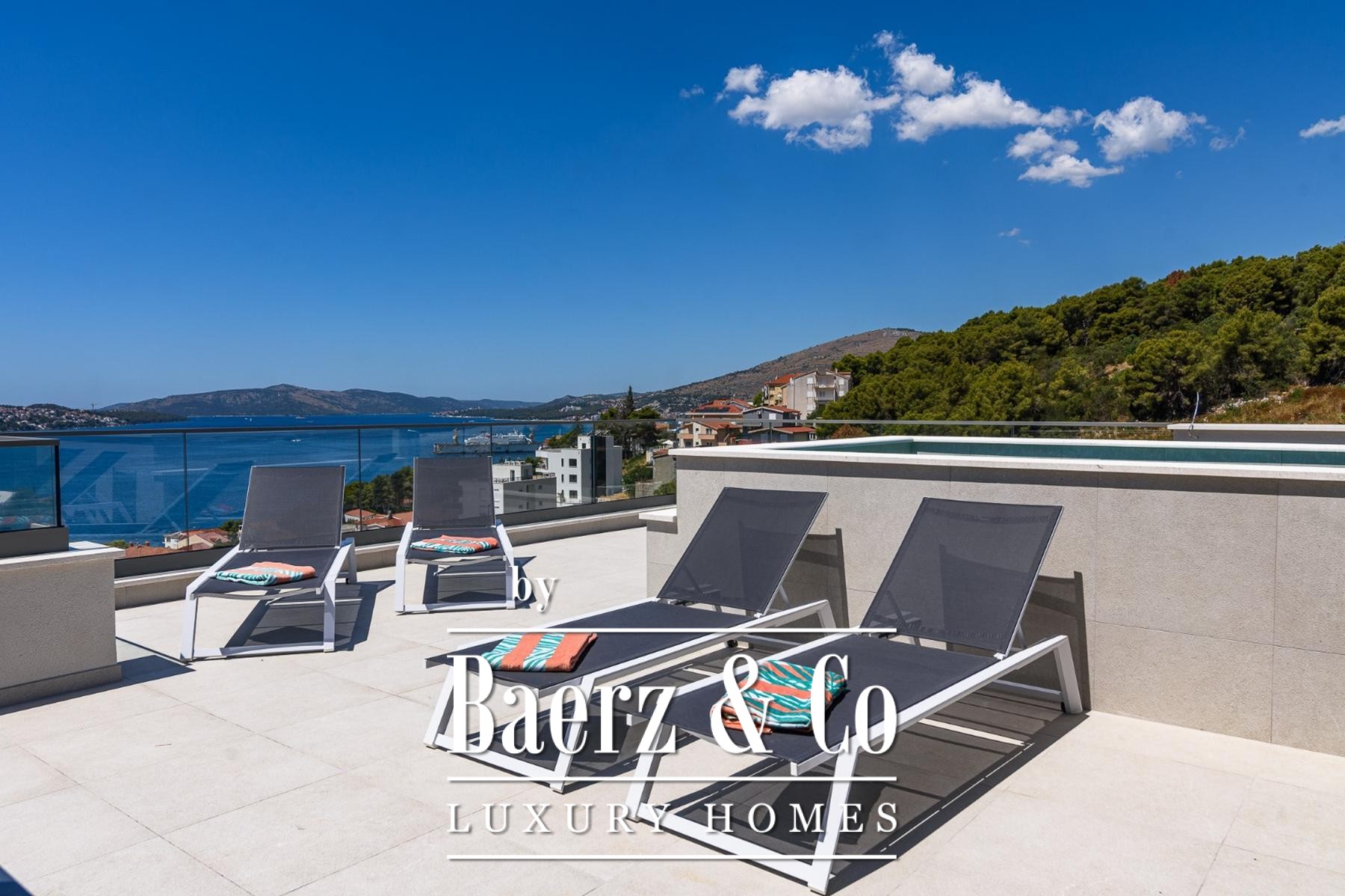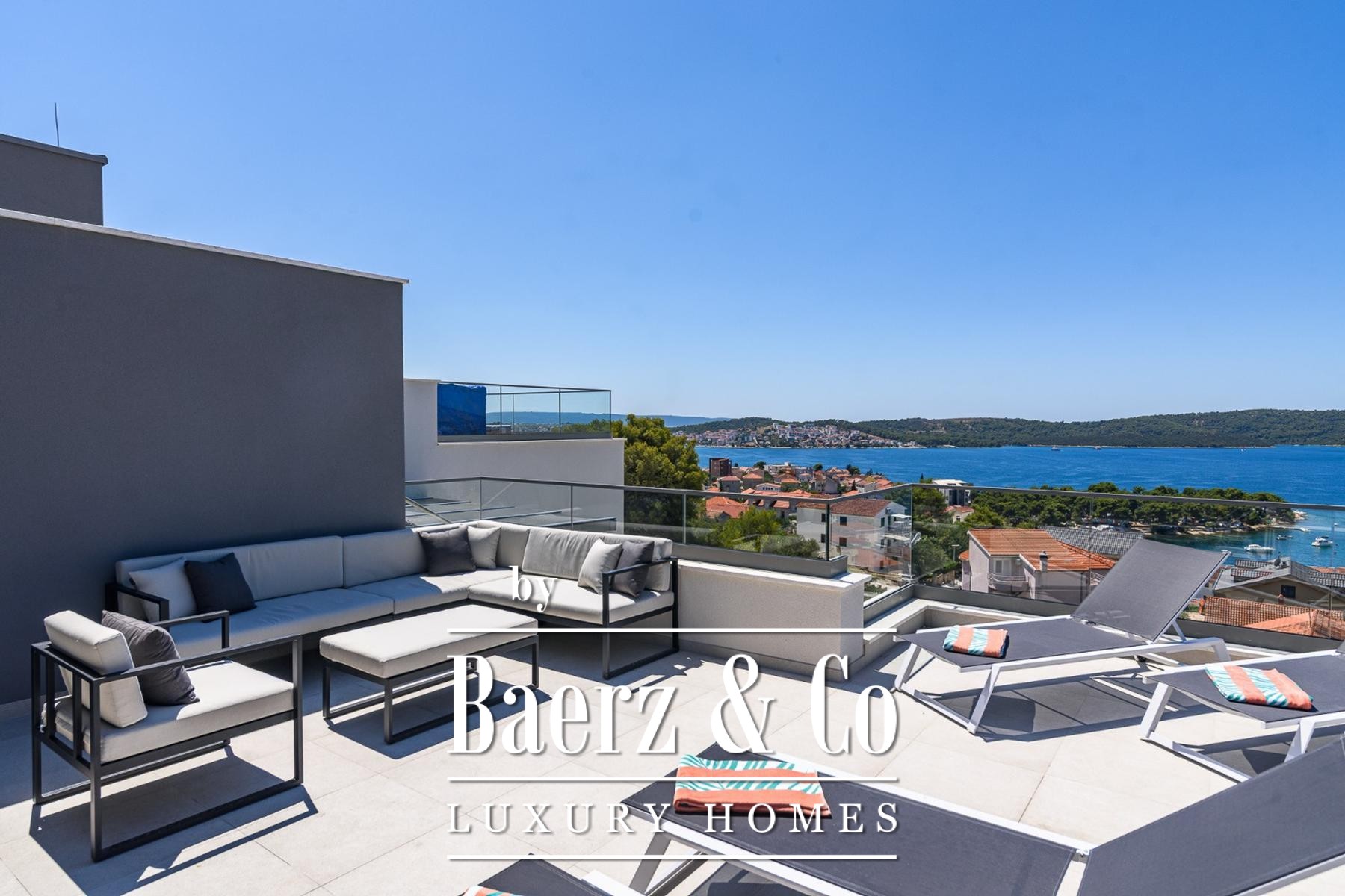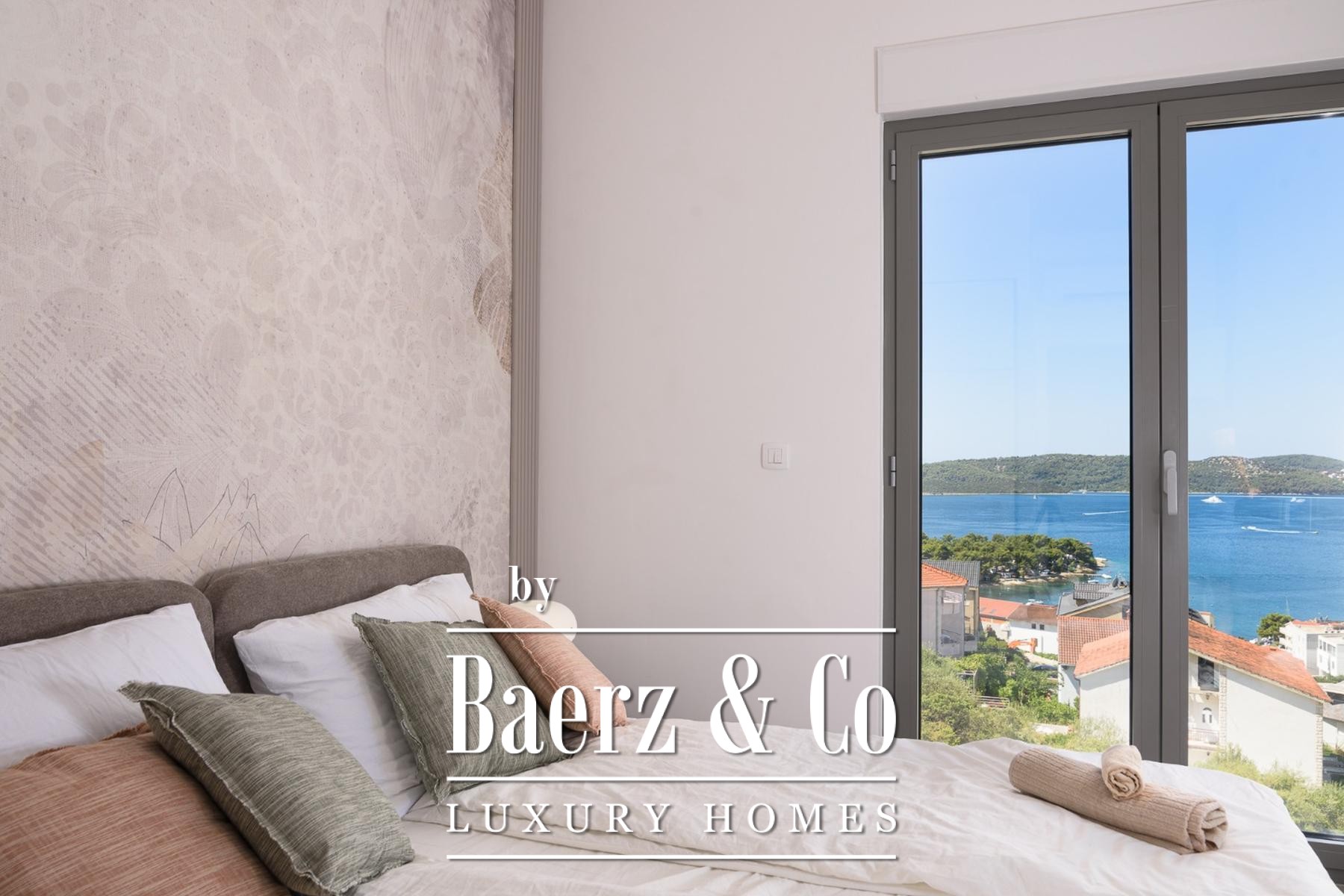 Lussuoso appartamento a Trogir in una posizione d’eccezione, con 132 m² di raffinati ambienti distribuiti su due livelli progettati con attenziona. Questa residenza offre una vista panoramica sul mare che impreziosisce ogni istante, privilegiando materiali di altissima qualità e arredi su misura. L’appartamento dispone di quattro camere da letto e quattro bagni, studiati tanto per la privacy quanto per la convivialità, con un’ampia zona living open space che integra cucina, sala da pranzo e soggiorno nel cuore sociale dell’abitazione.