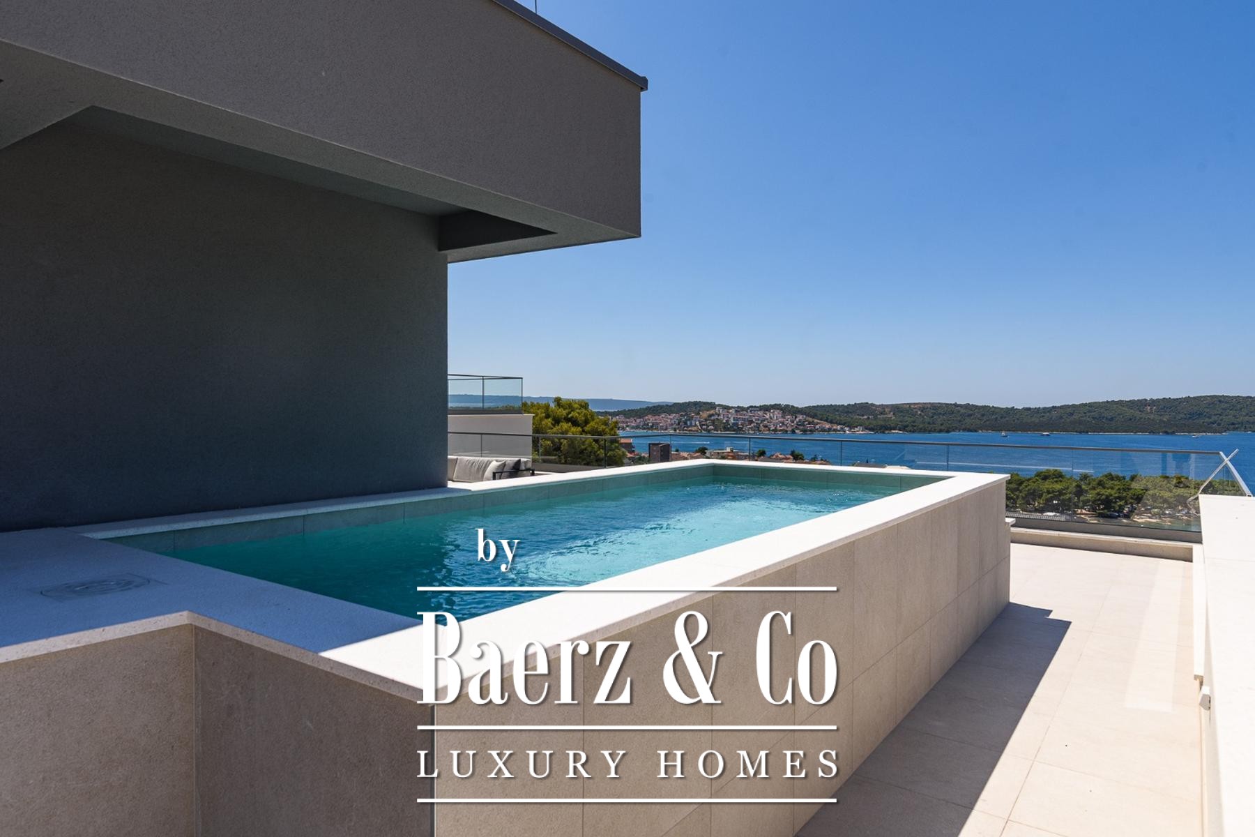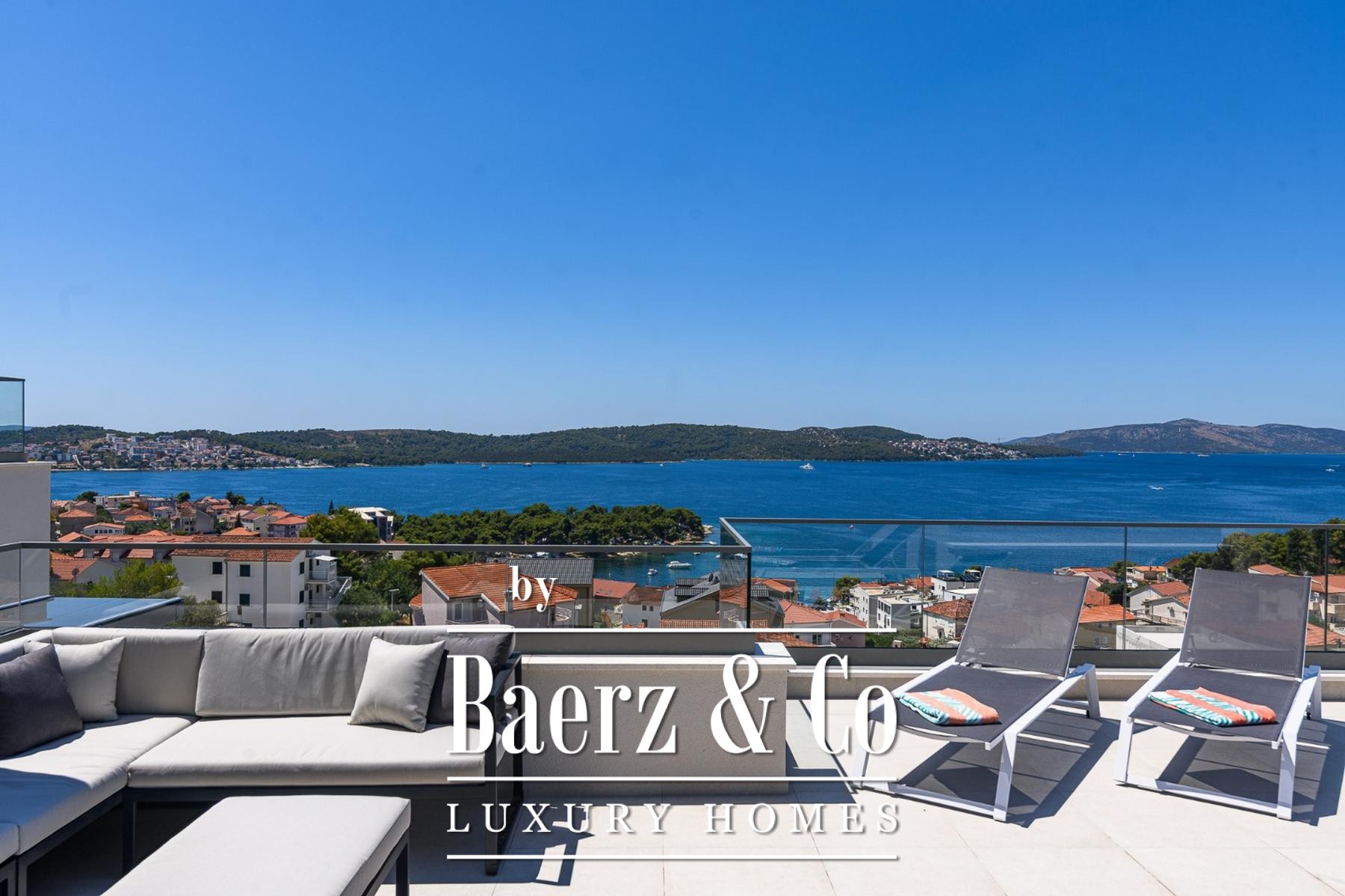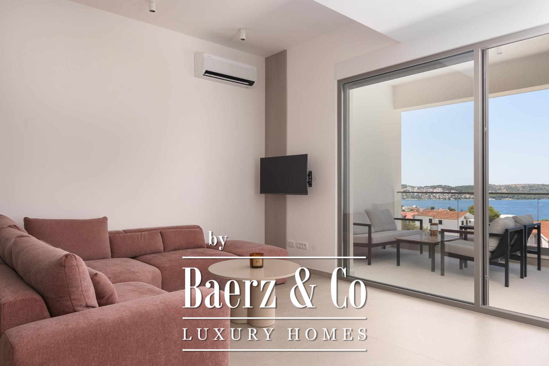Lussuoso appartamento a Trogir in una posizione d’eccezione, con 132 m² di raffinati ambienti distribuiti su due livelli progettati con attenziona. Questa residenza offre una vista panoramica sul mare che impreziosisce ogni istante, privilegiando materiali di altissima qualità e arredi su misura. L’appartamento dispone di quattro camere da letto e quattro bagni, studiati tanto per la privacy quanto per la convivialità, con un’ampia zona living open space che integra cucina, sala da pranzo e soggiorno nel cuore sociale dell’abitazione.