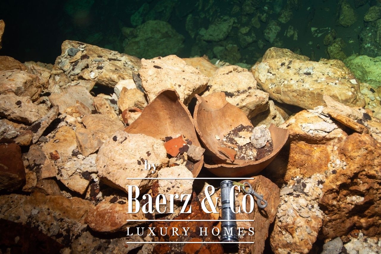 Gli elementi naturali sono il fulcro del fascino di questa proprietà. Il terreno ospita una rara rejollada, una formazione calcarea che crea un microclima e un paesaggio unici per arrampicata, trekking e esperienze ecologiche difficilmente reperibili altrove. Sotto il terreno si trova un ampio cenote sotterraneo di circa 55 metri di diametro e 60 metri di profondità, che aggiunge valore storico e possibilità di ricerca grazie ai reperti maya rinvenuti durante esplorazioni professionali. L'accesso all'acqua è possibile a 18 metri, sottolineando la sostenibilità della proprietà.