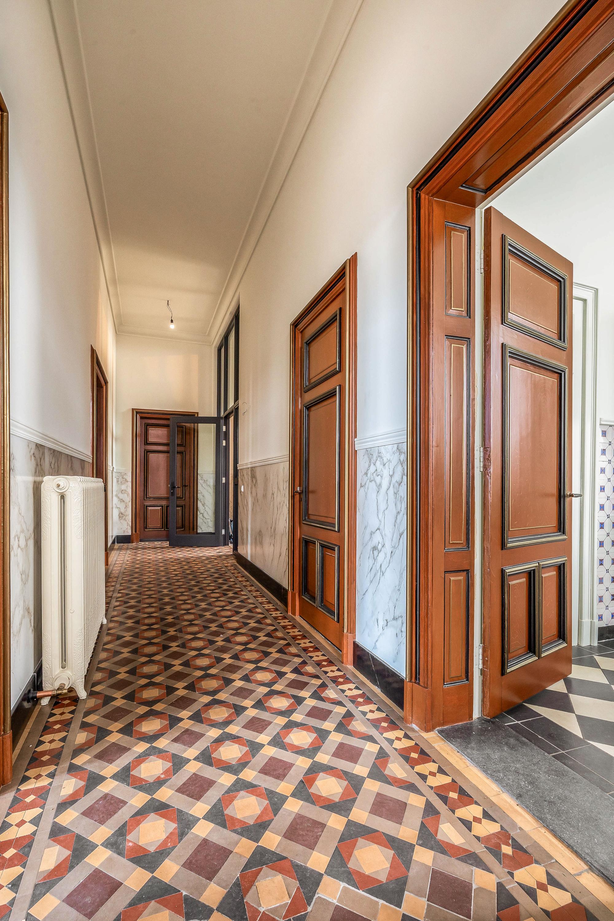 L’appartamento è completamente rifinito e gode di accesso privato a una terrazza, oltre all’utilizzo di un tranquillo giardino comune sul retro. Un posto auto privato aggiunge ulteriore comfort. Ogni piano conserva l’autentica atmosfera della struttura originale, mantenendo dettagli architettonici e integrando finiture di alta qualità dal gusto sobrio.