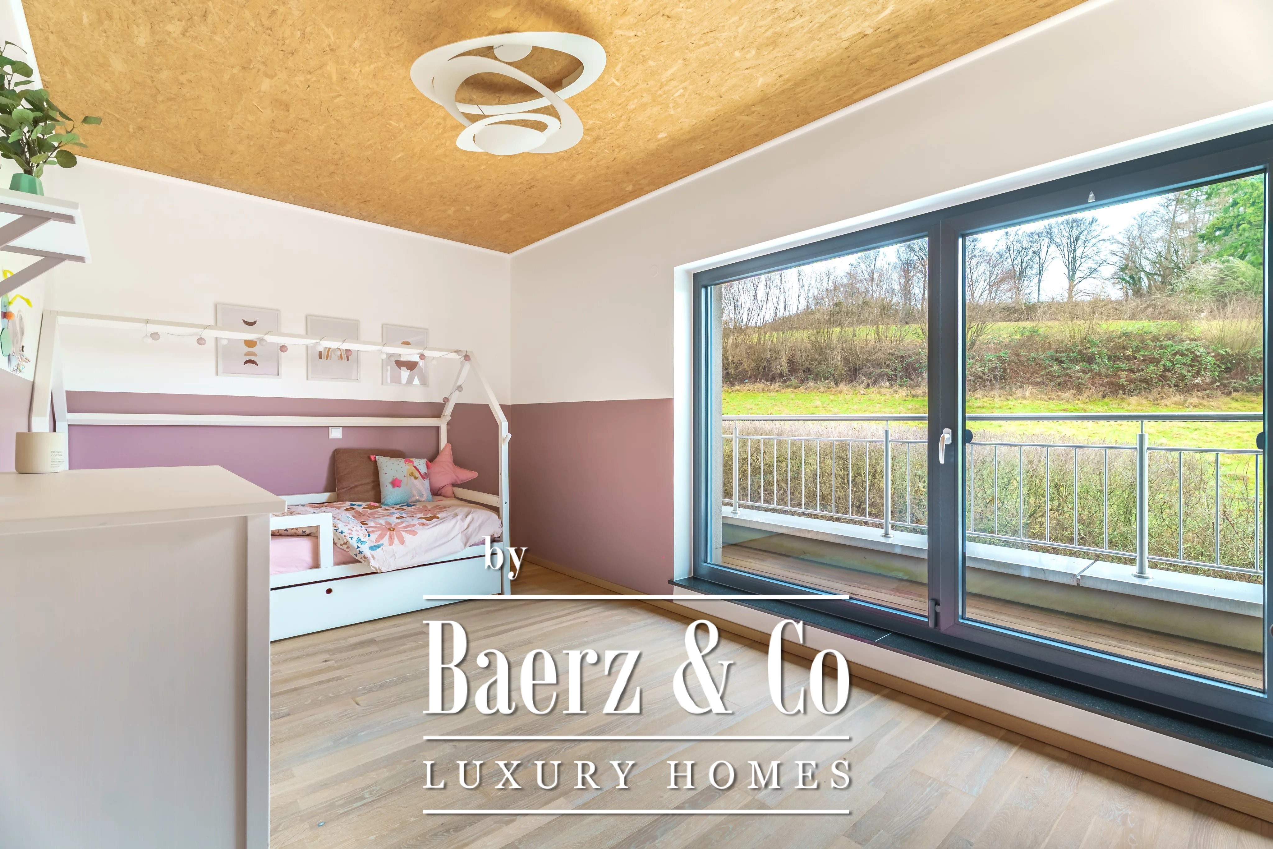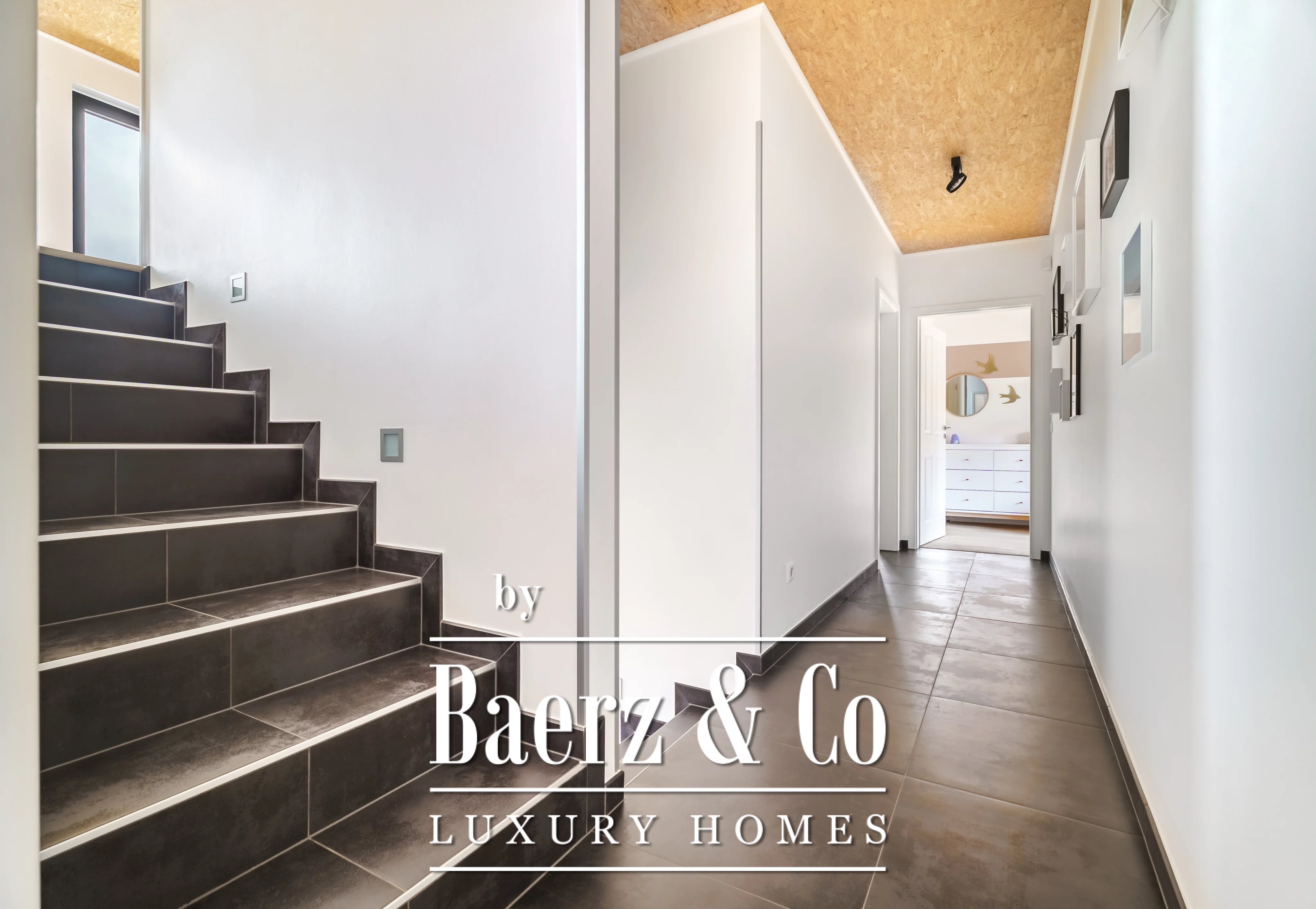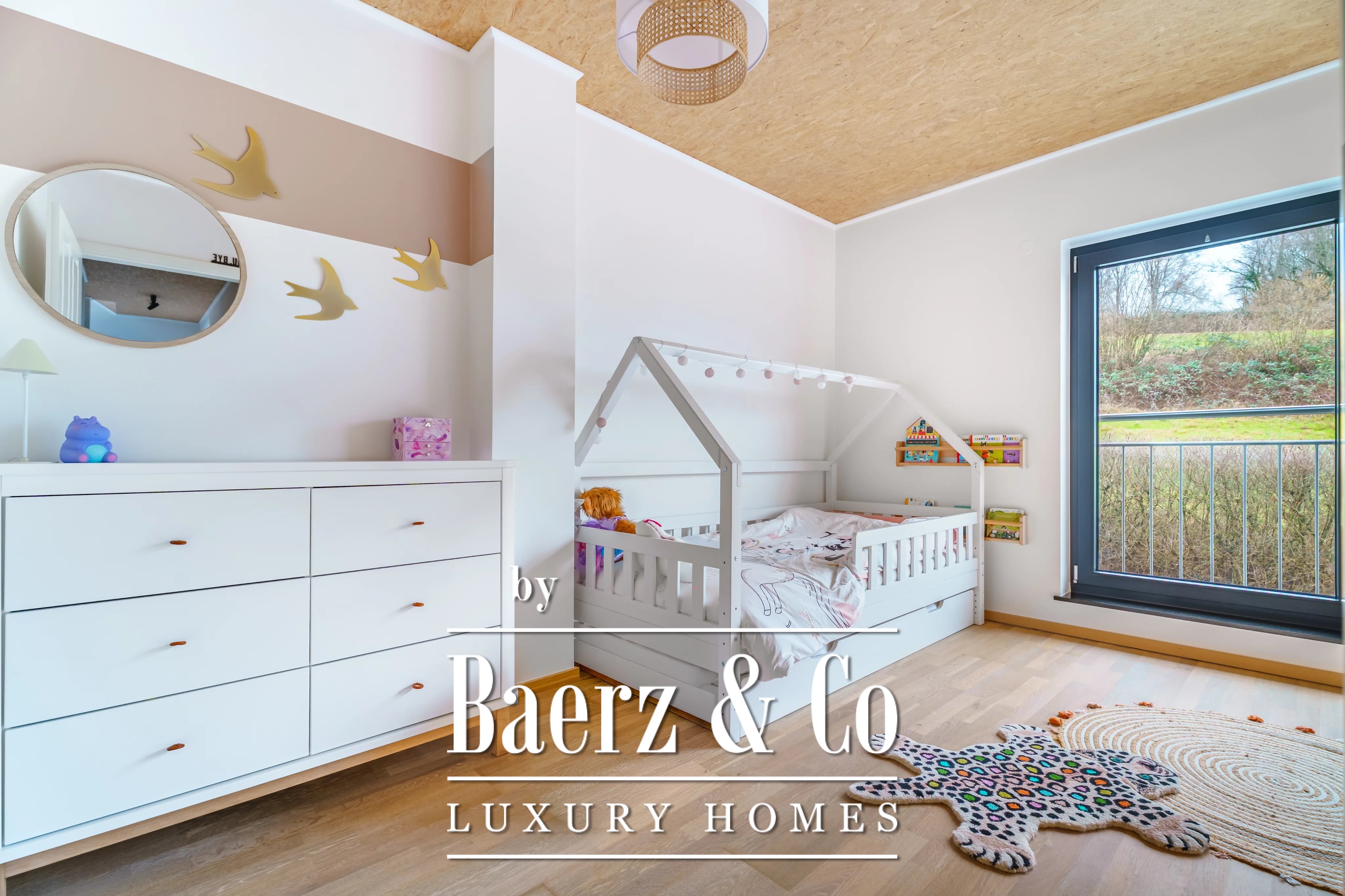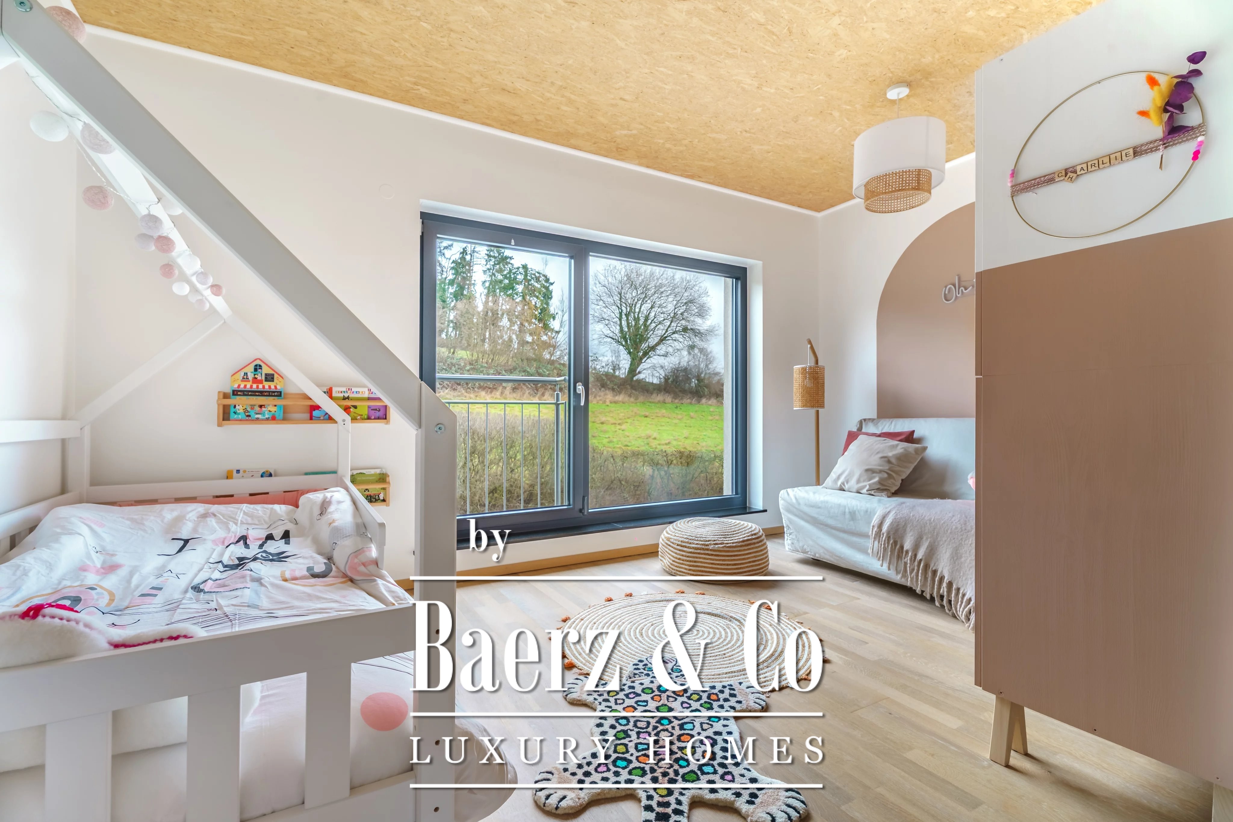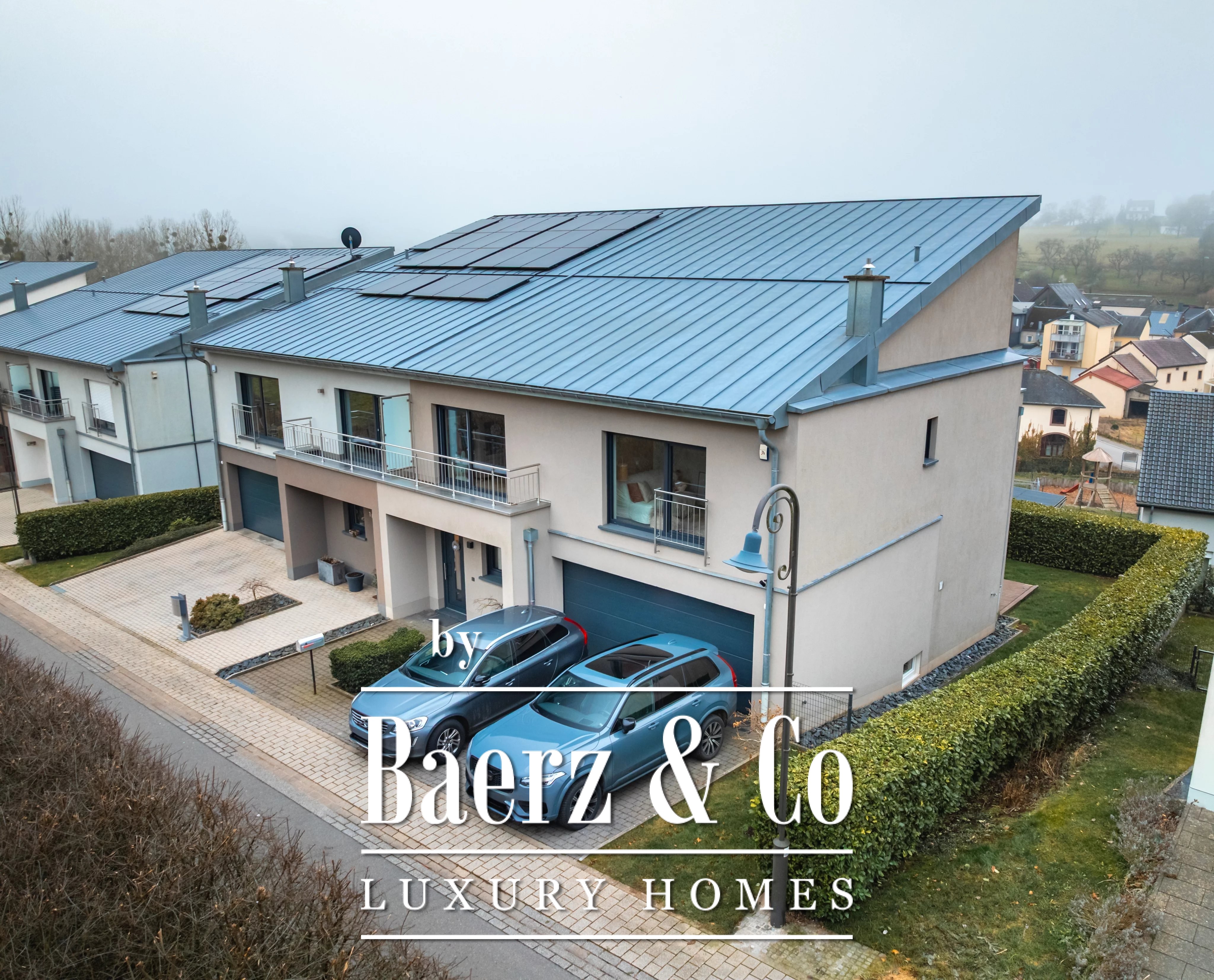 Privacy e sicurezza sono prioritarie, valorizzate da fibra ottica e illuminazione esterna. Situata su un lotto di 348 m² con vista sul villaggio, questa residenza articola luce, spazio e discrezione per chi desidera un rifugio moderno e prestigioso in Lussemburgo.