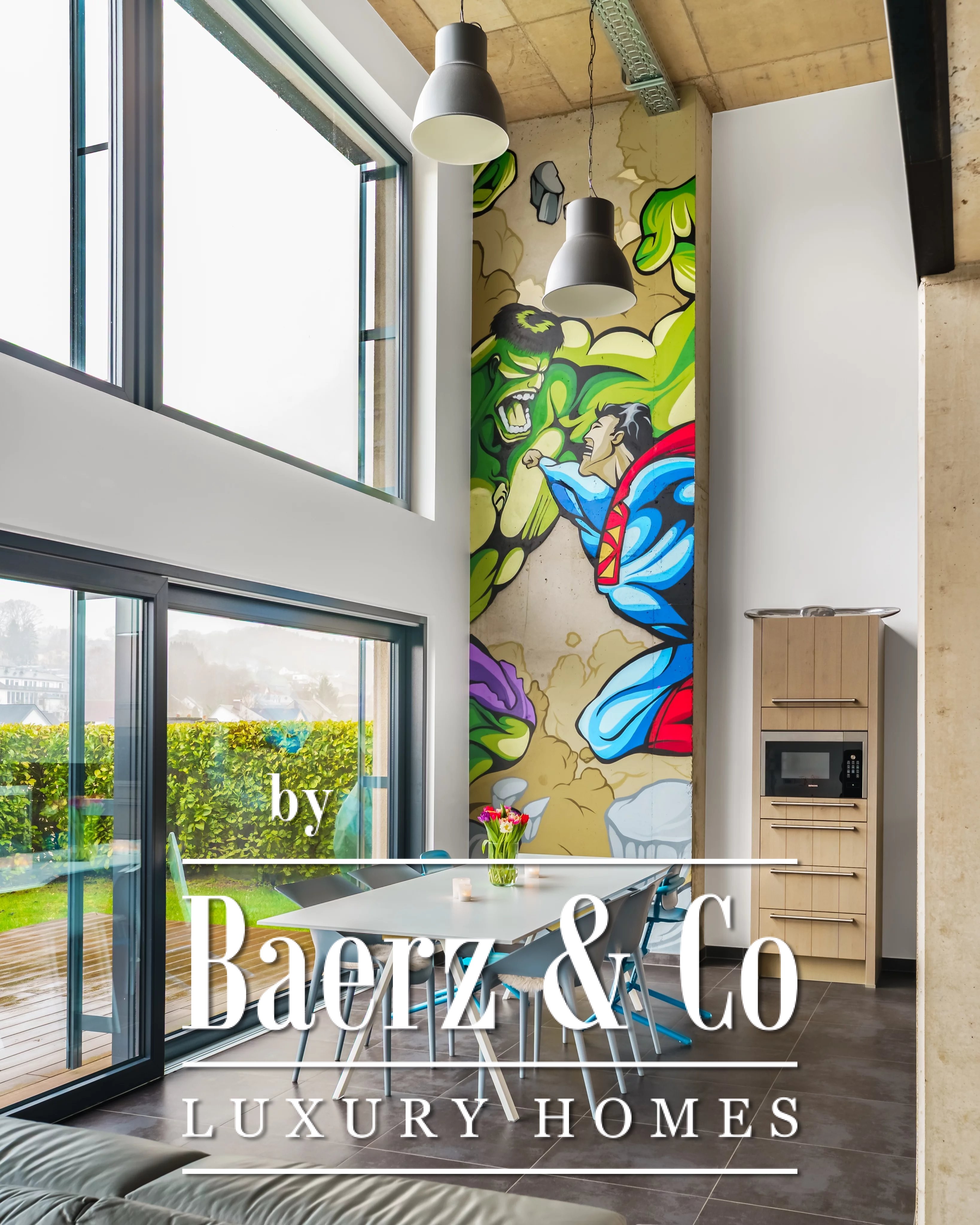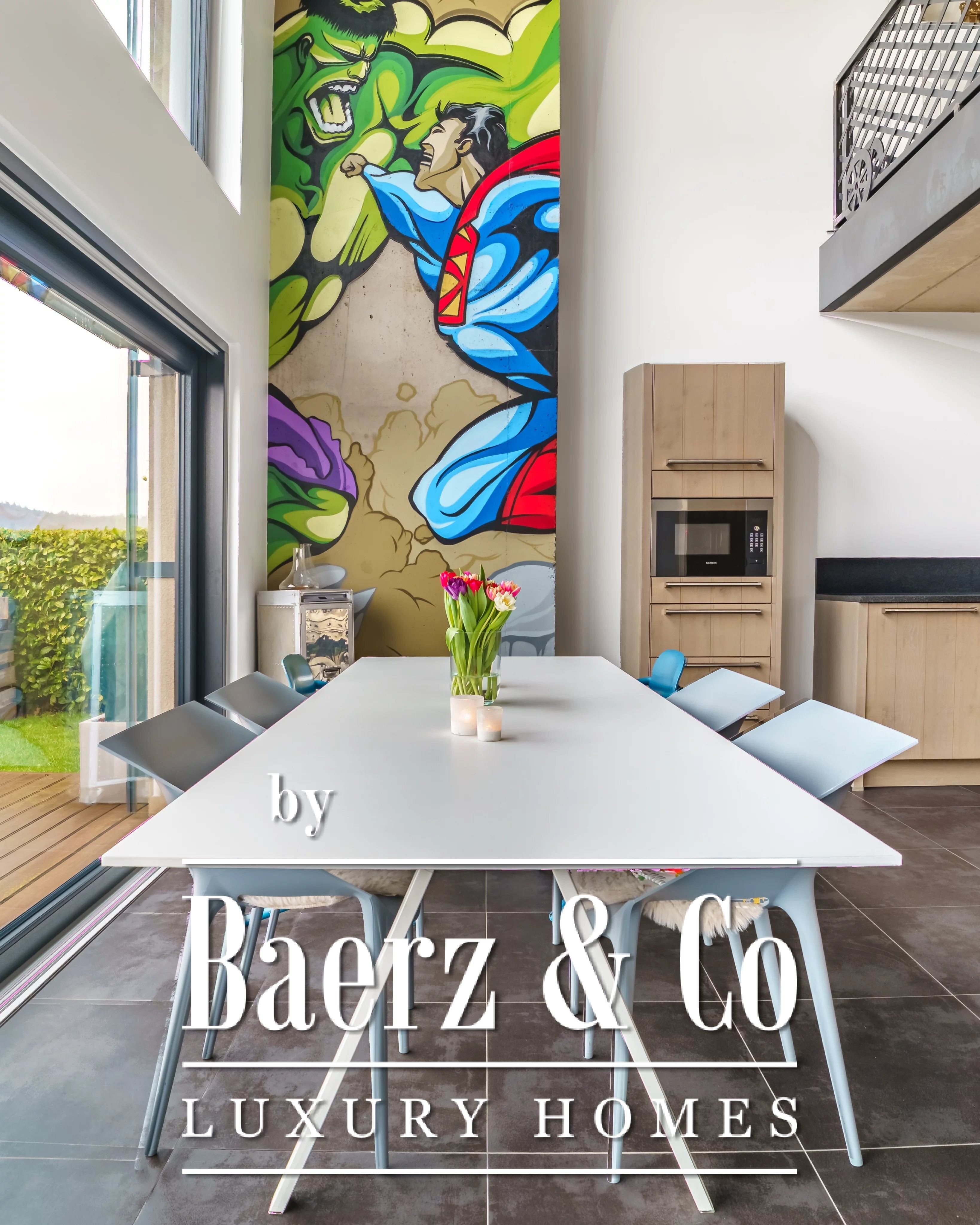 La villa di design Vichten esprime un raffinato stile di vita contemporaneo in un contesto rurale tranquillo, a soli dieci minuti da Mersch. Questa proprietà si sviluppa su circa 160 m² distribuiti su quattro livelli, cogliendo l’essenza dell’architettura minimalista con volumi puliti e interni luminosi esposti a sud. La villa è progettata per avvolgere ogni ambiente nella luce naturale, grazie alle ampie vetrate che annullano i confini tra interni, il giardino soleggiato e la terrazza di 40 m².