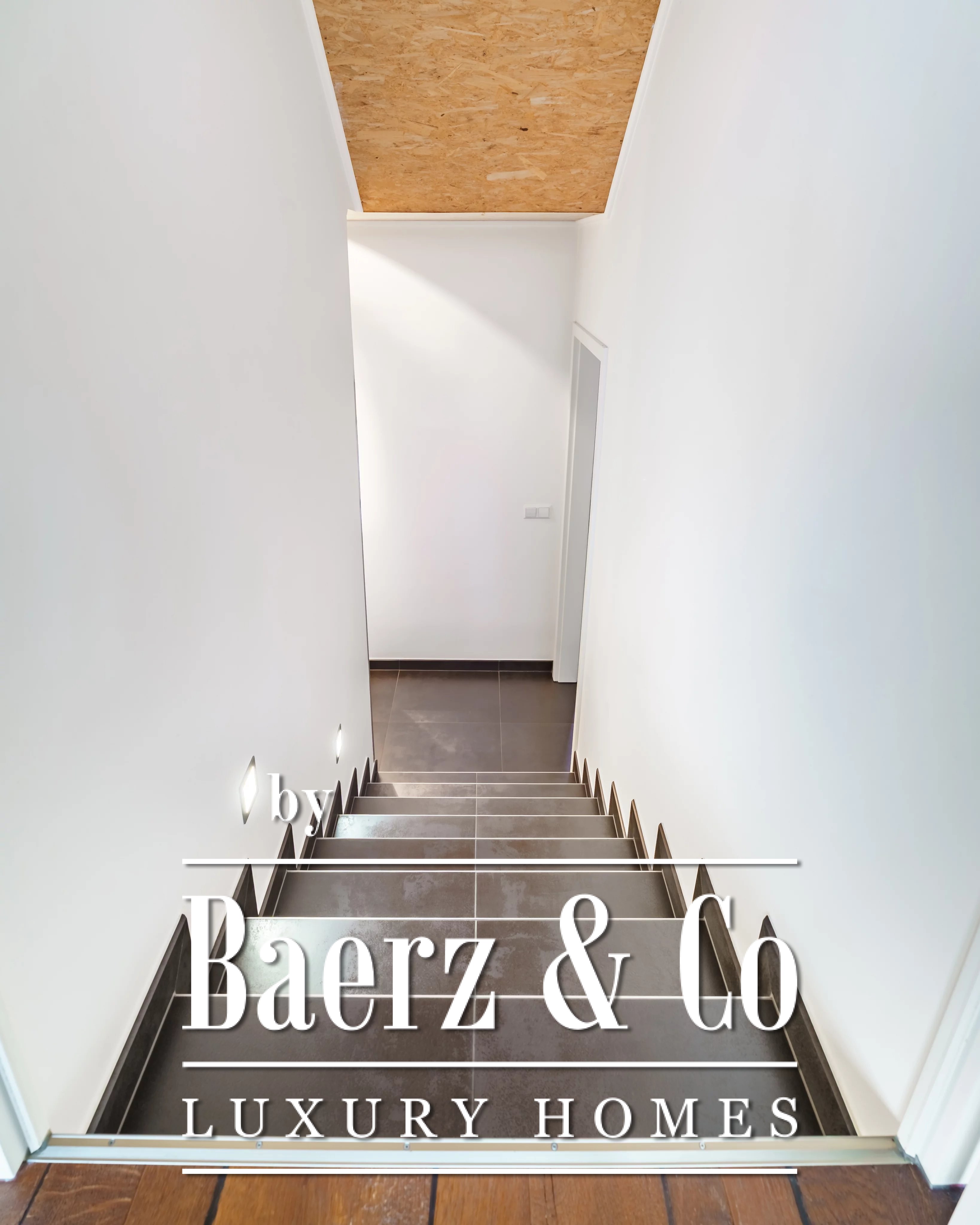Gli spazi si susseguono in modo fluido dalla cucina a vista e dal soggiorno di 37 m² alle zone notte riservate dei piani superiori. Tre camere da letto, tra cui una suite padronale di 23 m² con bagno open space e cabina armadio di 11,46 m², garantiscono riservatezza e quiete. I materiali e gli impianti scelti riflettono l’impegno per la durata e il comfort, dal riscaldamento a pavimento ai doppi vetri, dall’impianto d’allarme agli avvolgibili elettrici. Nel progetto sono stati integrati anche il garage doppio, la lavanderia e il deposito.