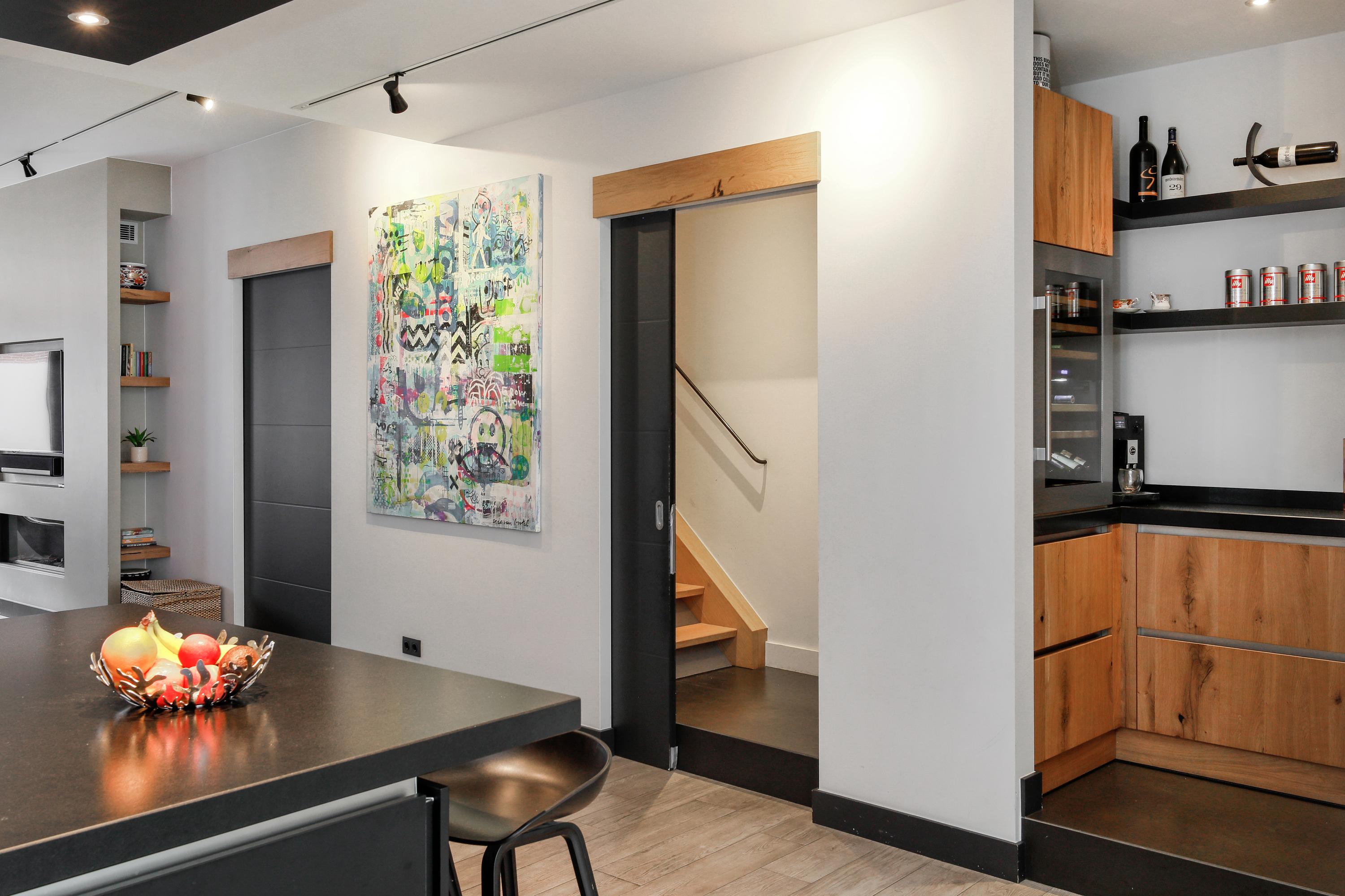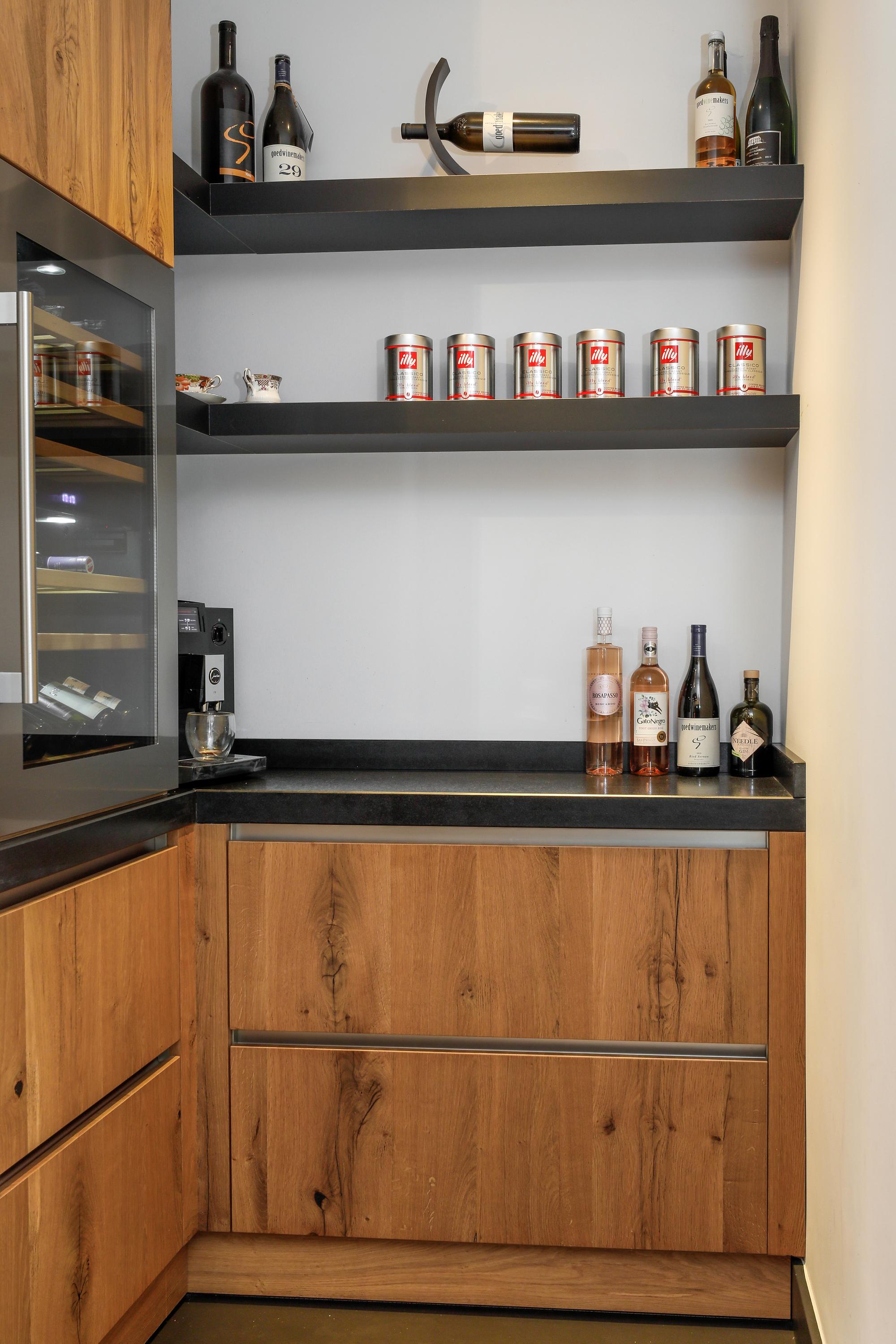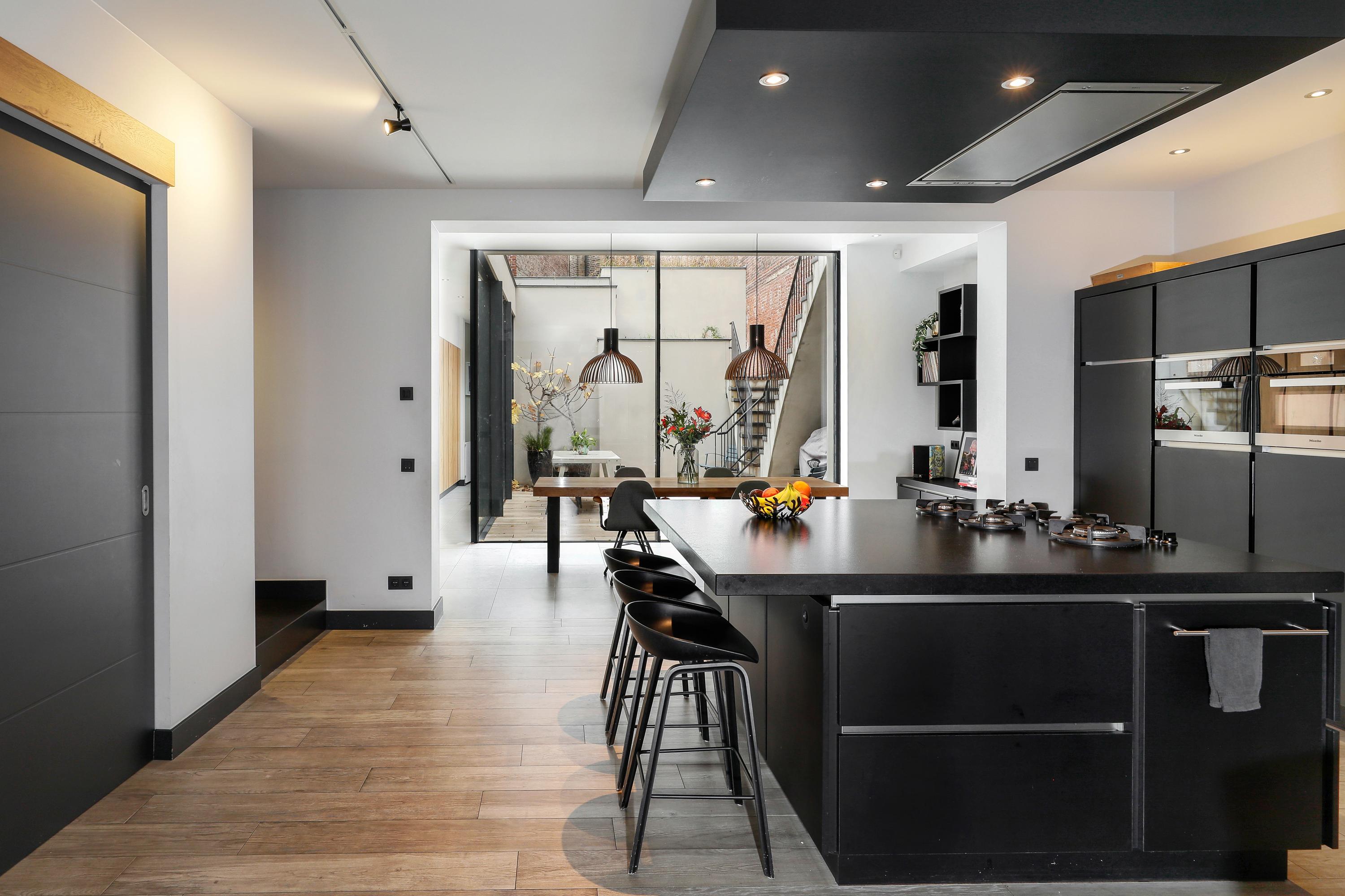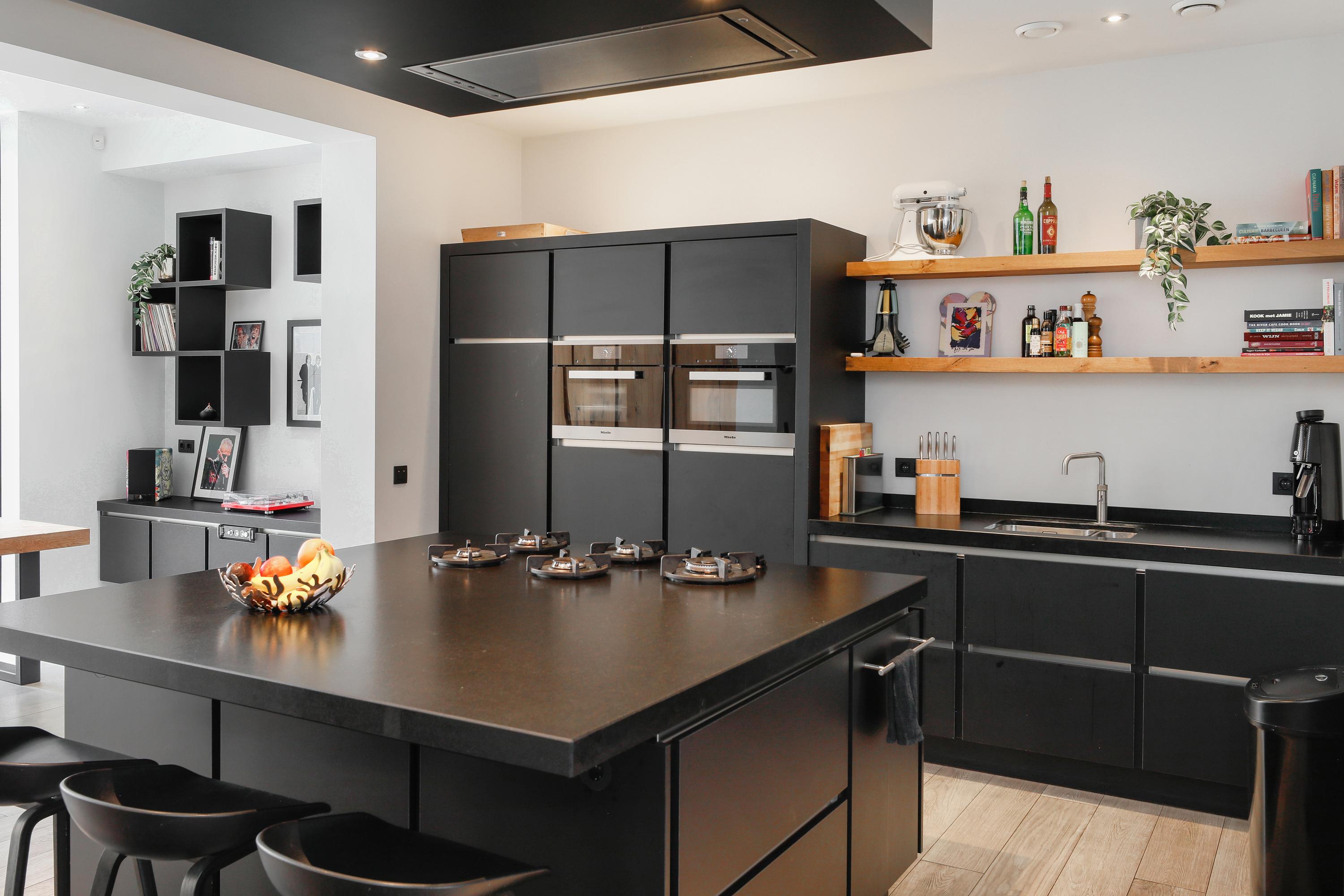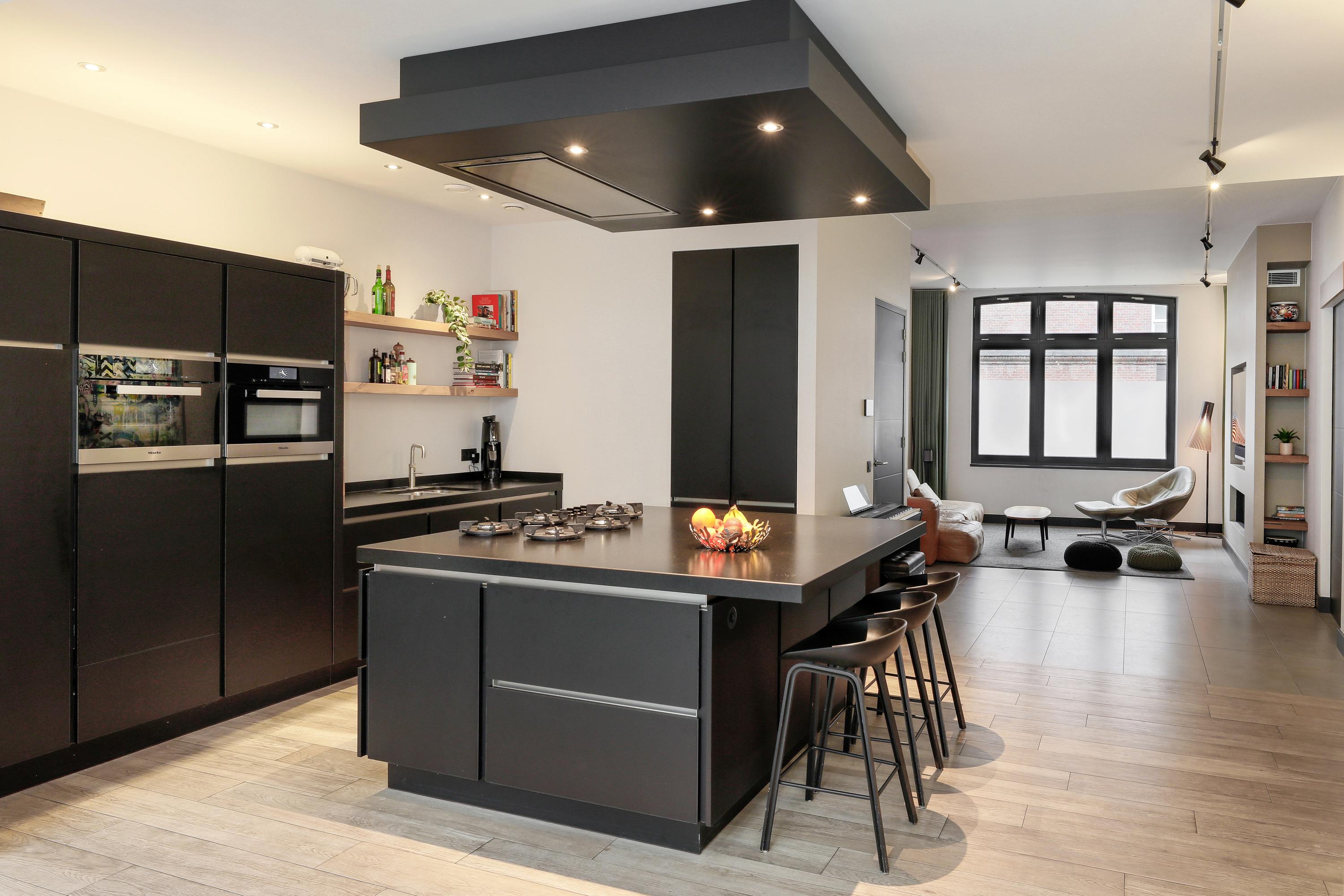 Oude huizen in de binnenstad zijn vooral smal en hoog. Maar weinig huizen hebben, zoals hier, op de begane grond ca. 150 m² vloeroppervlak. In al die ruimte is de keuken het centrum van je gezin. In deze sociale spilfunctie voorziet het met een ruim kookeiland voor veel bergruimte, PITT Cooking en een ontbijt- en borrelbar. Natuurlijk is de keuken volledig ingericht met Miele en Liebherr apparatuur en een Quooker. Ook rondom het eiland is er veel bergruimte en tegenover een koffie en wijnhoek. Vanuit deze keuken heb je ook mooi zicht op de zitkamer, de eetkamer én de tuin. Een ideaal middelpunt van je huis dus.