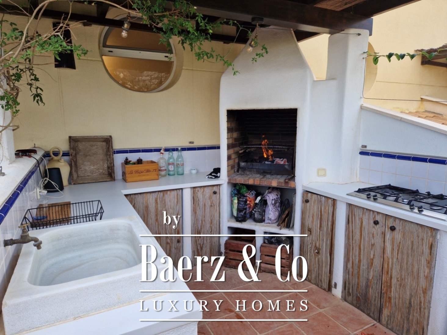 Het huis is verdeeld in twee verdiepingen die met elkaar verbonden zijn door een interne trap. De begane grond heeft gastenservice, keuken met galerij, grote woonkamer en twee grote slaapkamers, waarvan één met een en-suite badkamer. De zolderverdieping heeft een grote slaapkamer met en-suite badkamer en kleedkamer, met toegang tot een groot buitenterras uitgerust met barbecue.