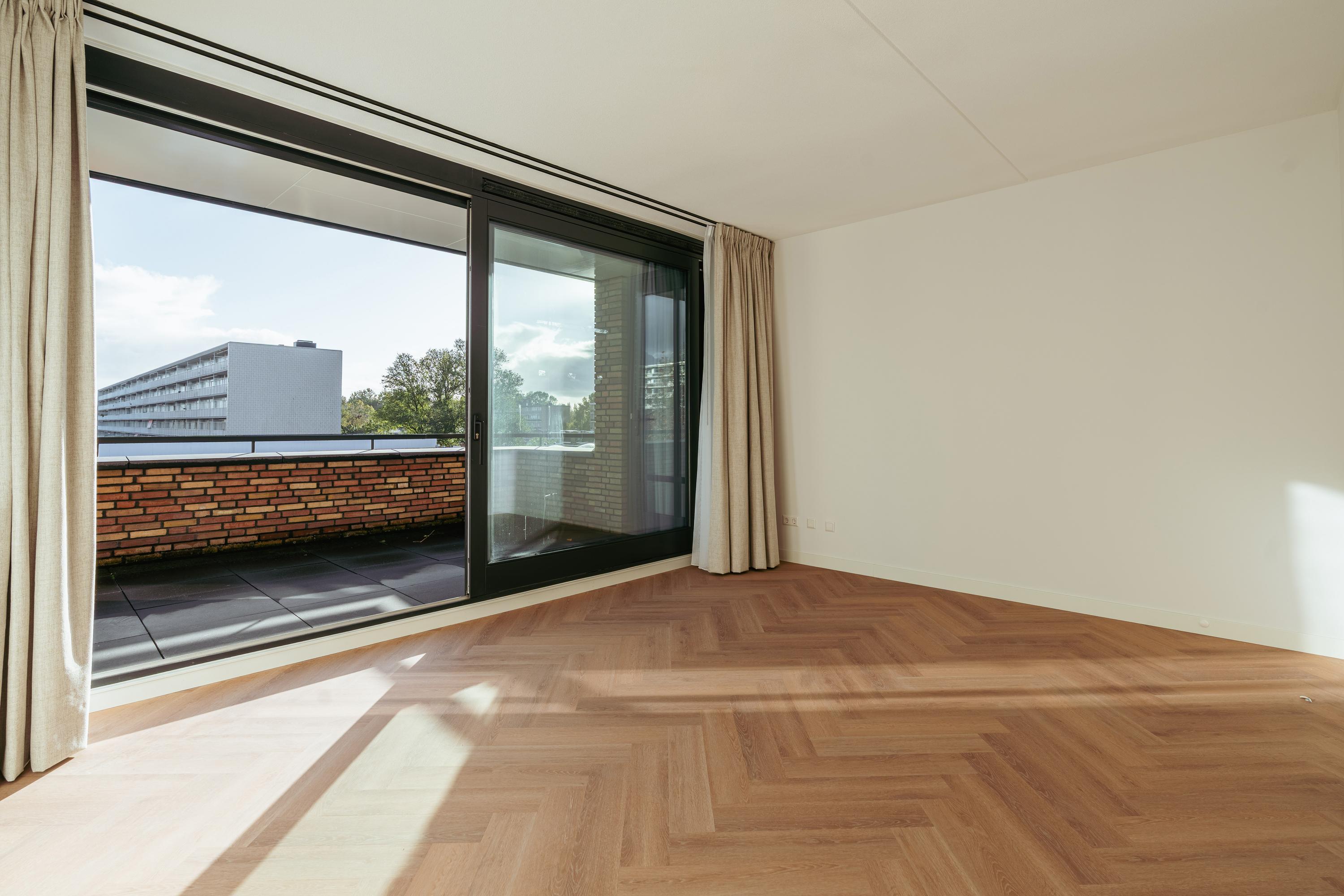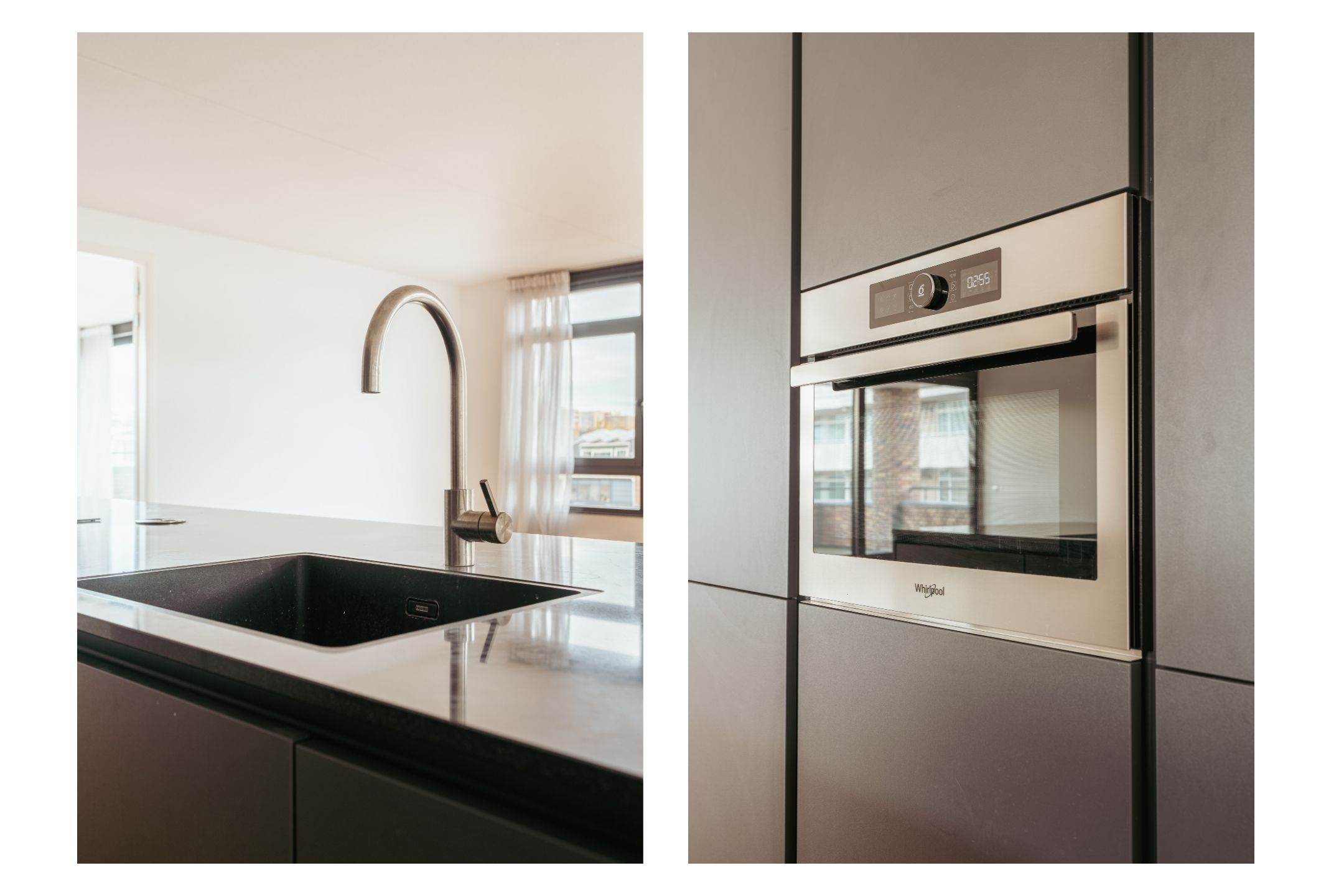 U bereikt het appartement comfortabel met de lift, waarna u via de verzorgde hal binnenstapt in een stijlvolle en lichte woning. De lange centrale gang leidt naar dubbele openslaande deuren die toegang geven tot de royale woonkamer. Hier springen de ruimte, het overvloedige licht en de verfijnde afwerking direct in het oog. De moderne keuken met kookeiland vormt het hart van de leefruimte en is uitgerust met op maat gemaakte houten kasten, een natuurstenen werkblad en diverse inbouwapparatuur met geïntegreerde afzuiging. Het bargedeelte nodigt uit tot ontspannen samenzijn en maakt de keuken tot een ideale plek om te koken én te genieten. Grote schuifdeuren geven toegang tot het zonnige hoekterras, waar u aan twee zijden geniet van een vrij uitzicht en een heerlijk buiten-binnengevoel creëert op warme dagen.