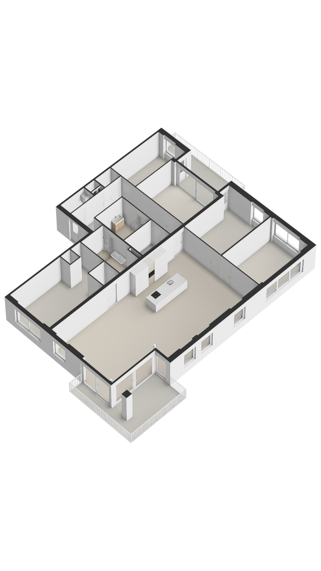 Het appartement beschikt over maar liefst vijf ruime slaapkamers, waarvan vier aan de rustige achterzijde liggen — twee daarvan met directe toegang tot een tweede terras. Beide badkamers zijn voorzien van een inloopdouche, wastafelmeubel, toilet en één met ligbad. Daarnaast is er een praktische inpandige berging/wasruimte aanwezig. Dankzij de gunstige hoekligging is de woning uitzonderlijk licht en biedt deze een aangenaam gevoel van ruimte en rust.