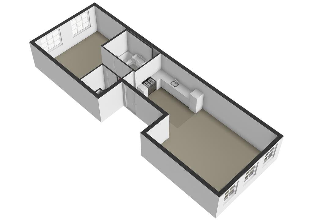 Entree in de ruime en lichte woonkamer met open keuken, voorzien van een koelkast, vriezer, vaatwasser, gasfornuis met oven en spoelbak. De grote raampartijen bieden veel natuurlijk licht en een prachtig uitzicht over de Herengracht. Aan de achterzijde ligt de ruime slaapkamer, eveneens met grote ramen en uitzicht op de groene binnentuinen.