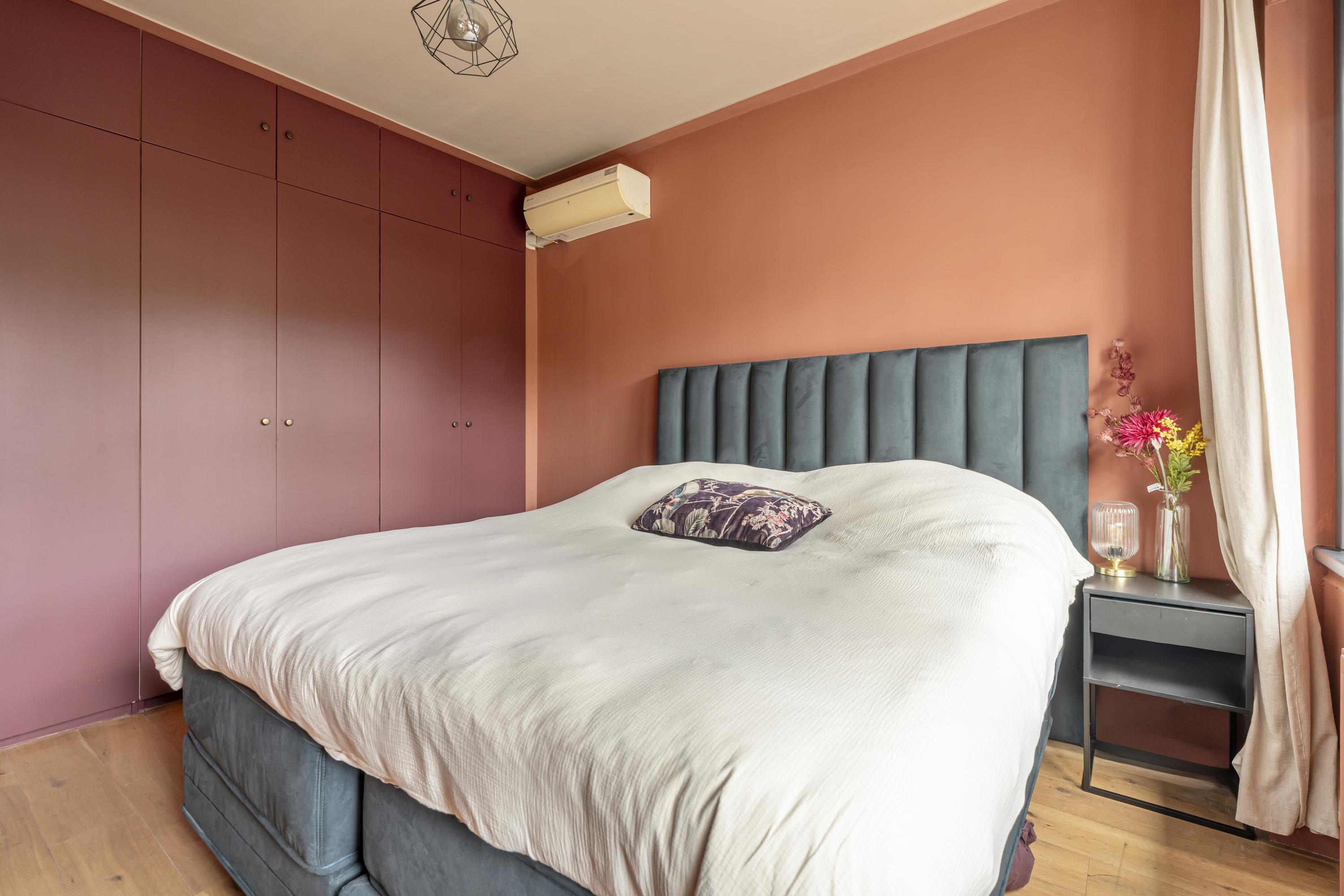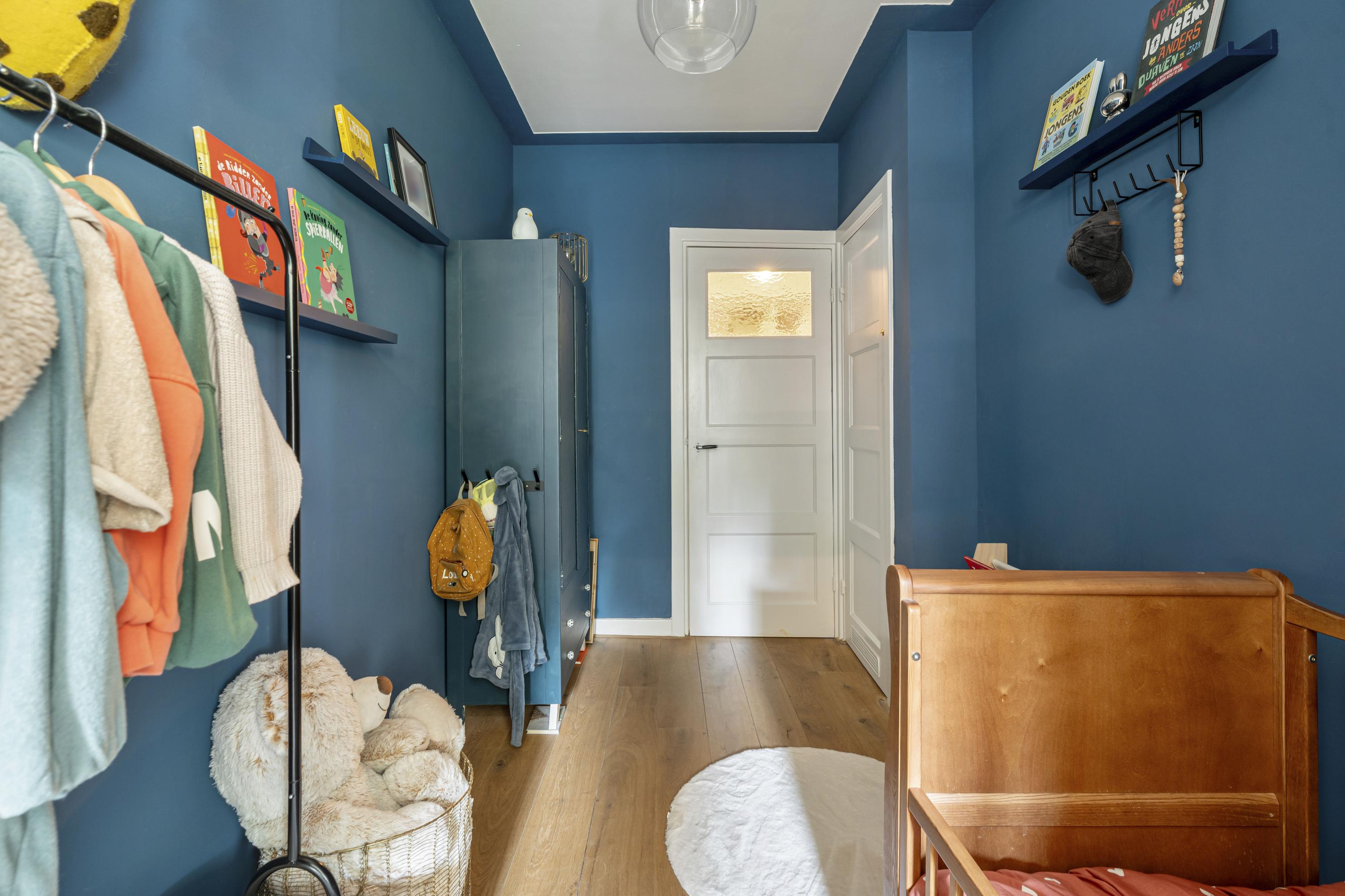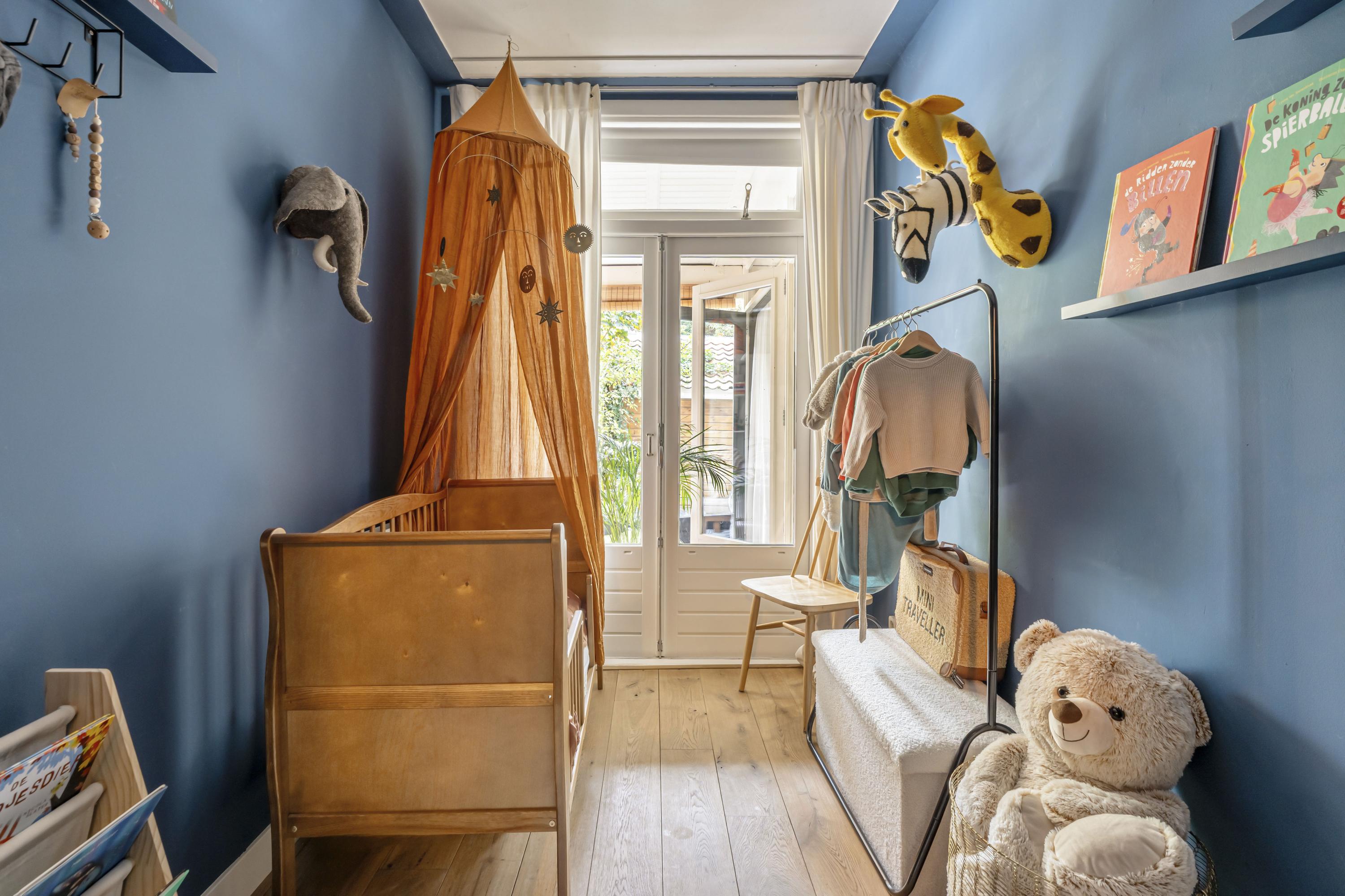 De woning beschikt over drie slaapkamers. De master bedroom is ruim opgezet en, evenals de hal, voorzien van airconditioning. De overige slaapkamers zijn uitstekend geschikt als kinder-, werk- of logeerkamer. Centraal in de woning bevindt zich de ruime hal, waar een op maat gemaakte wand met open planken is gerealiseerd. Deze fungeert als een stijlvolle boekenkast en biedt volop ruimte voor boeken, kunst en decoratieve objecten. Vanuit deze hal zijn de verschillende slaapkamers, de badkamer en het separate toilet bereikbaar. De badkamer is voorzien van een ligbad en wastafel. De zonnige achtertuin (Zuid/West) biedt veel privacy en beschikt naast de veranda over een vrijstaand tuinhuis, ideaal voor extra opslag of het stallen van fietsen.